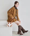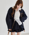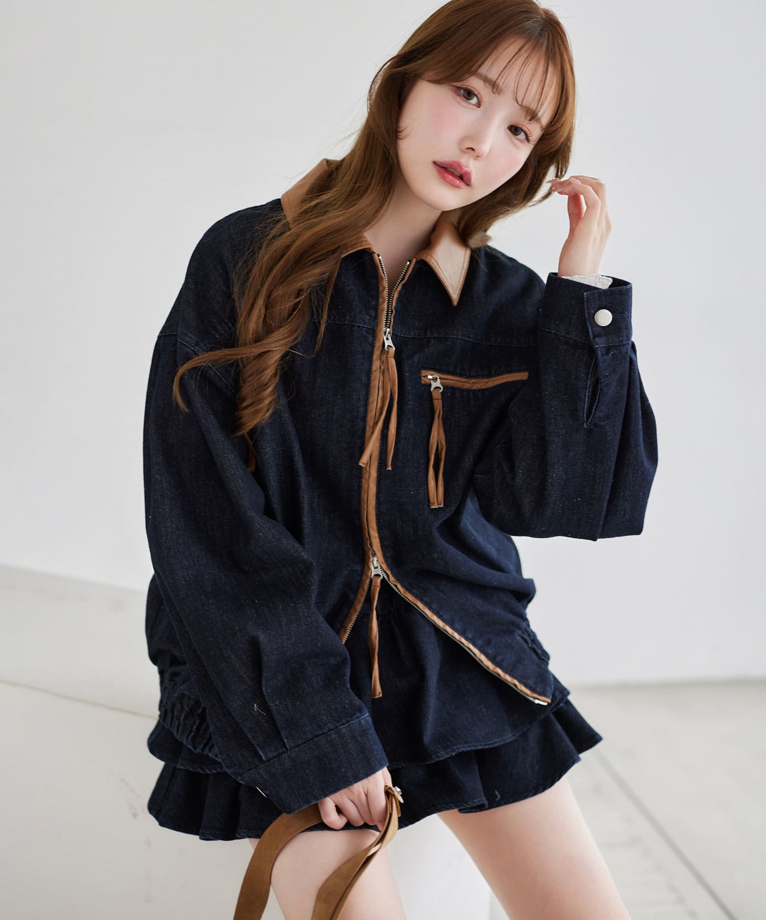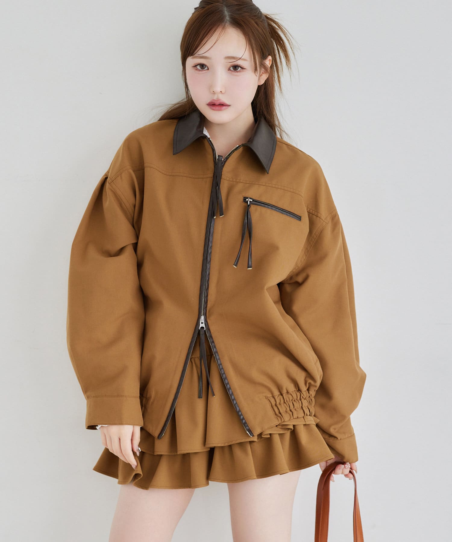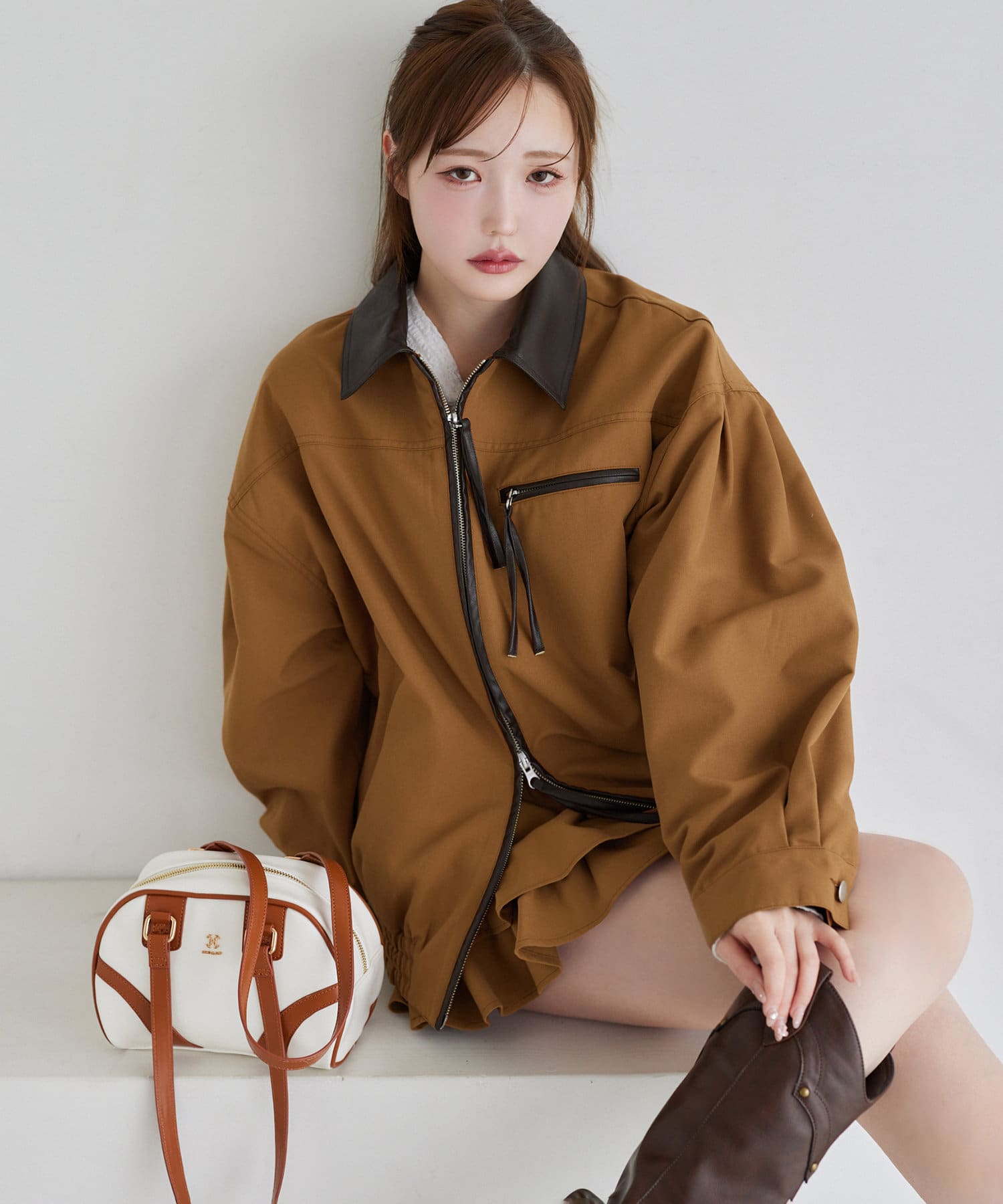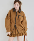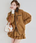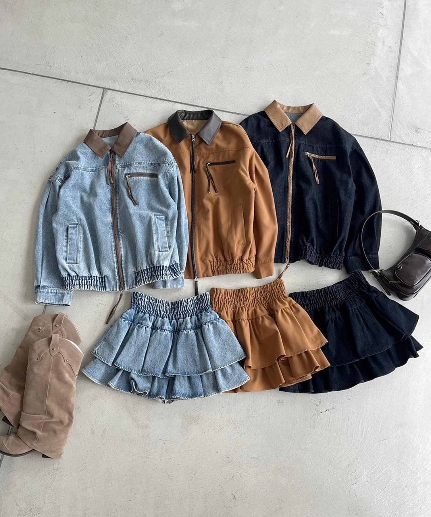 同色でお作りしているミニスカート(品番:0151070040)とセットで着るのがおすすめ。