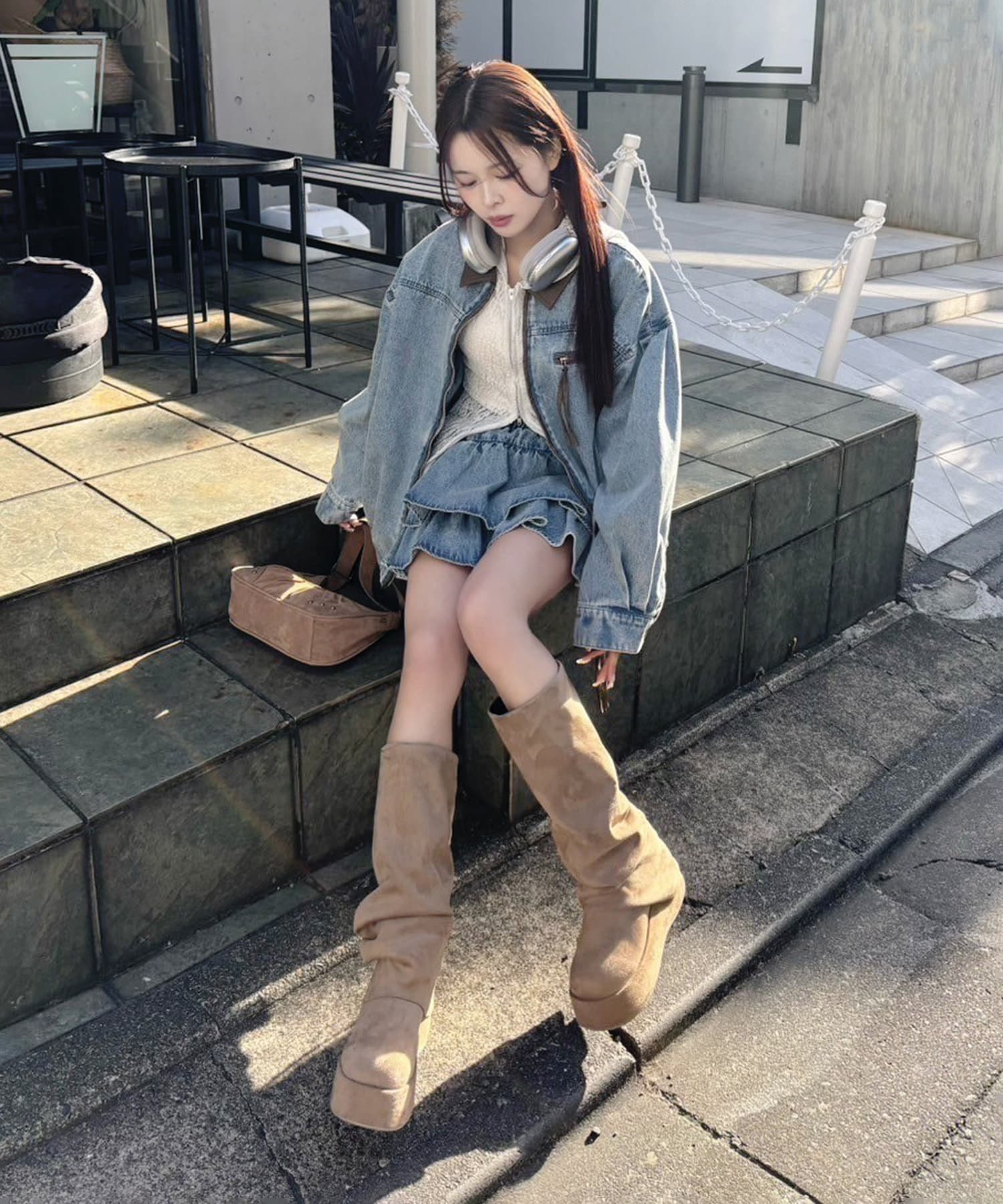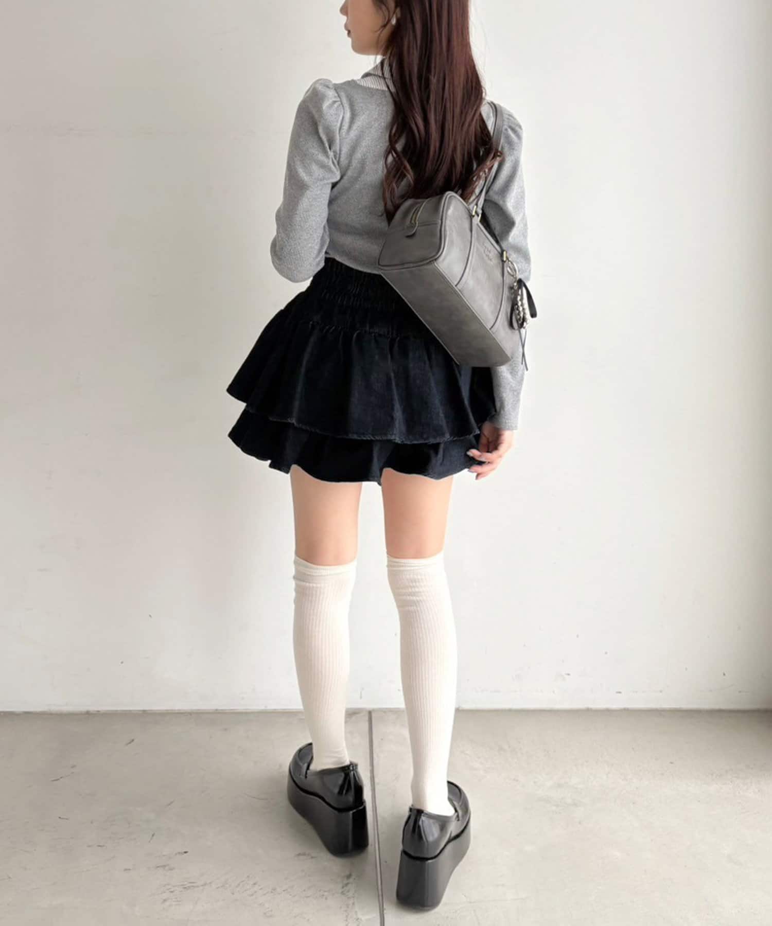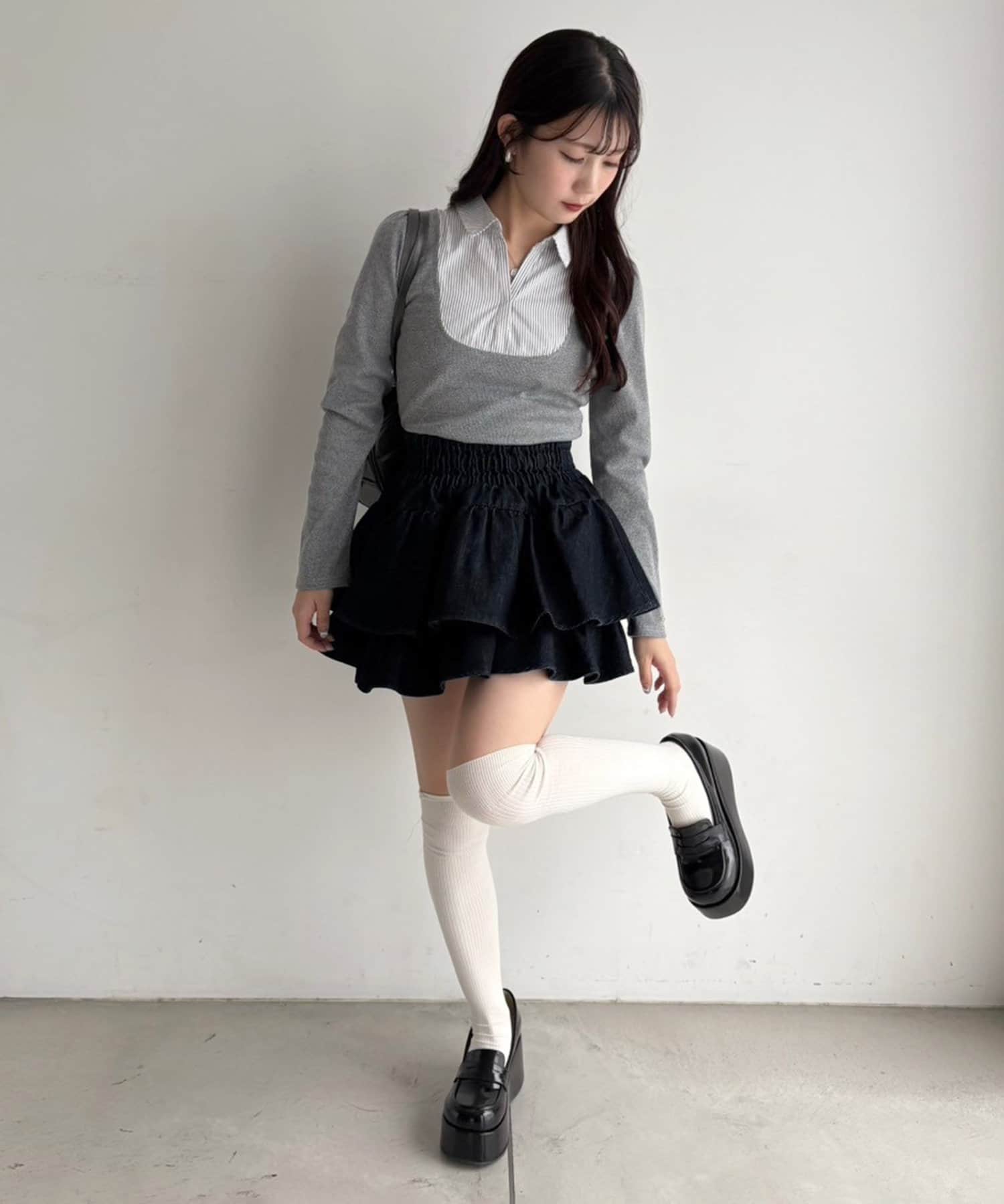 オーバーサイズのトップスの下から覗かせるのも可愛いです◎