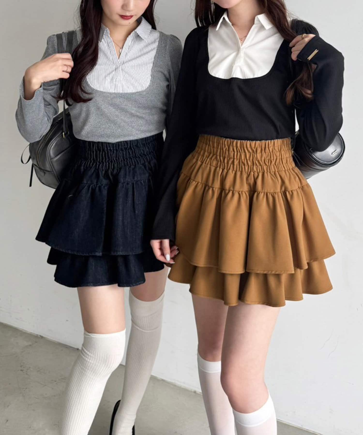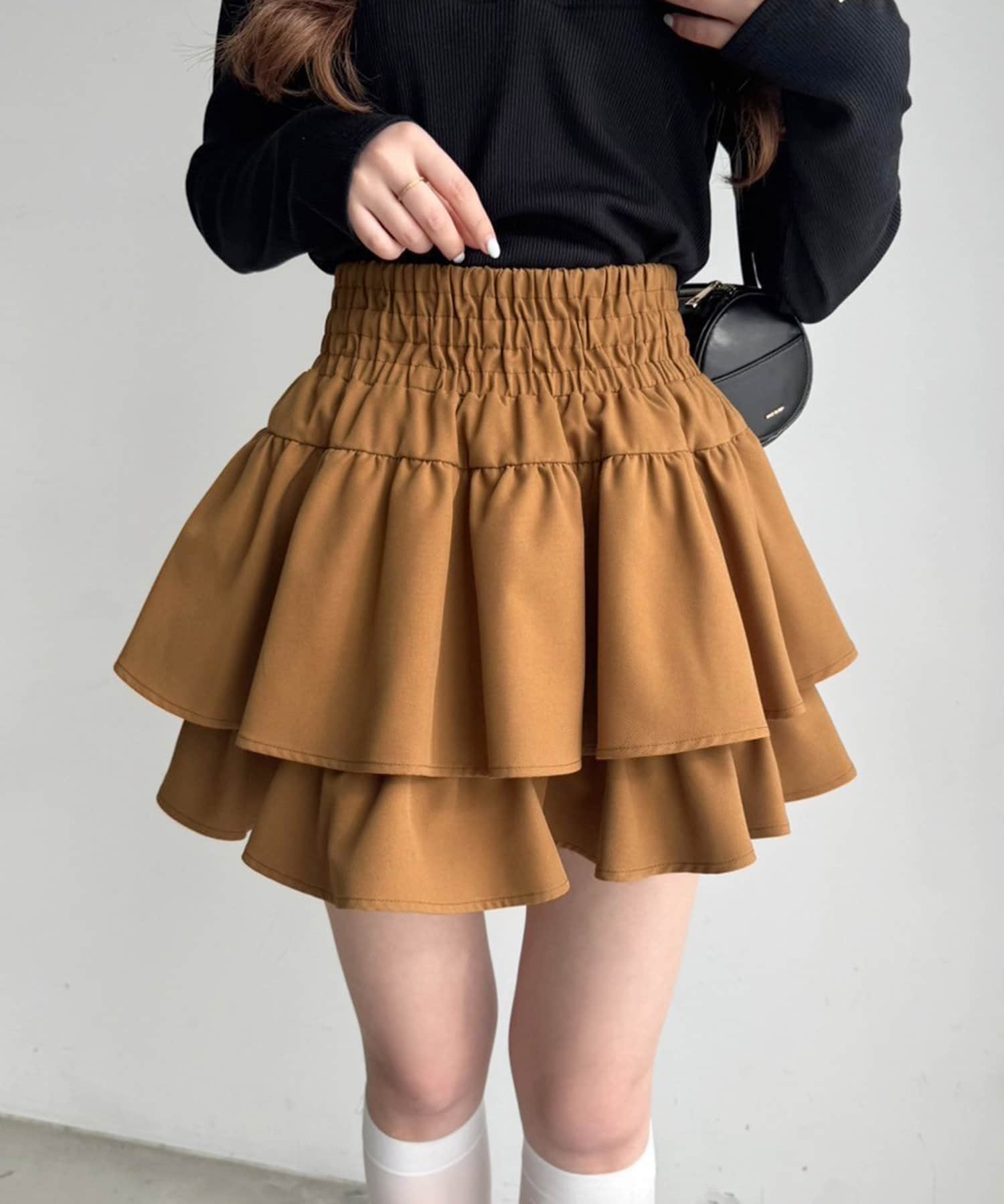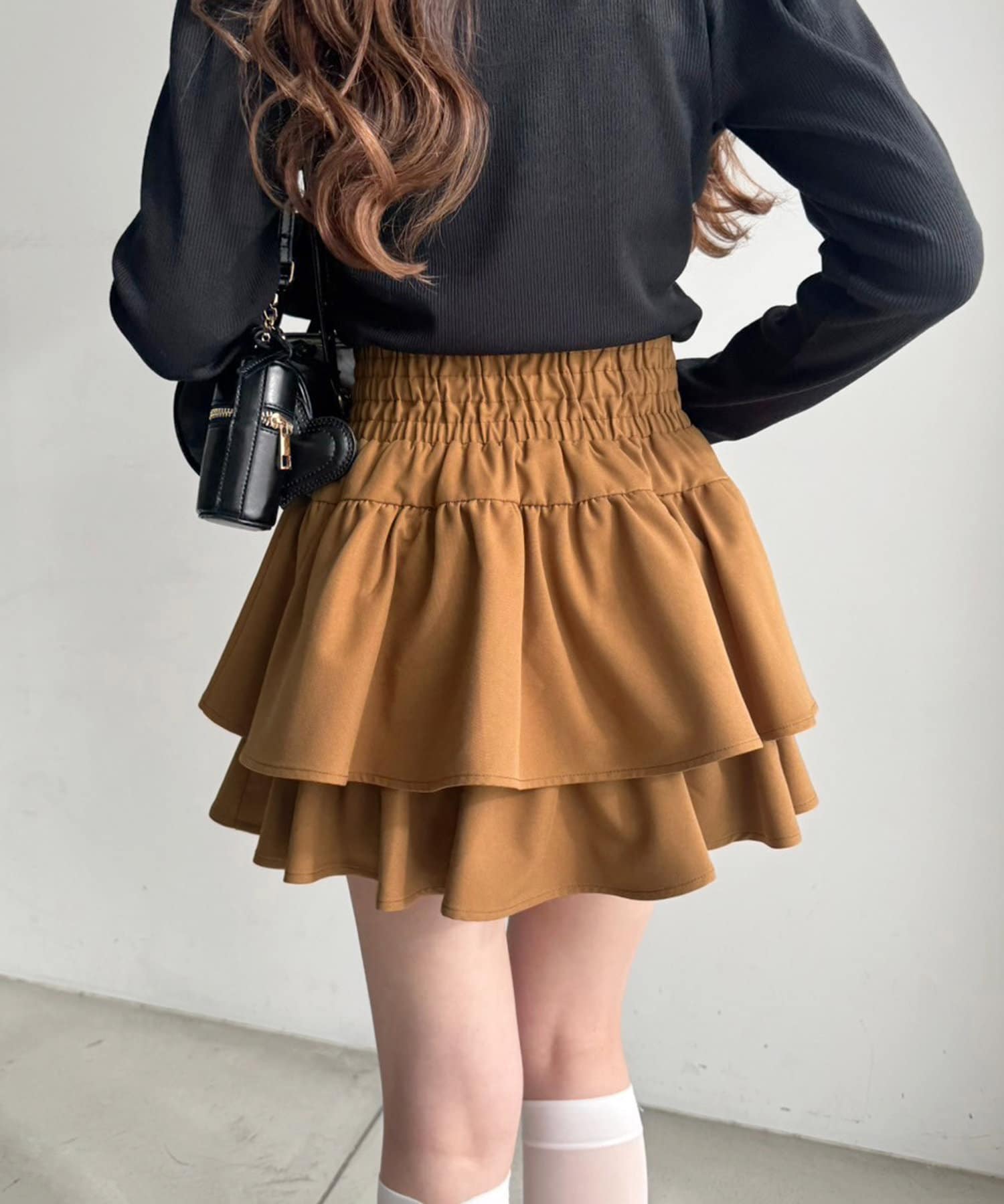 ふわっと広がるフリルティアードがかわいい韓国風スカート