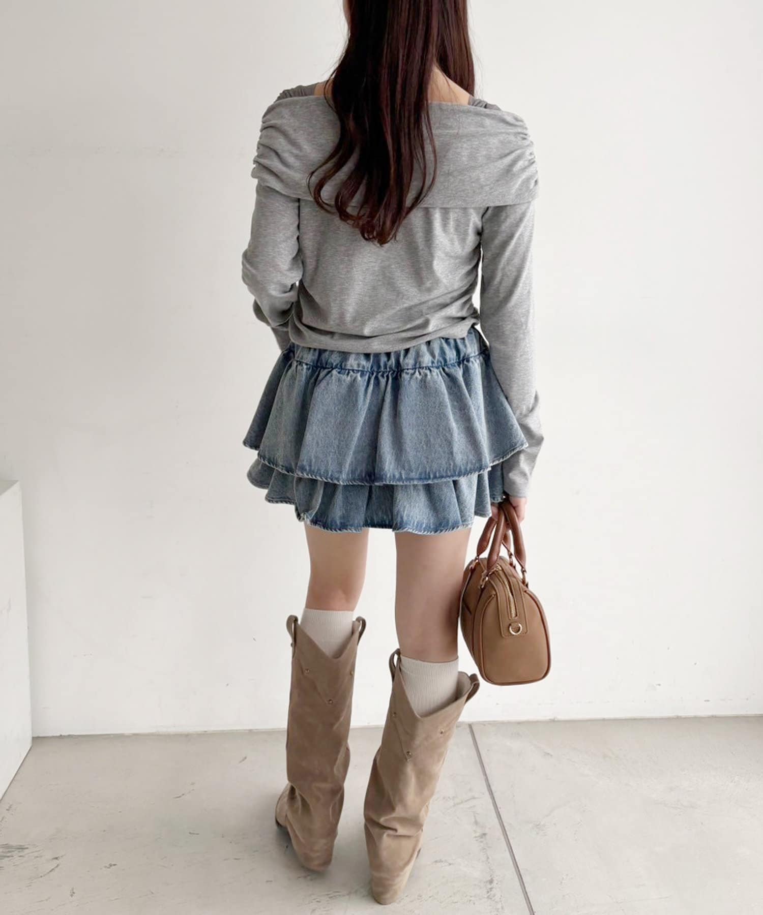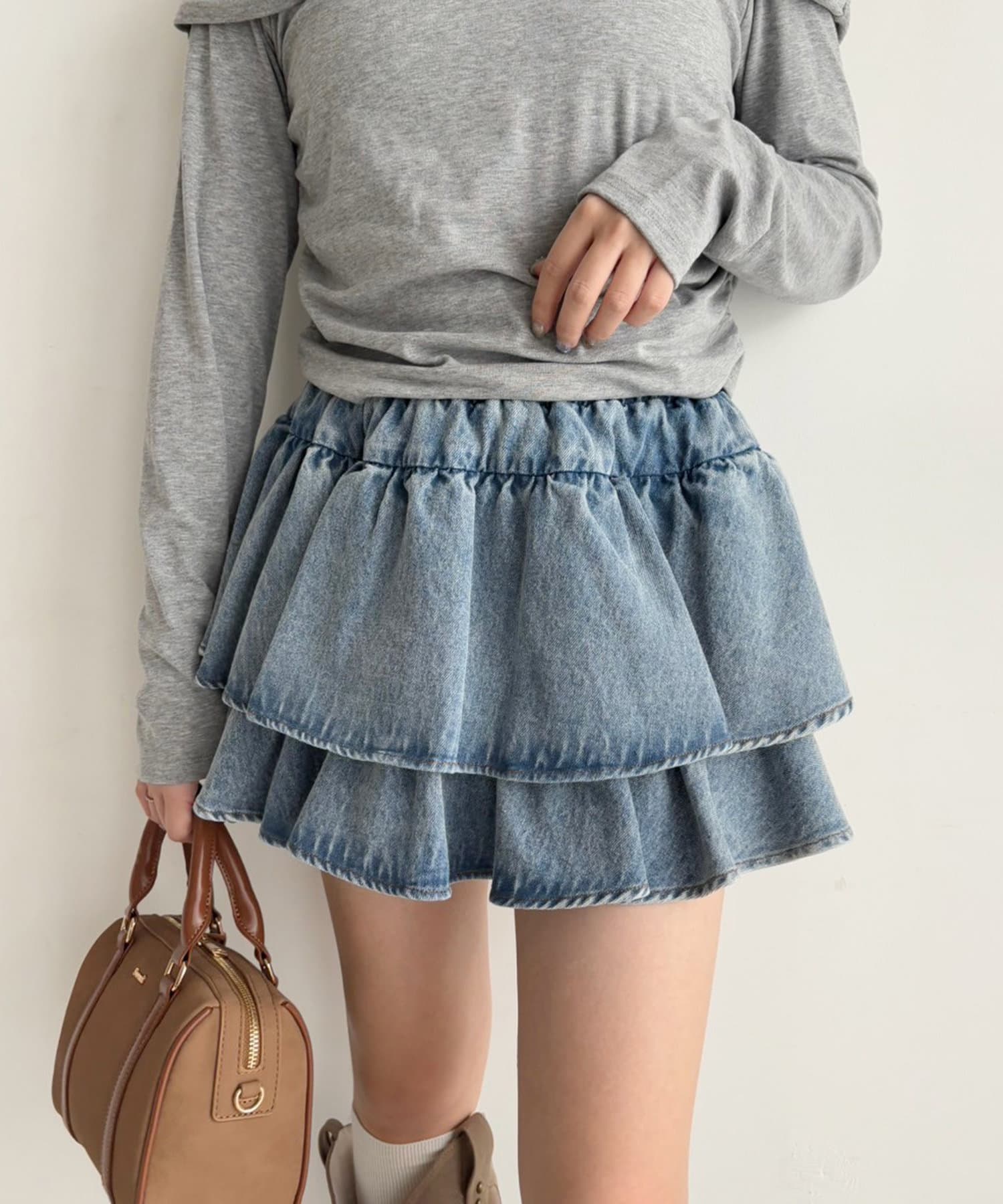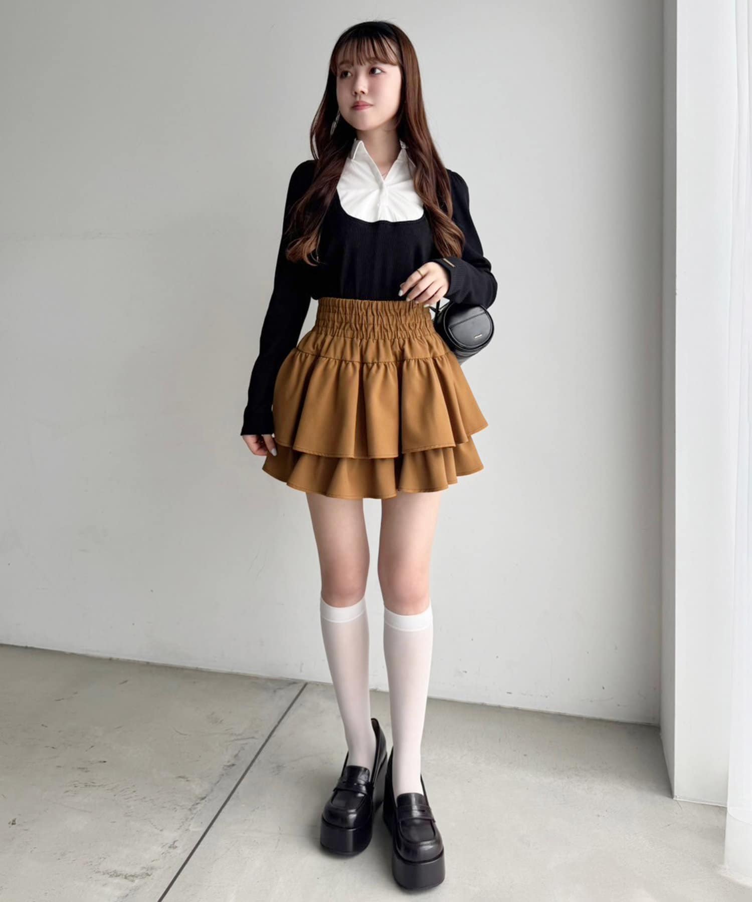 ふわっと広がるフリルティアードがかわいい韓国風スカート