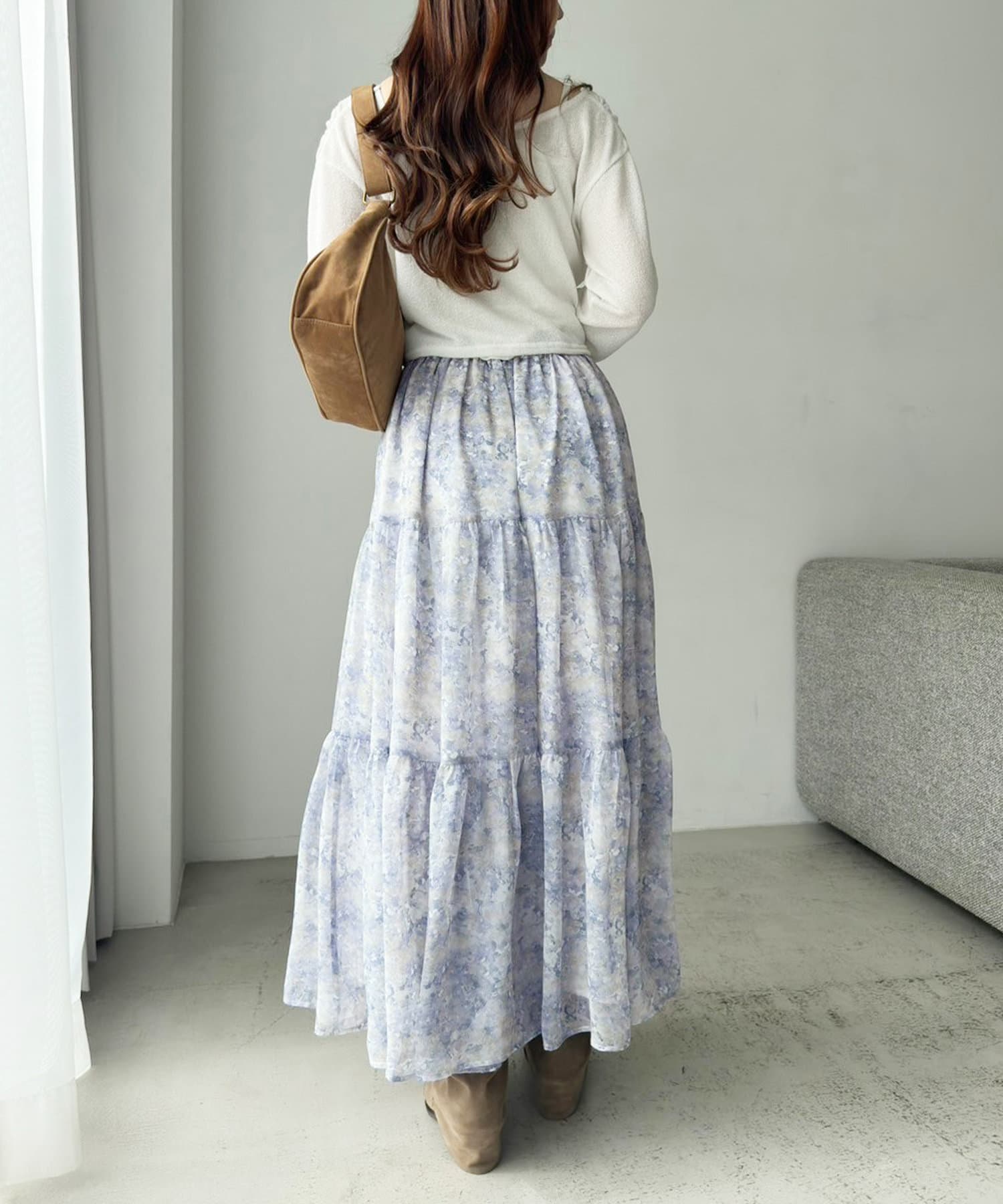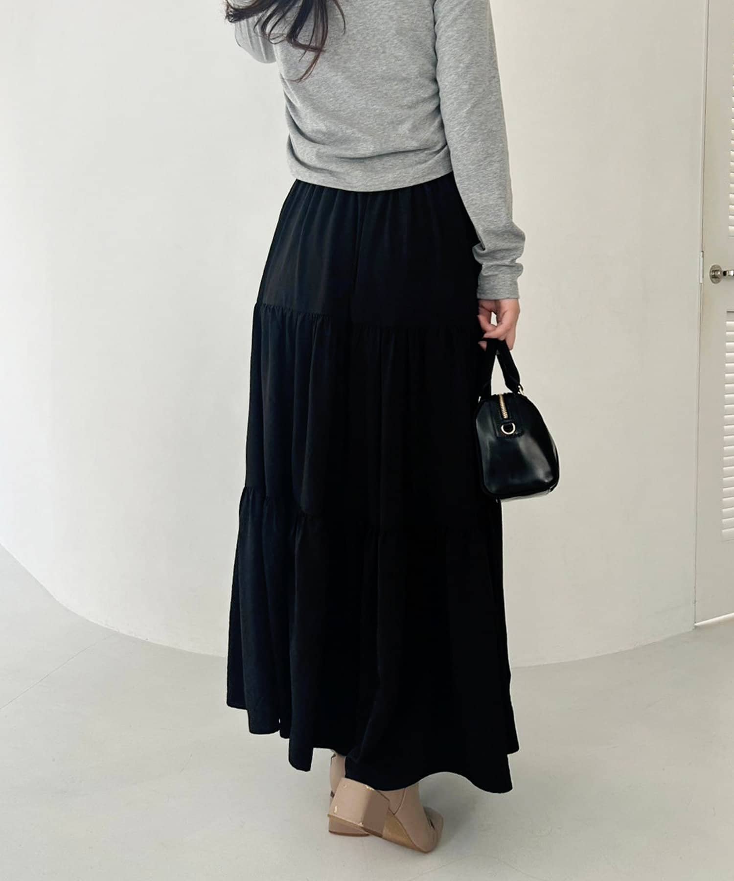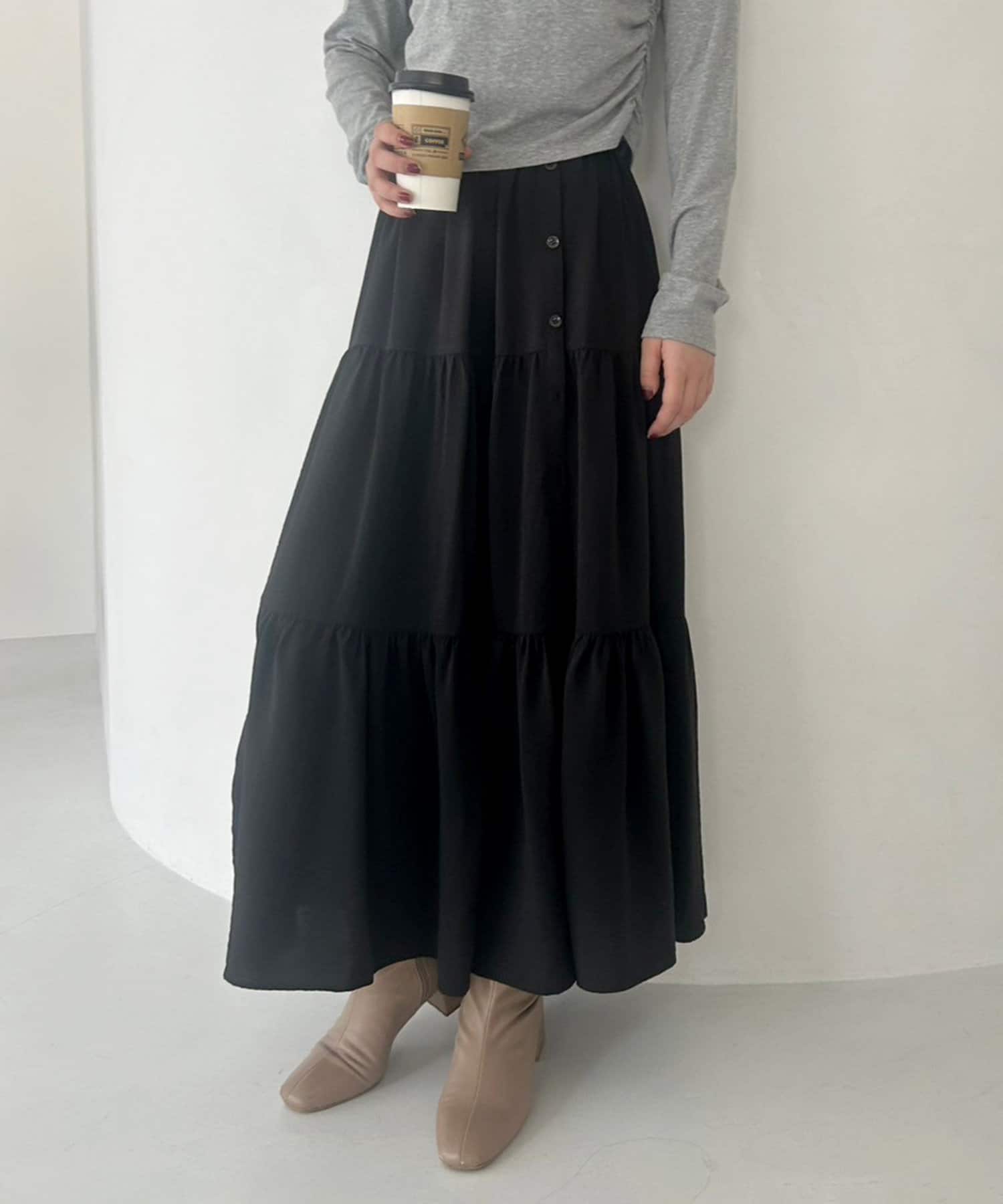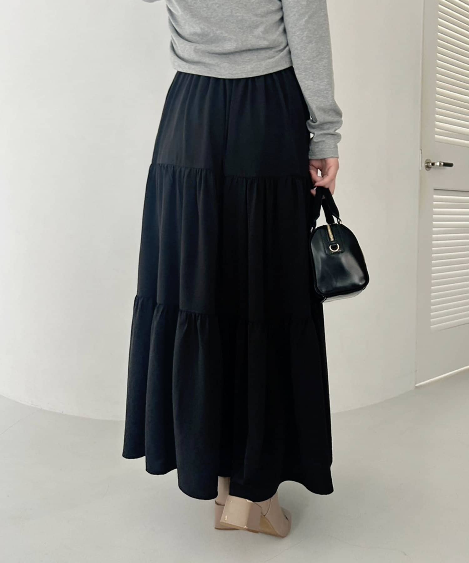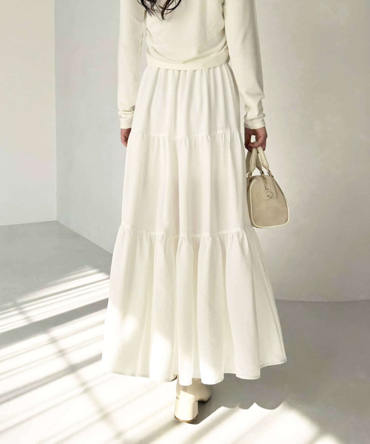 ティアードのシルエットが上品さをプラスしてくれるロングスカート