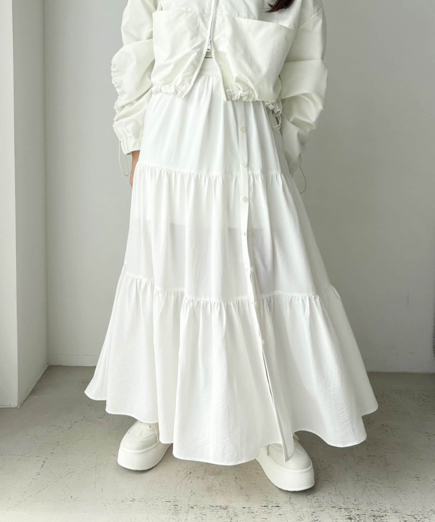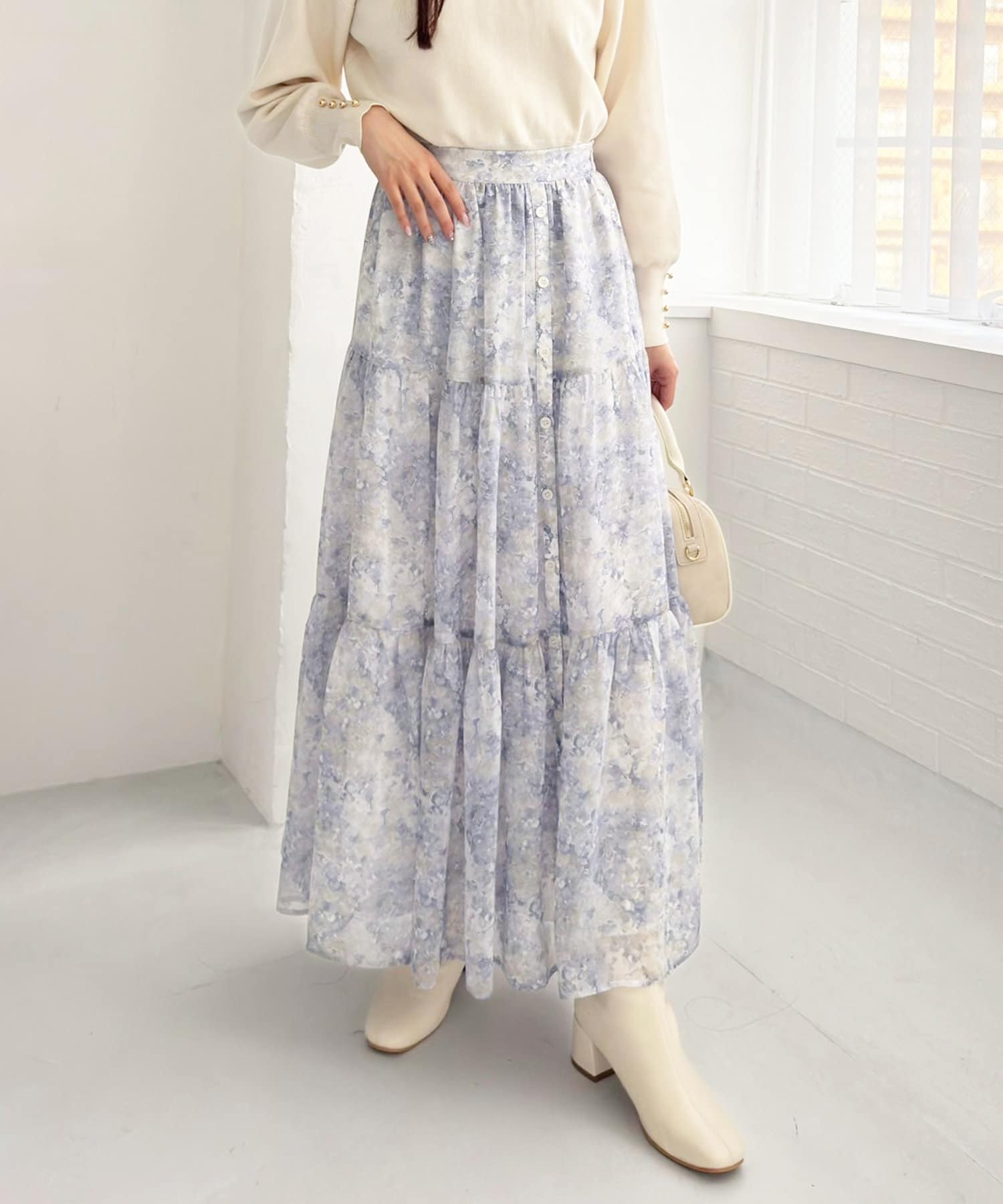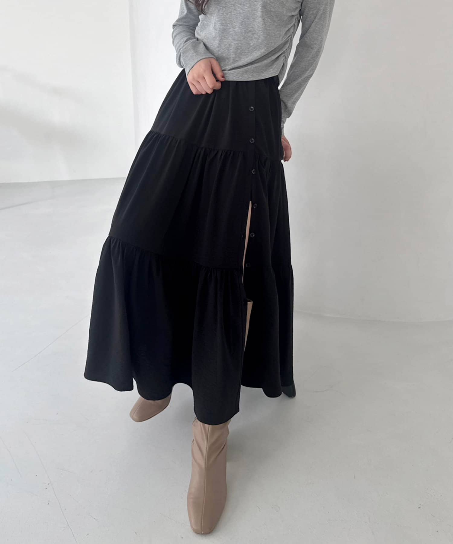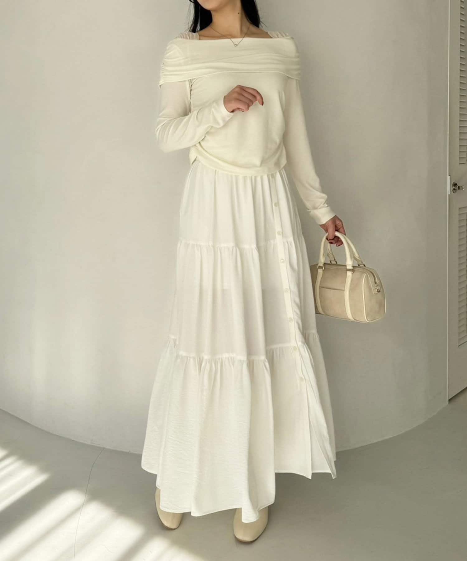 ティアードのシルエットが上品さをプラスしてくれるロングスカート