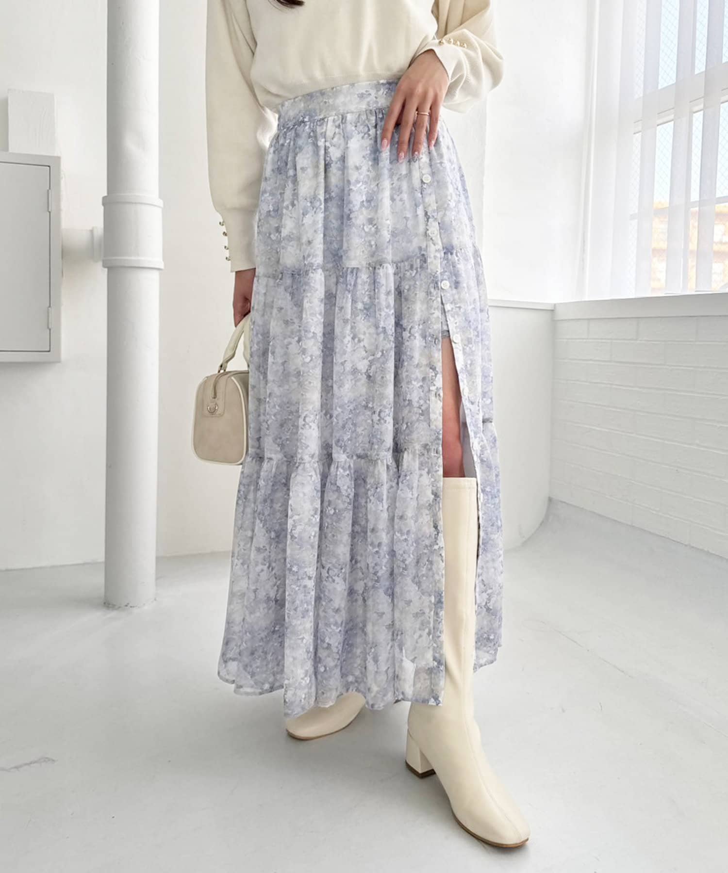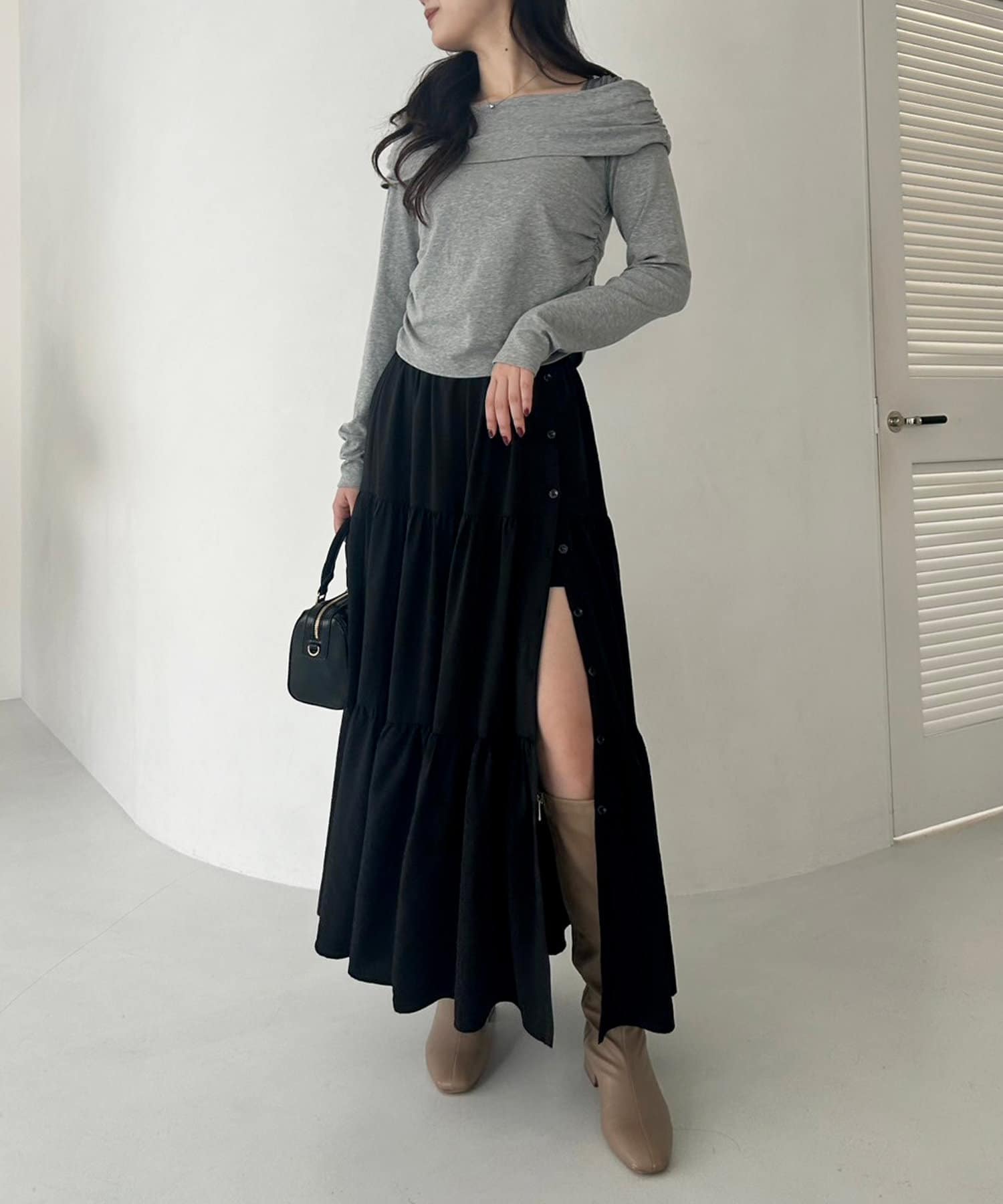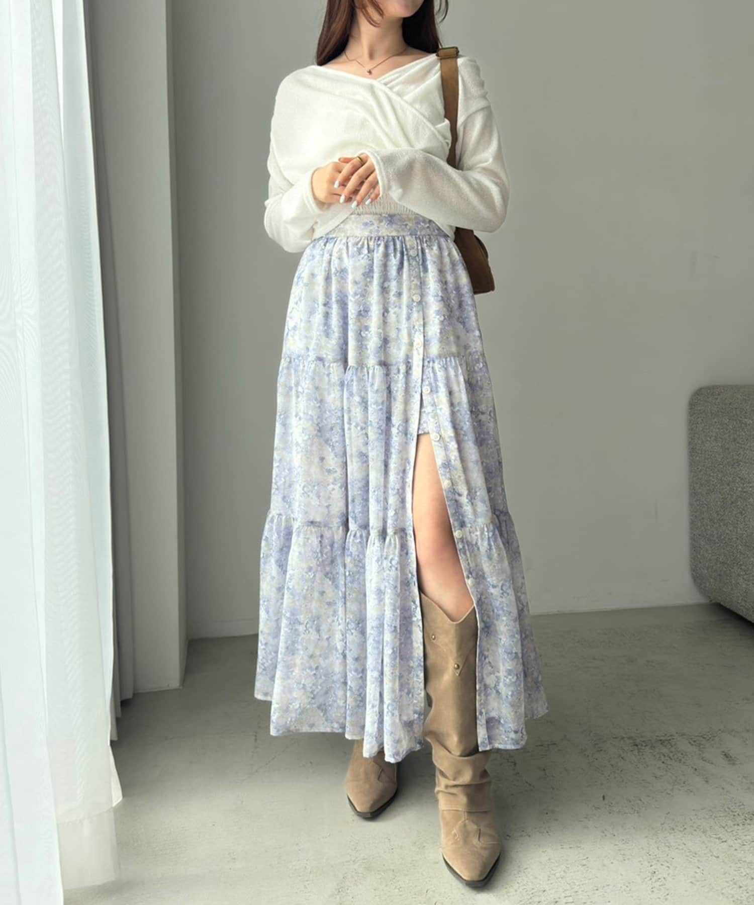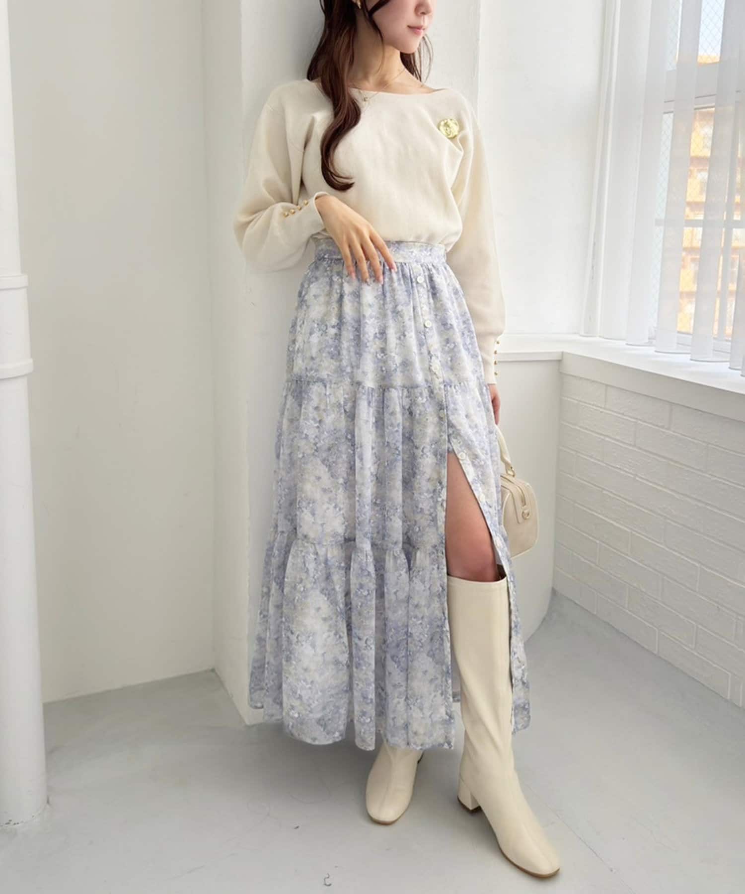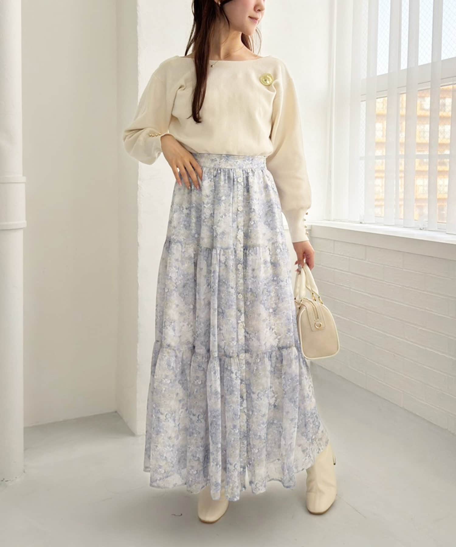 ティアードのシルエットが上品さをプラスしてくれるロングスカート