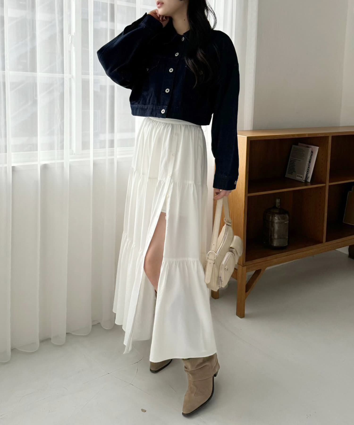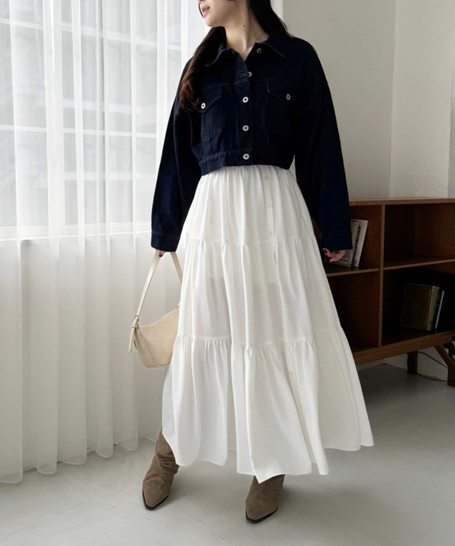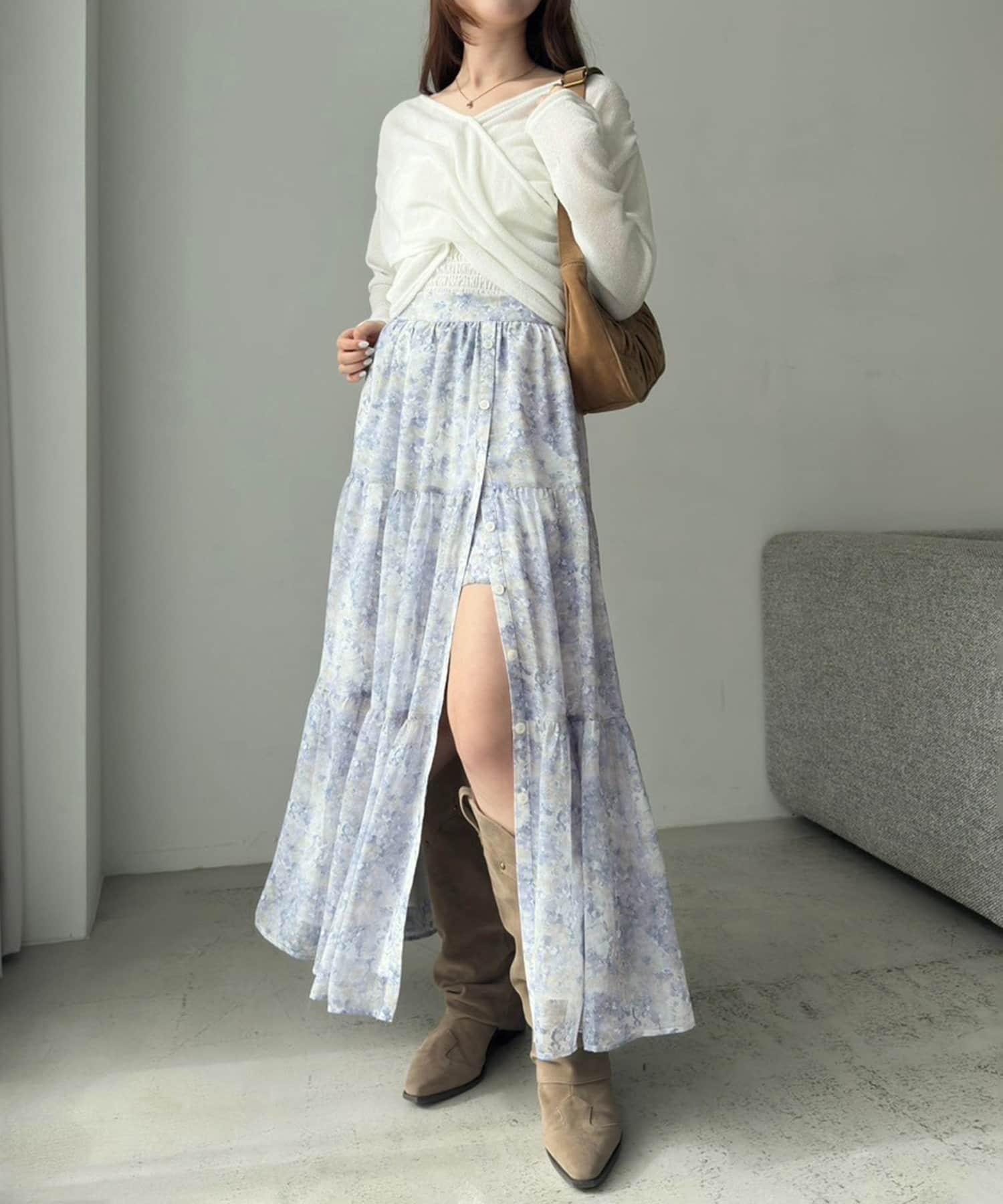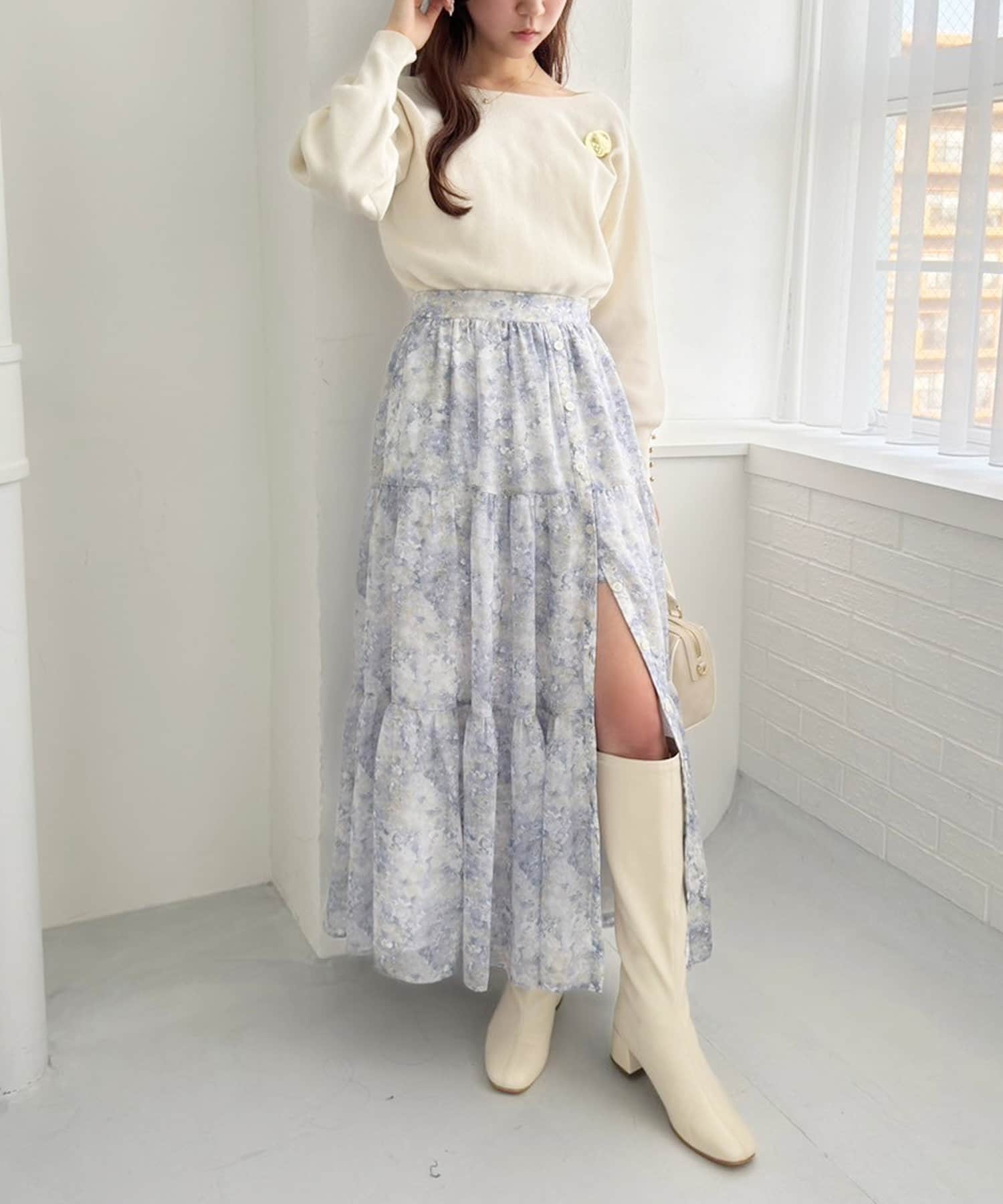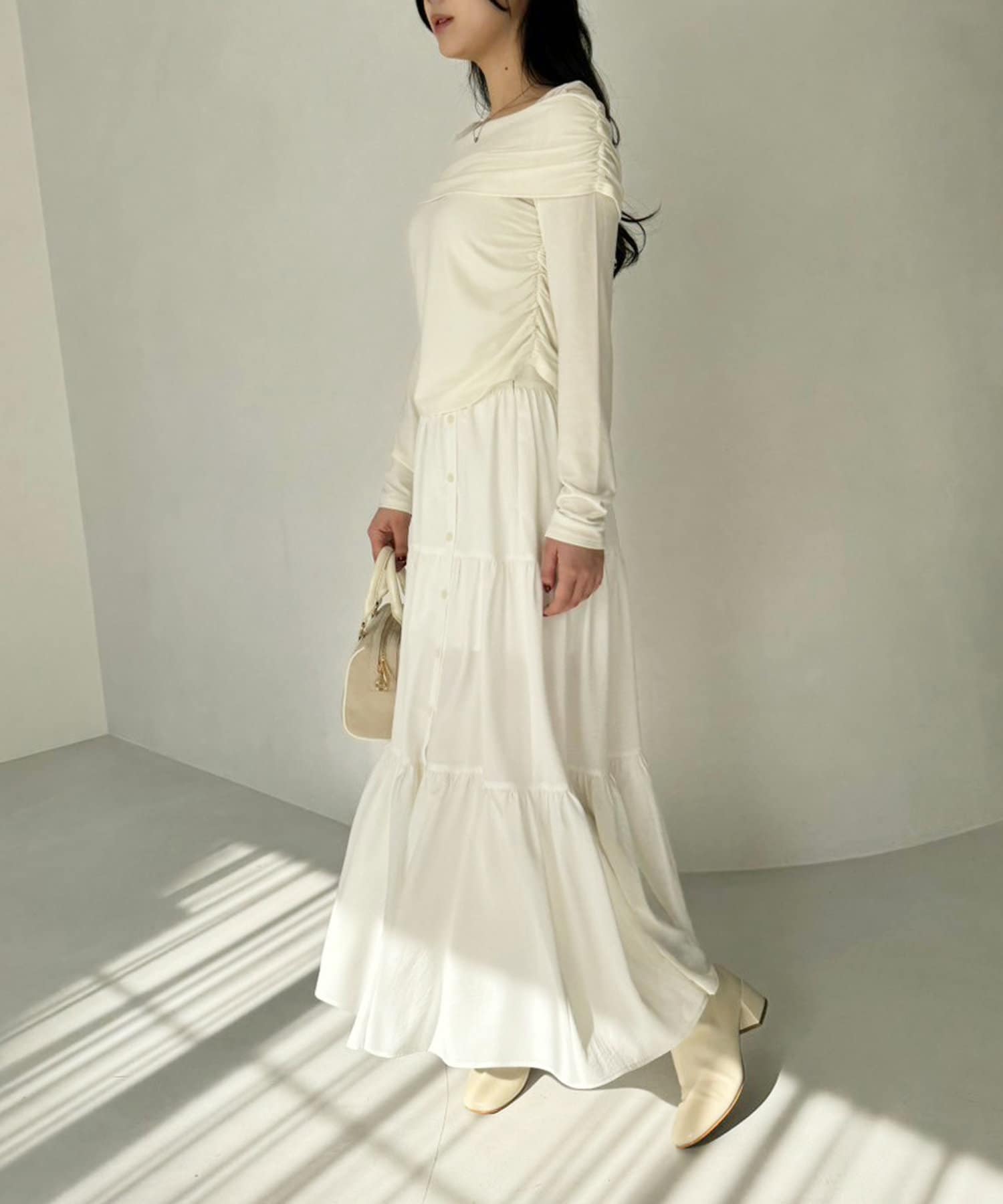 ティアードのシルエットが上品さをプラスしてくれるロングスカート