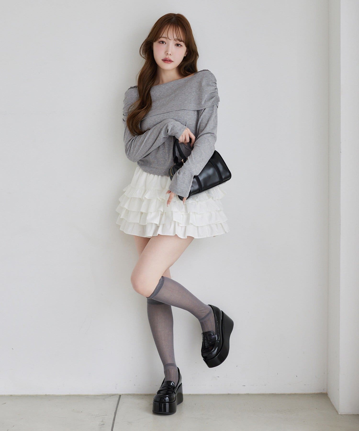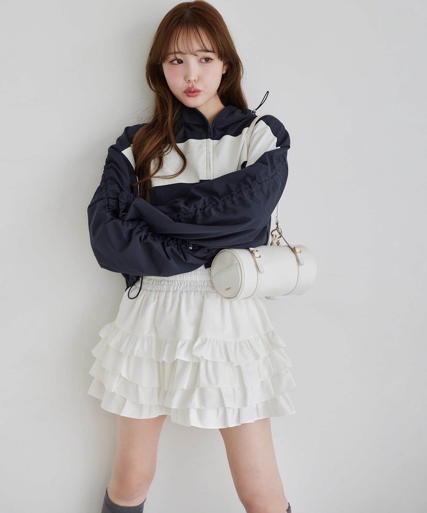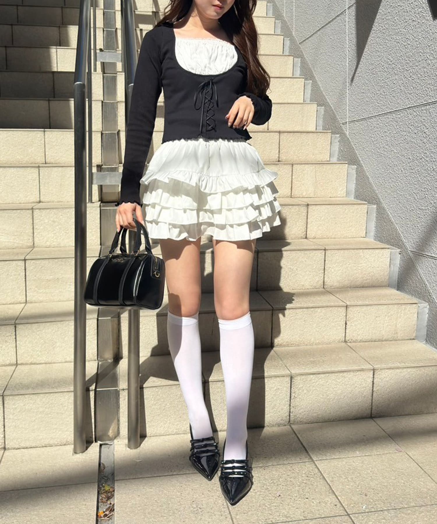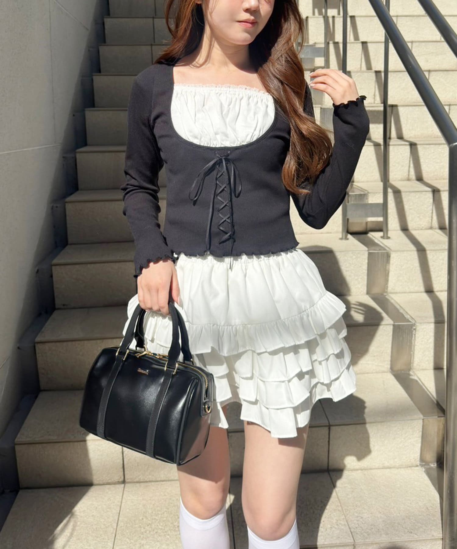 ふわっと広がるフリルティアードがかわいい韓国風スカート