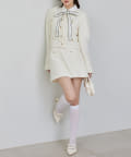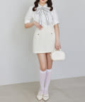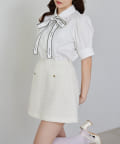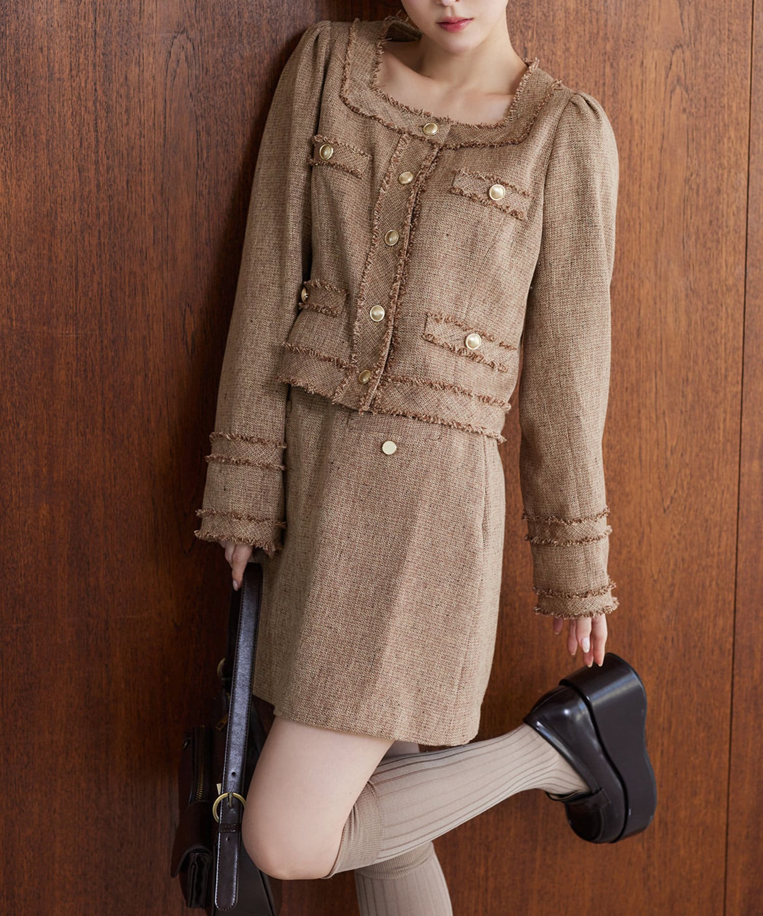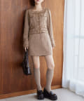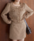 同じ生地を使用したツイードジャケットとセットアップで着こなすのもおすすめです。