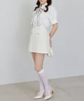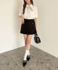 よりフェミニンに仕上げたい方は、ブラウスを合わせて上品さをプラスするのがおすすめ◎