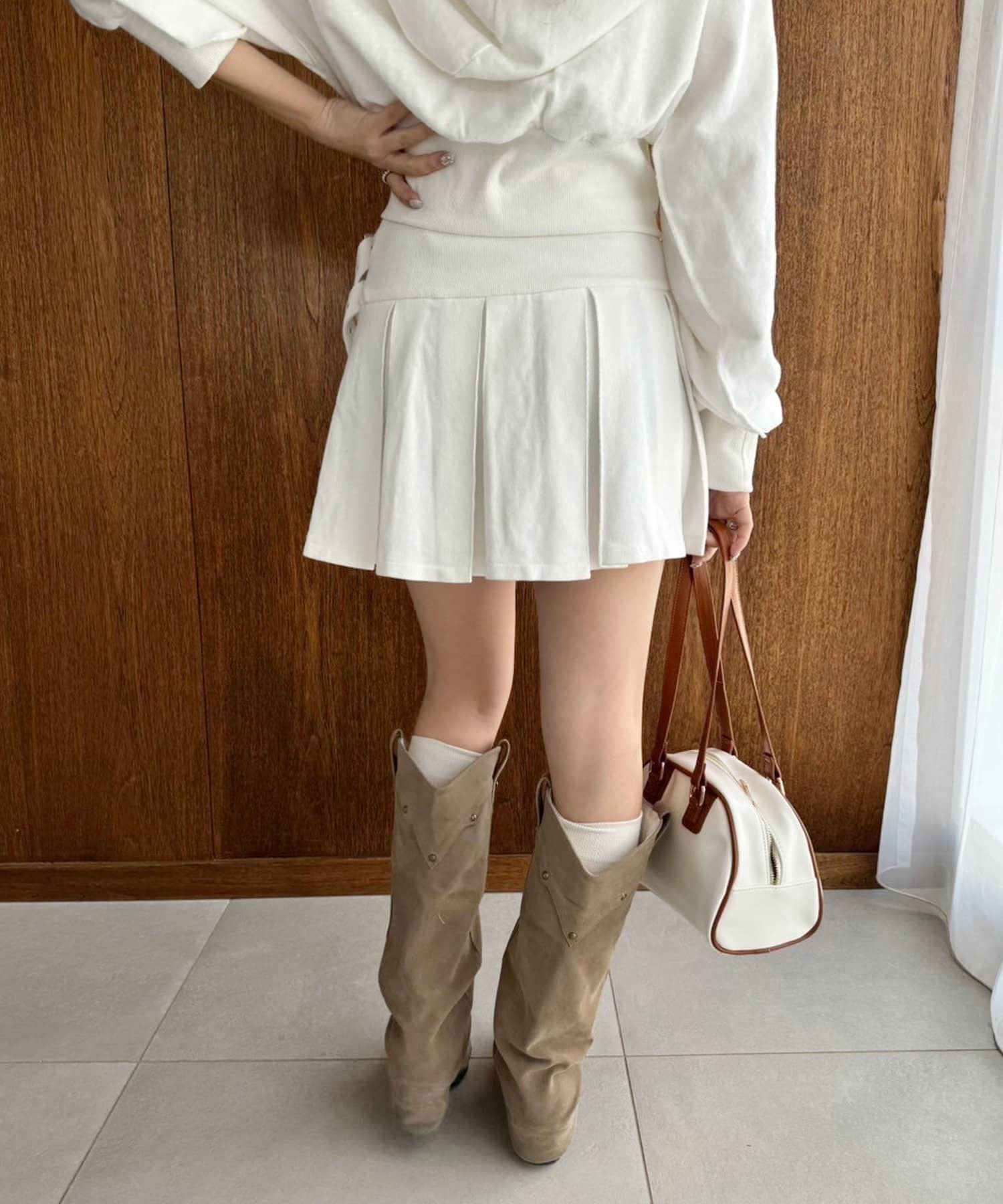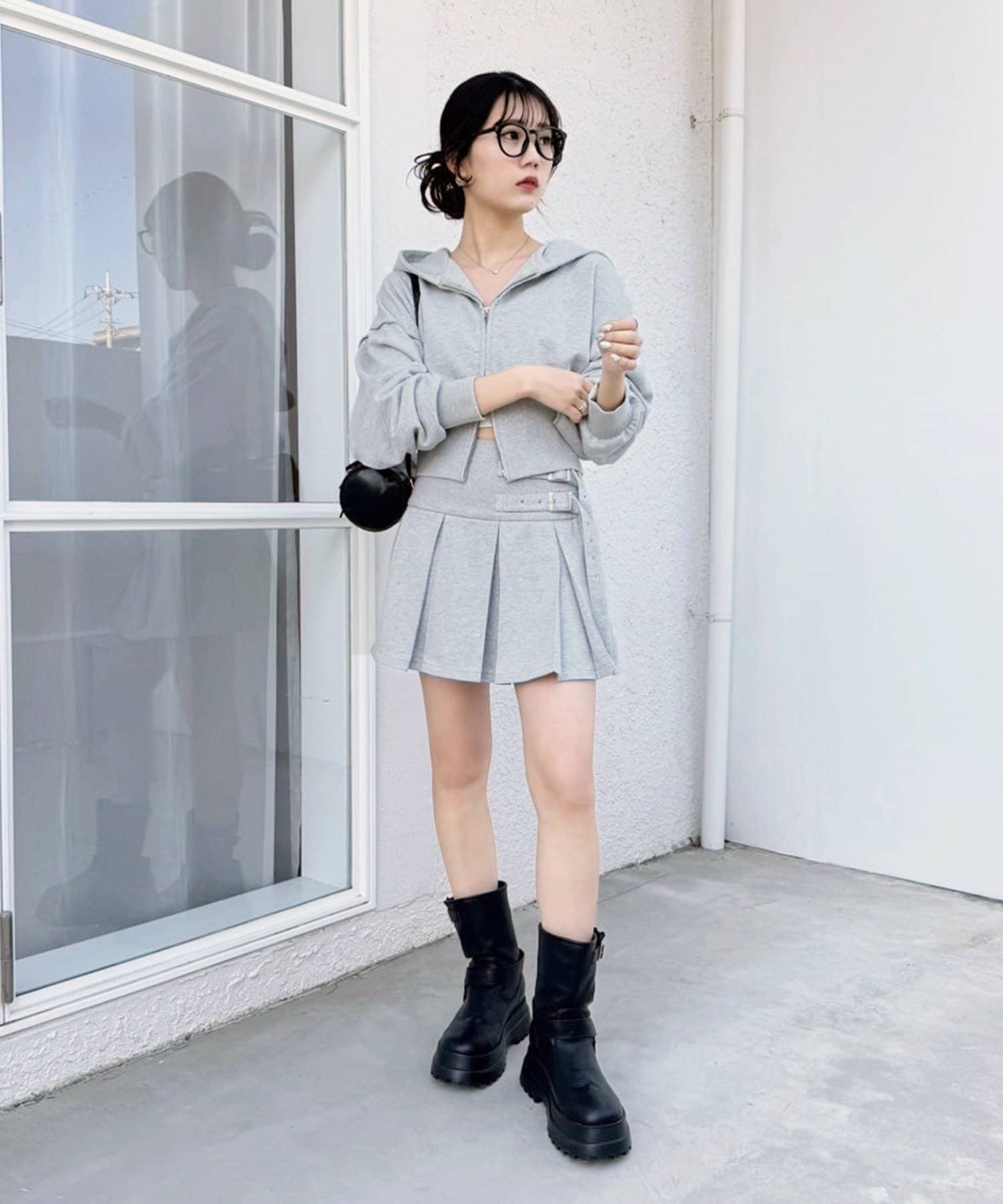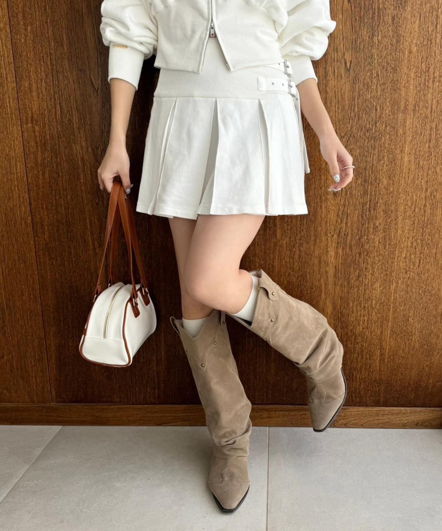 ミニ丈デザインなので、ロングブーツやサイドゴアブーツなど、