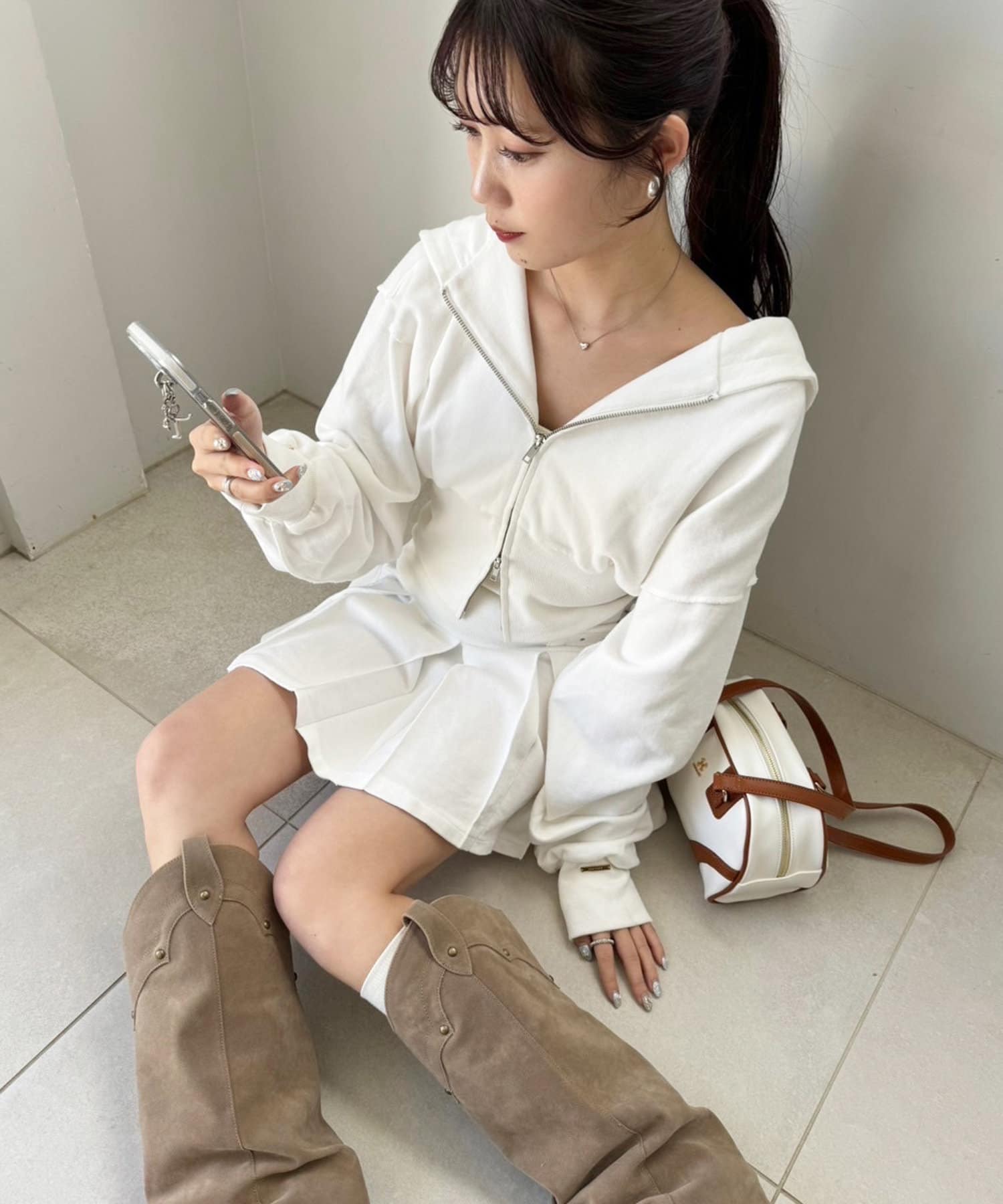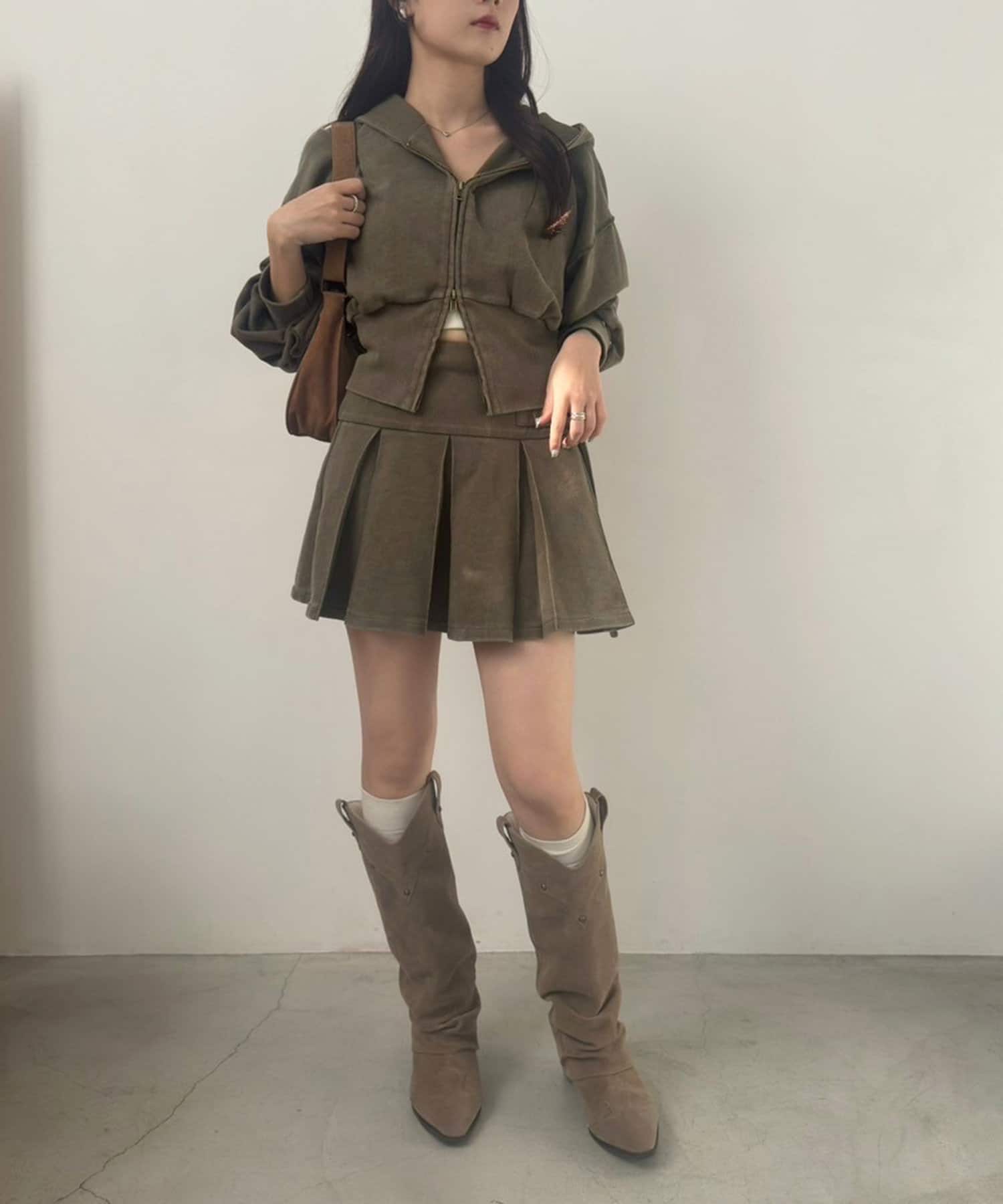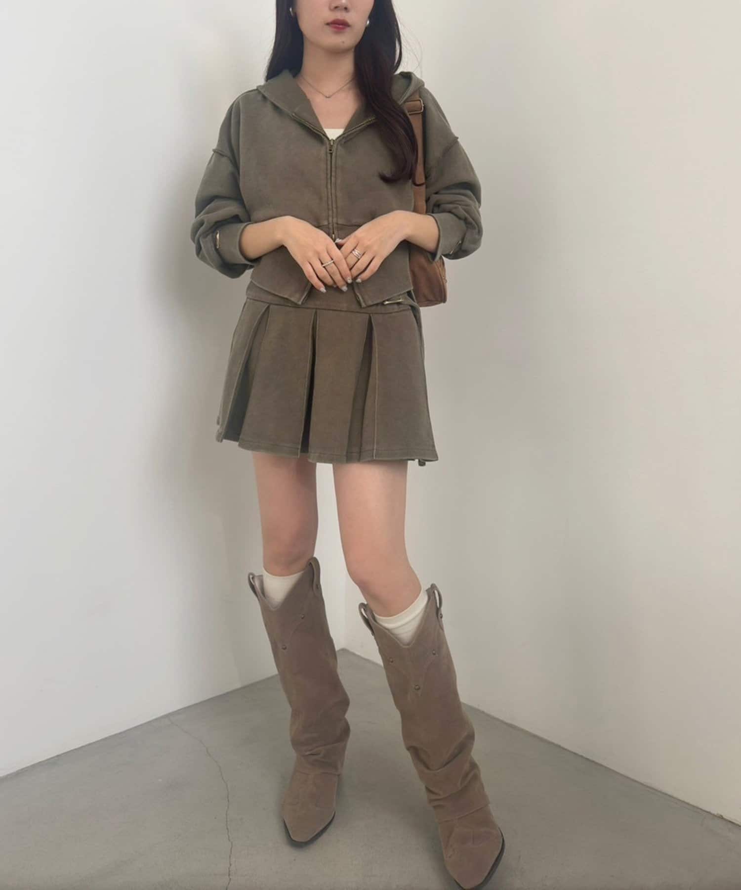 ミニ丈デザインなので、ロングブーツやサイドゴアブーツなど、