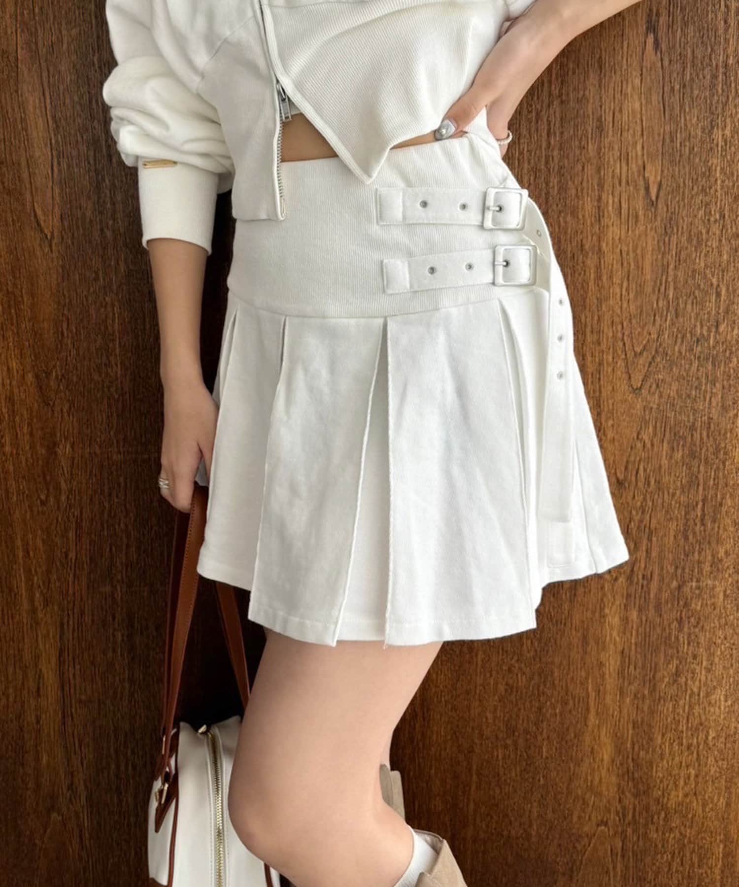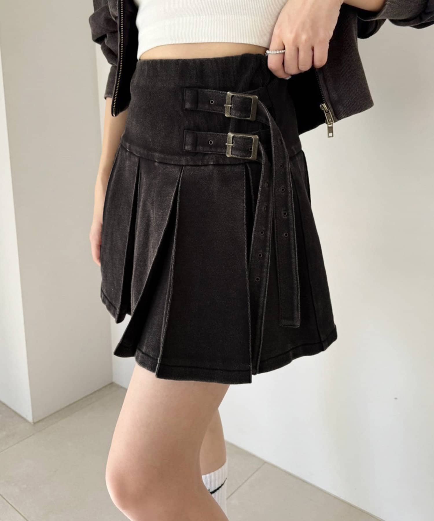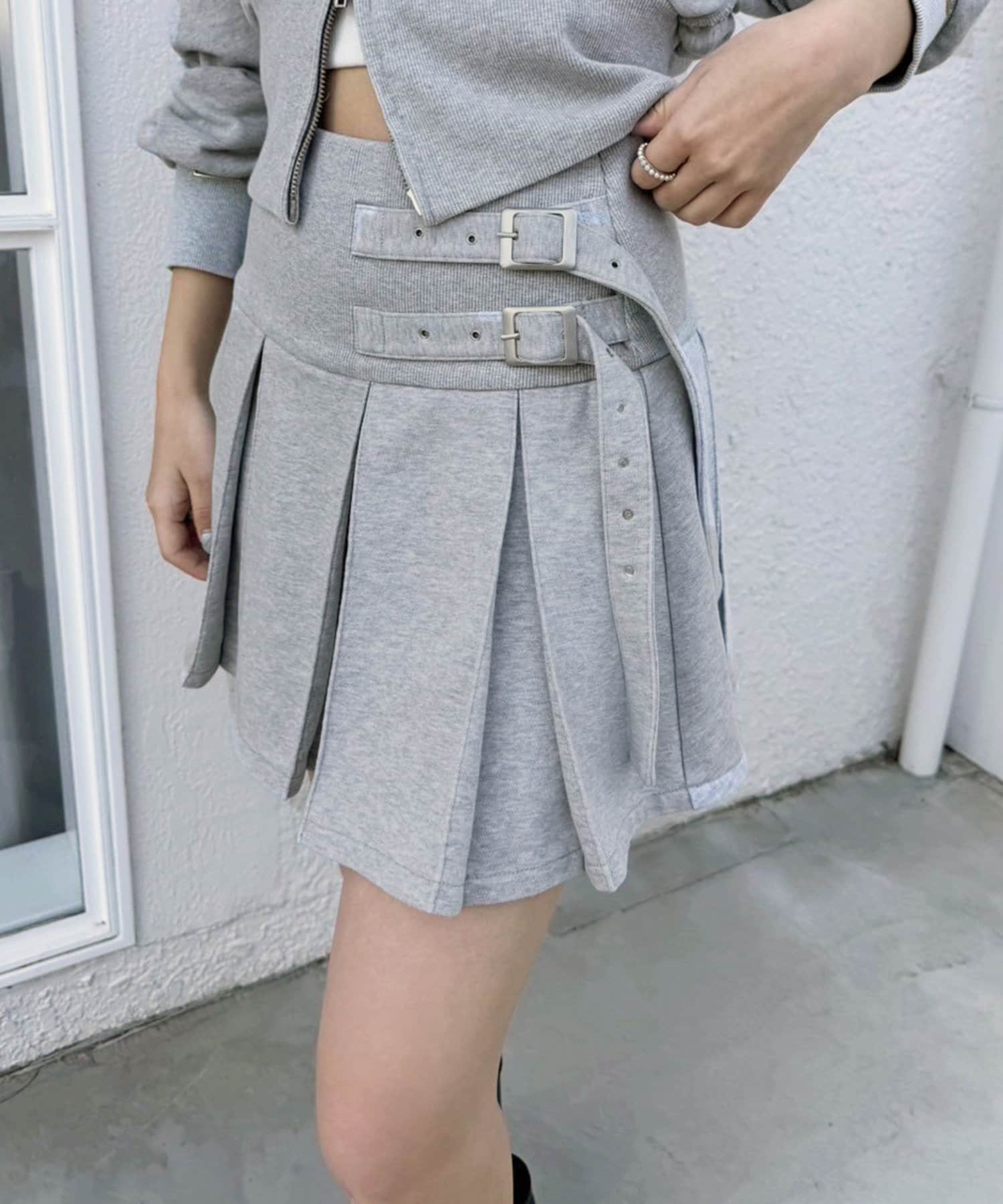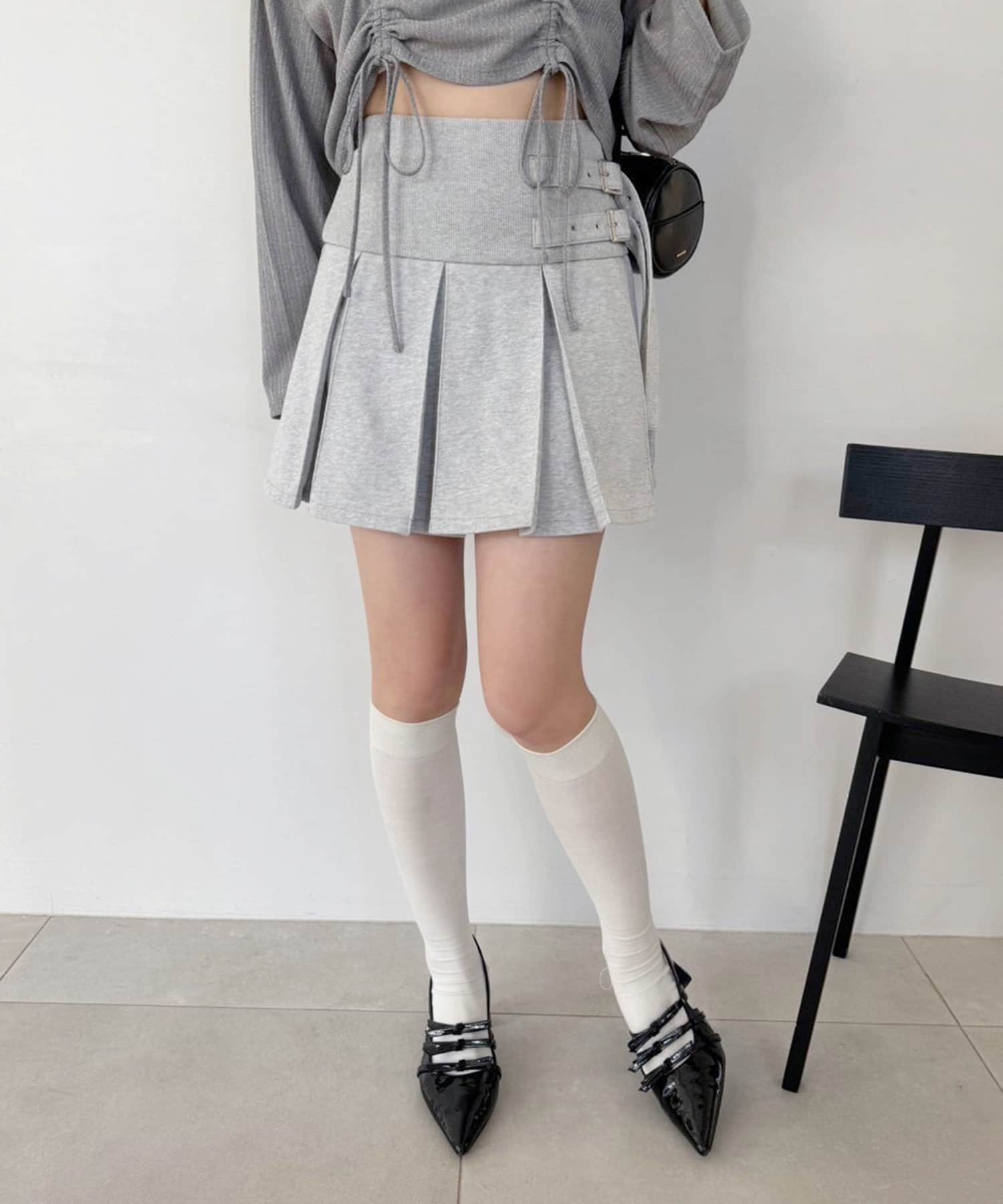 【セットアップ可能】ベルト付きプリーツミニスカート