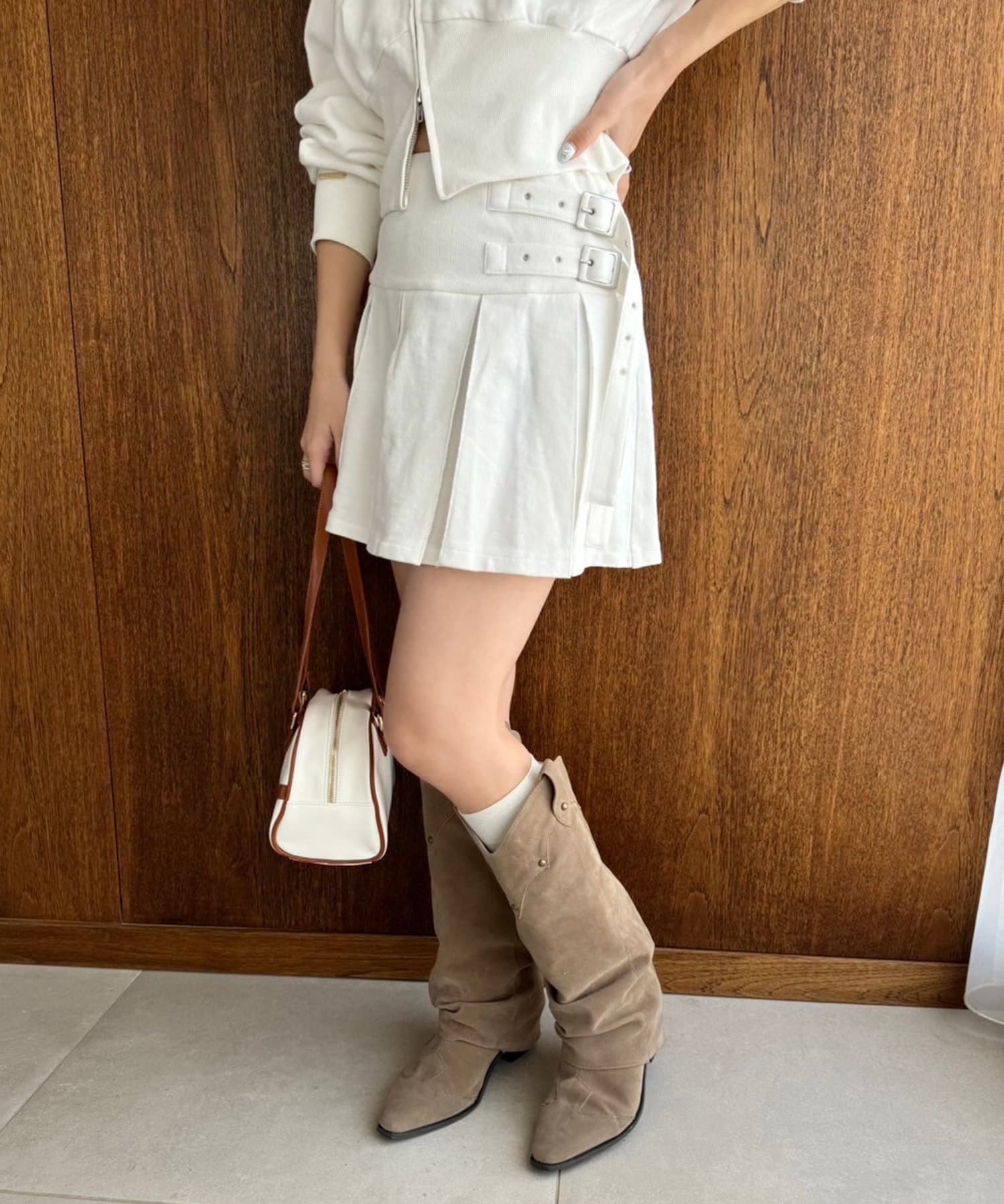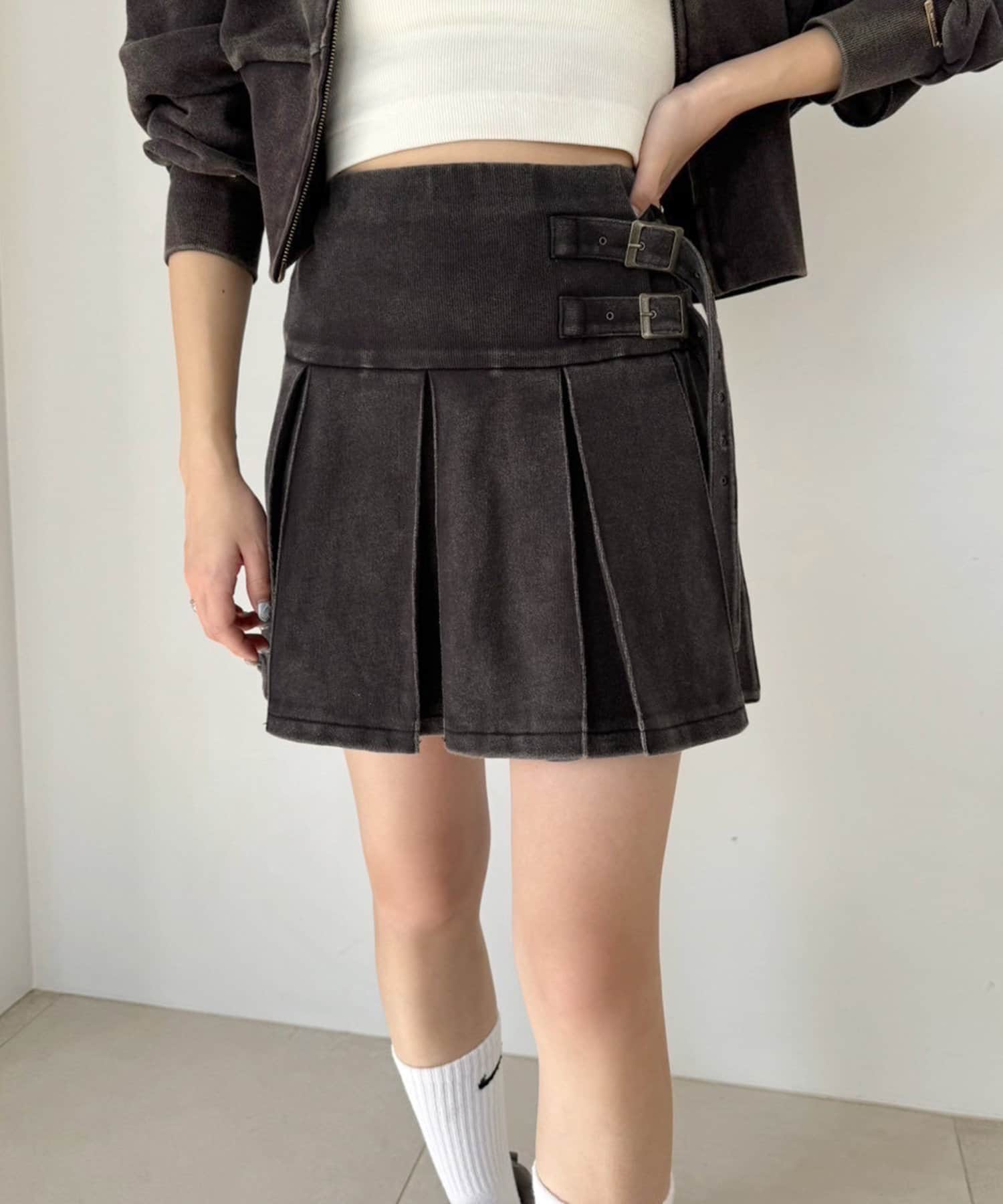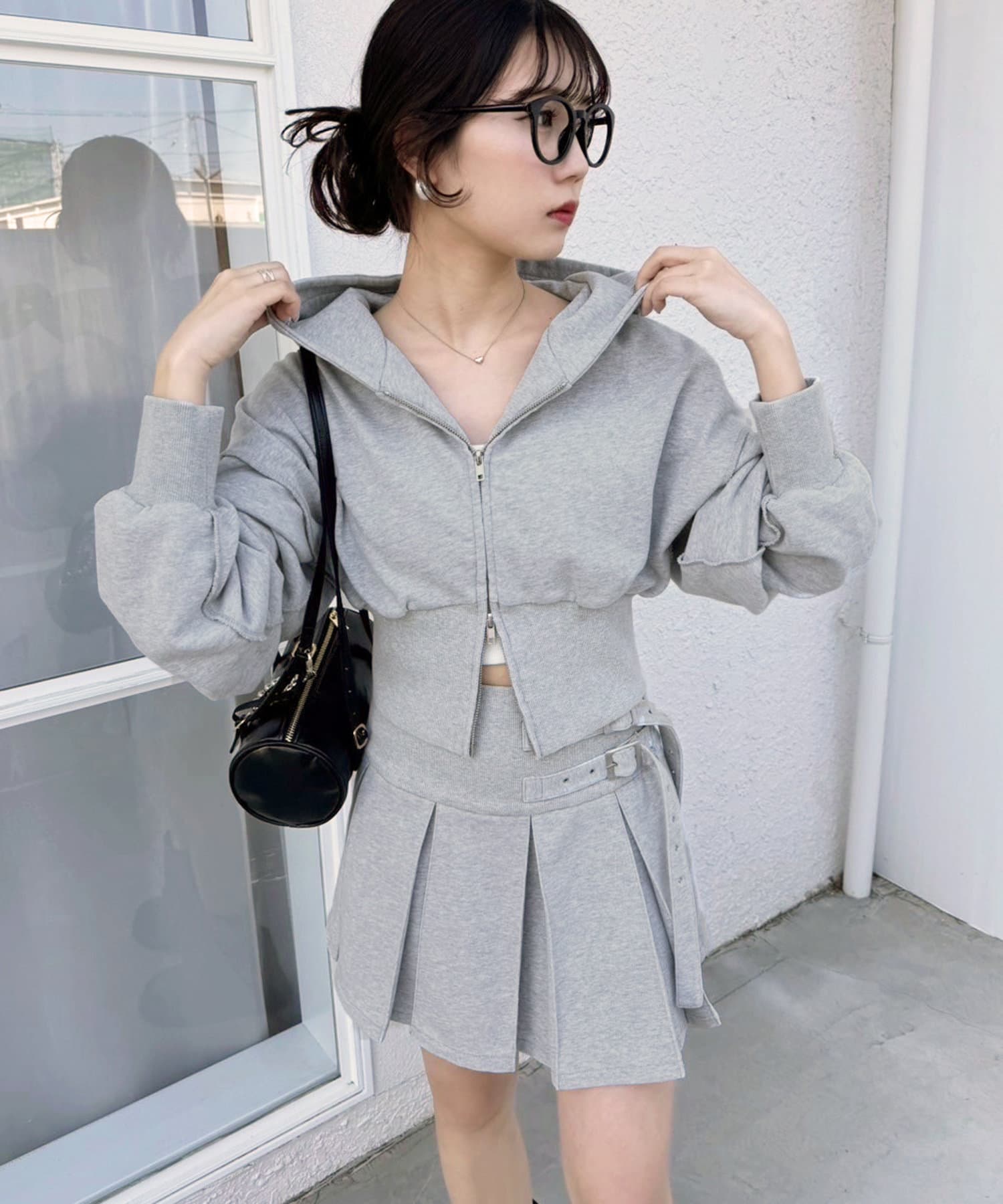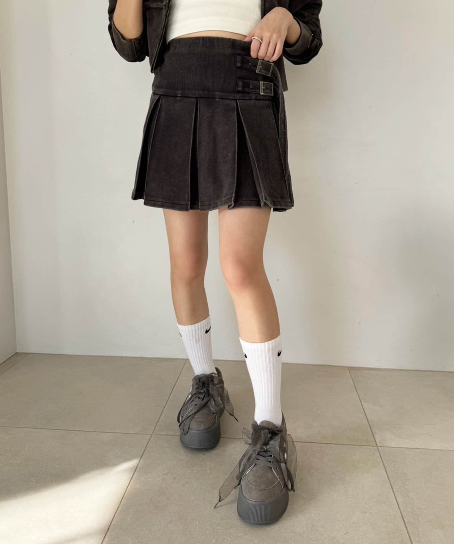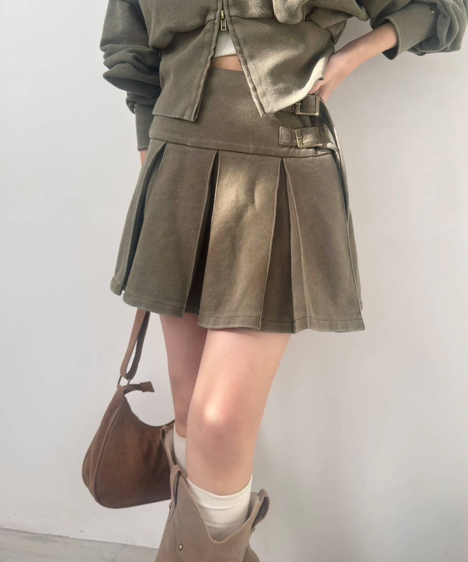 【セットアップ可能】ベルト付きプリーツミニスカート