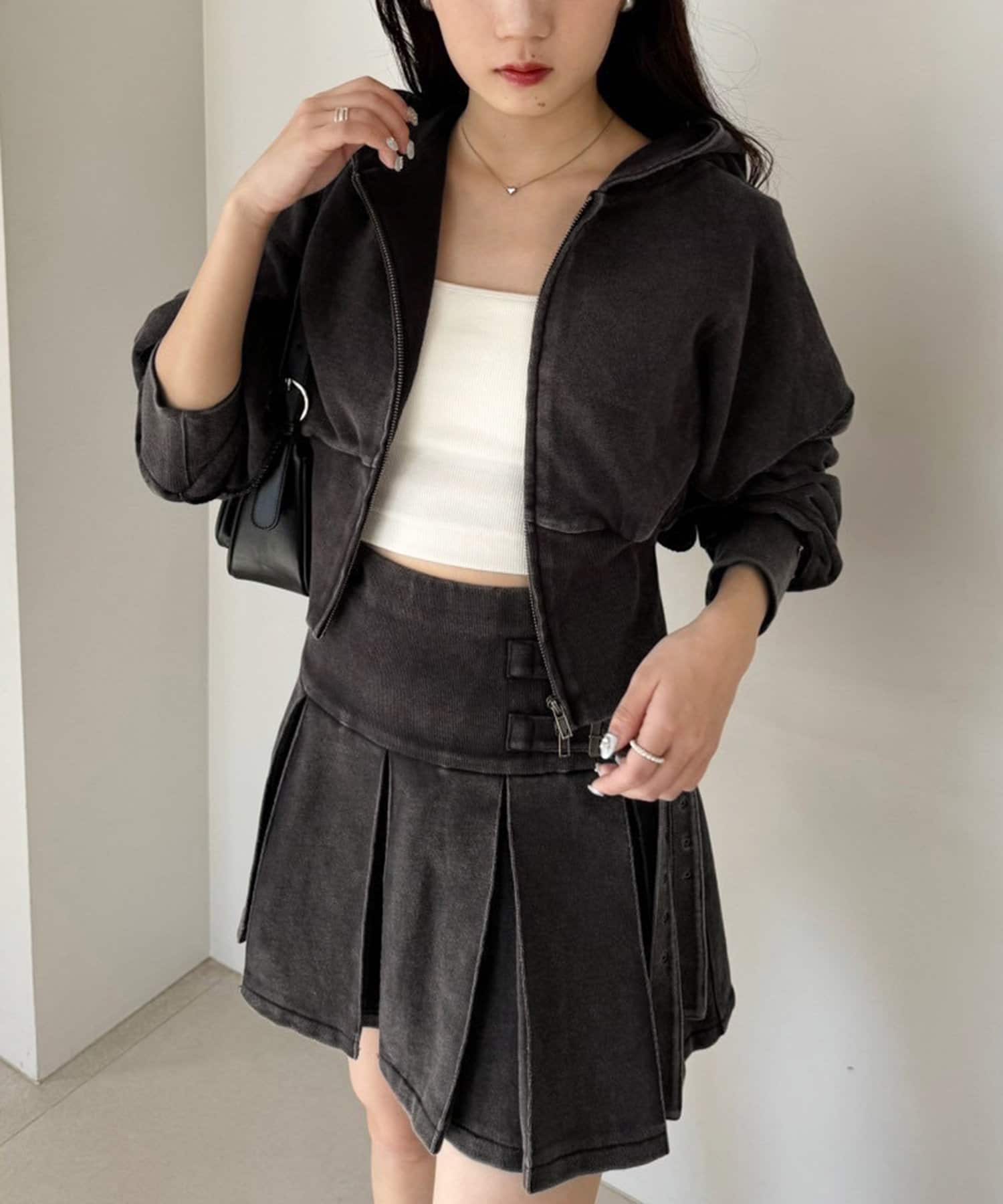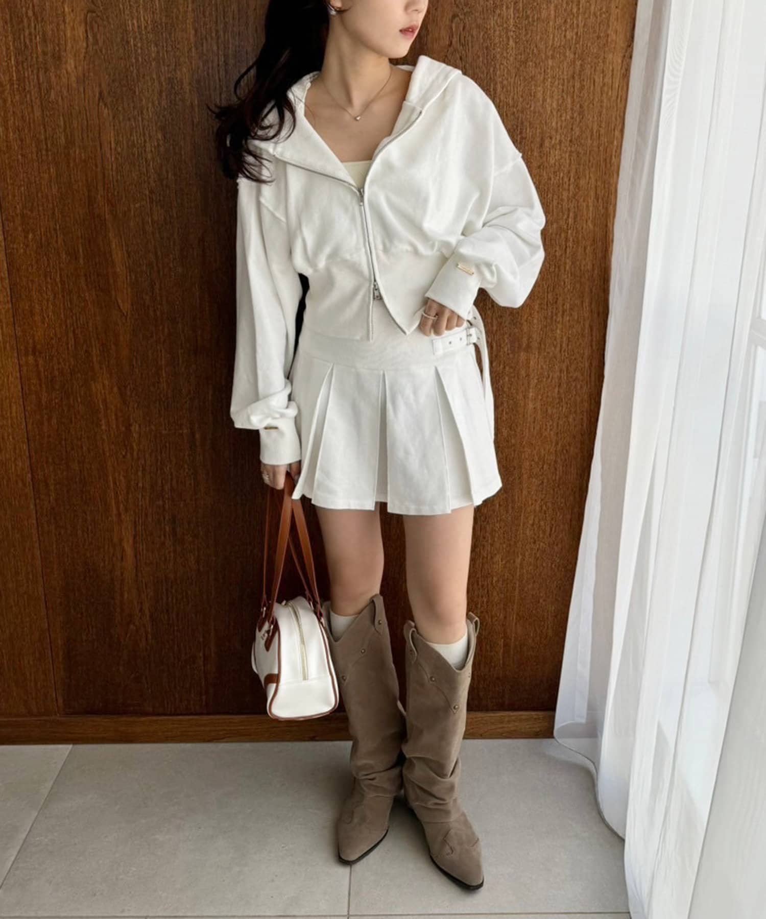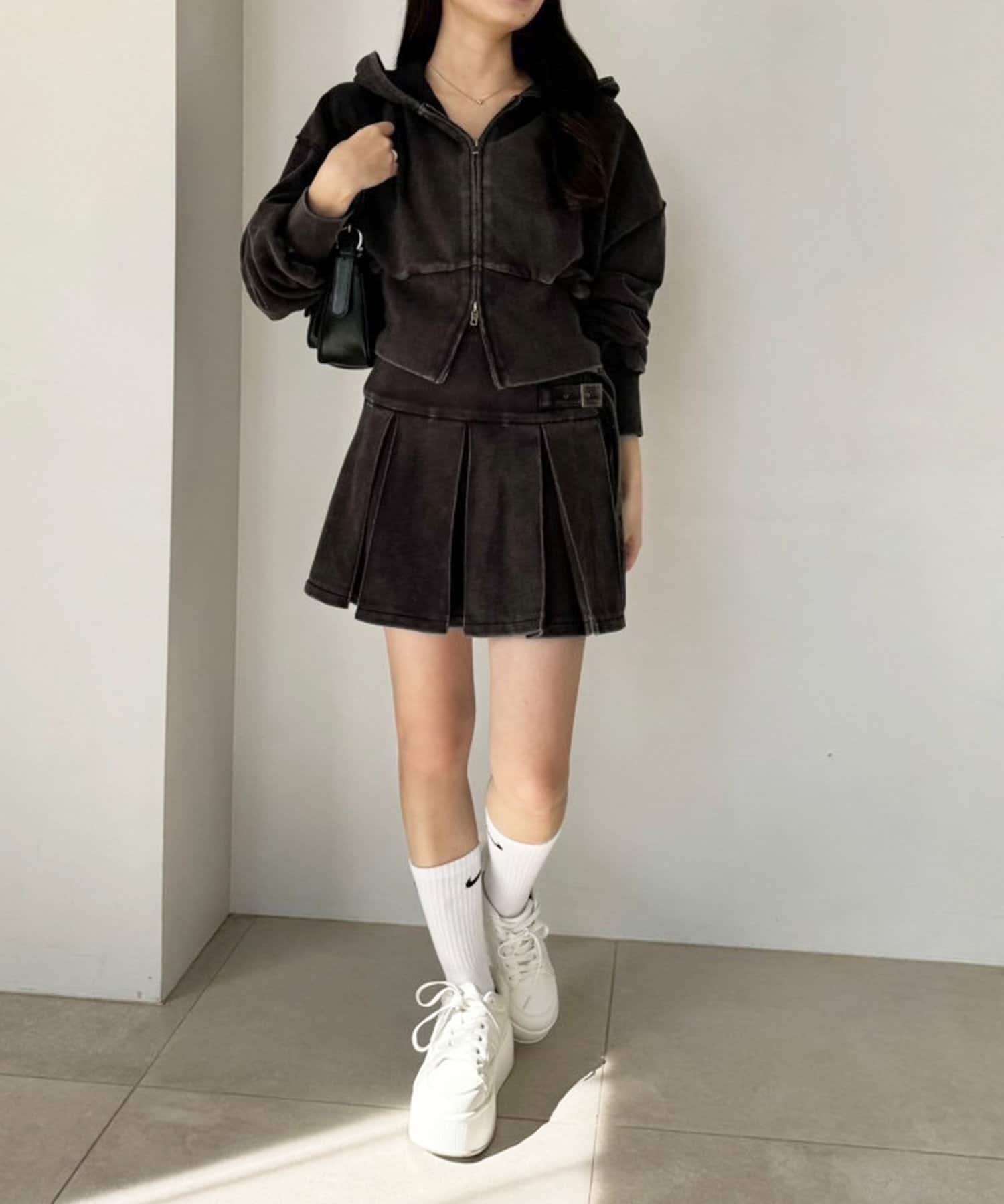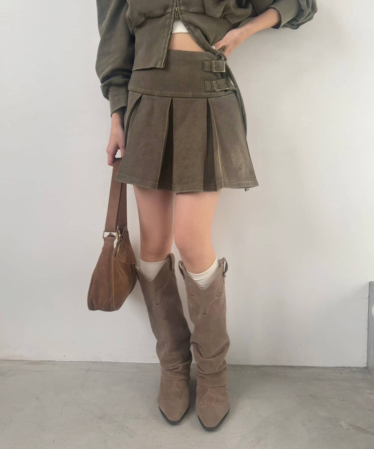 【セットアップ可能】ベルト付きプリーツミニスカート
