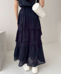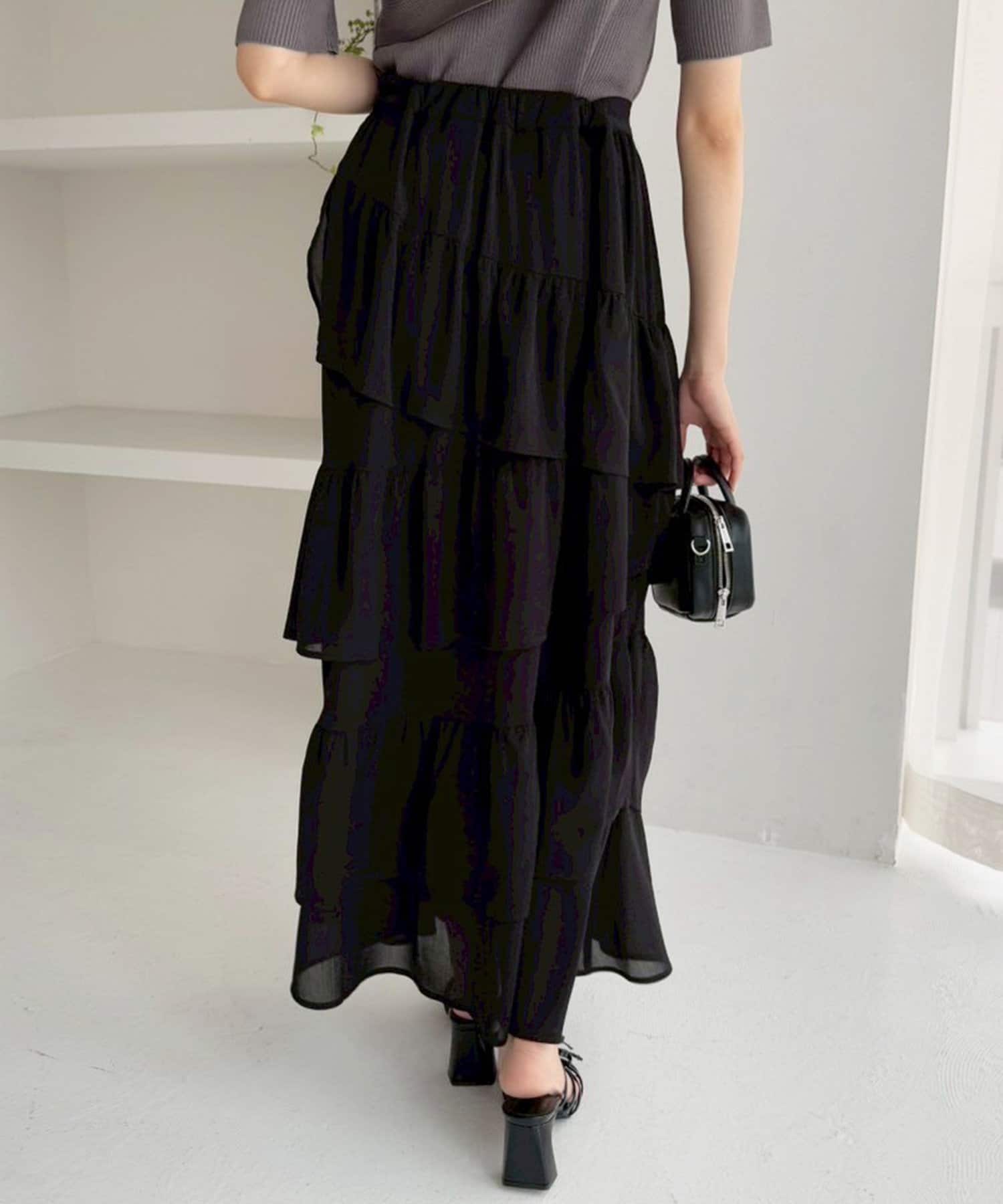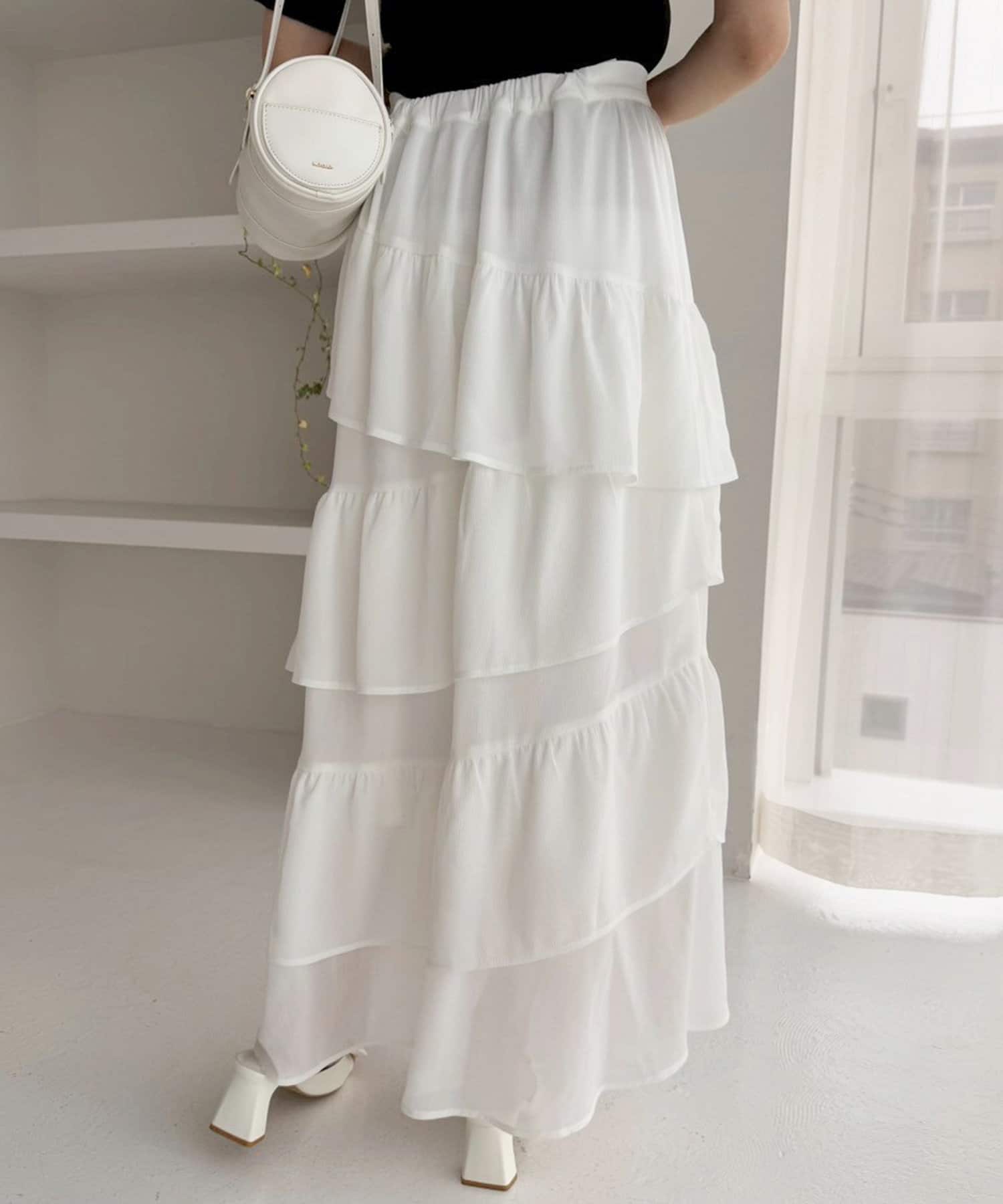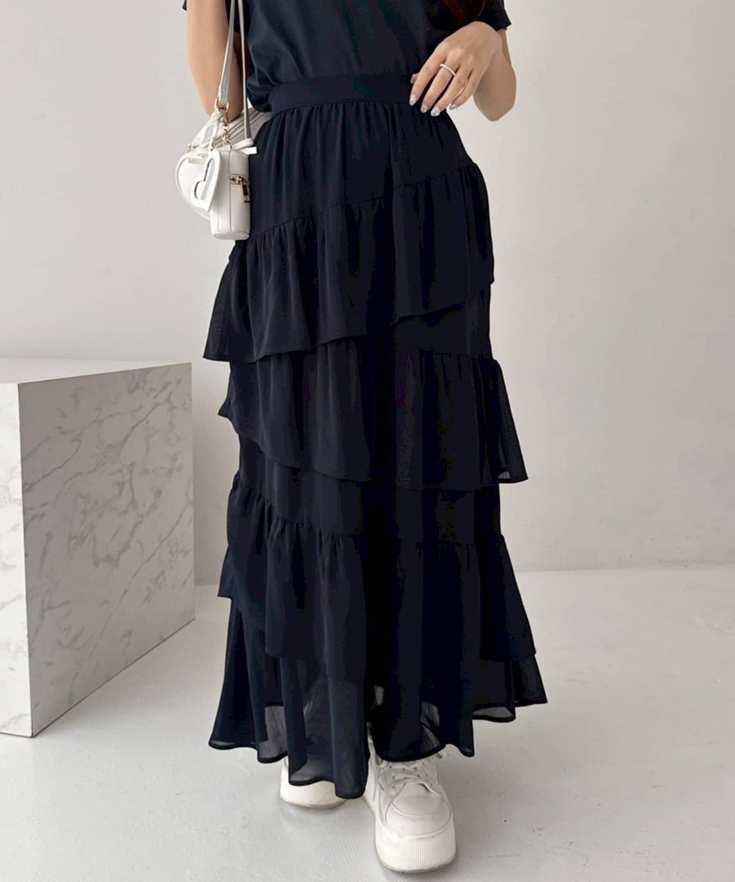 動きに合わせて揺れる、たっぷりと重ねたフリルが女性らしいティアードスカート
