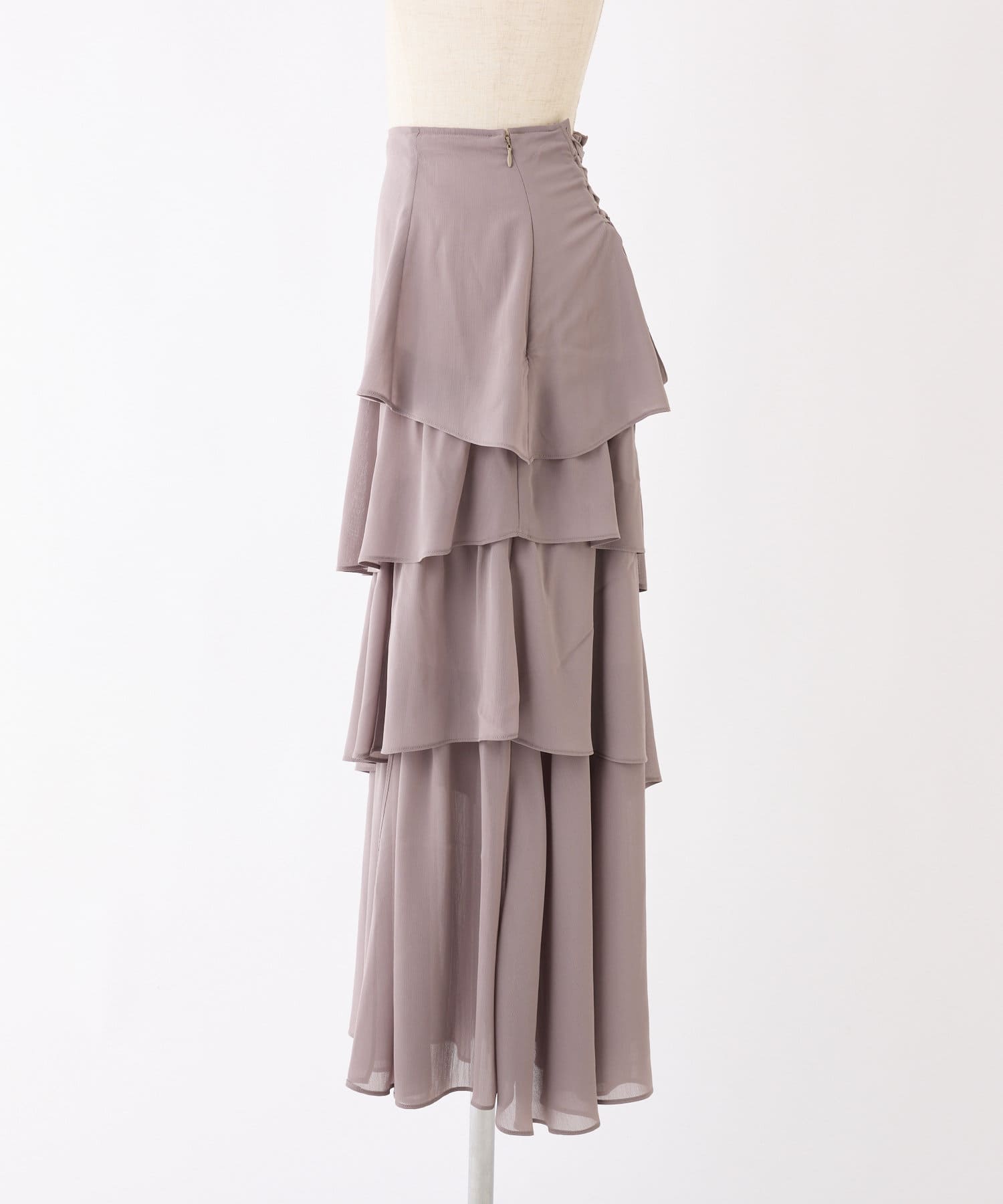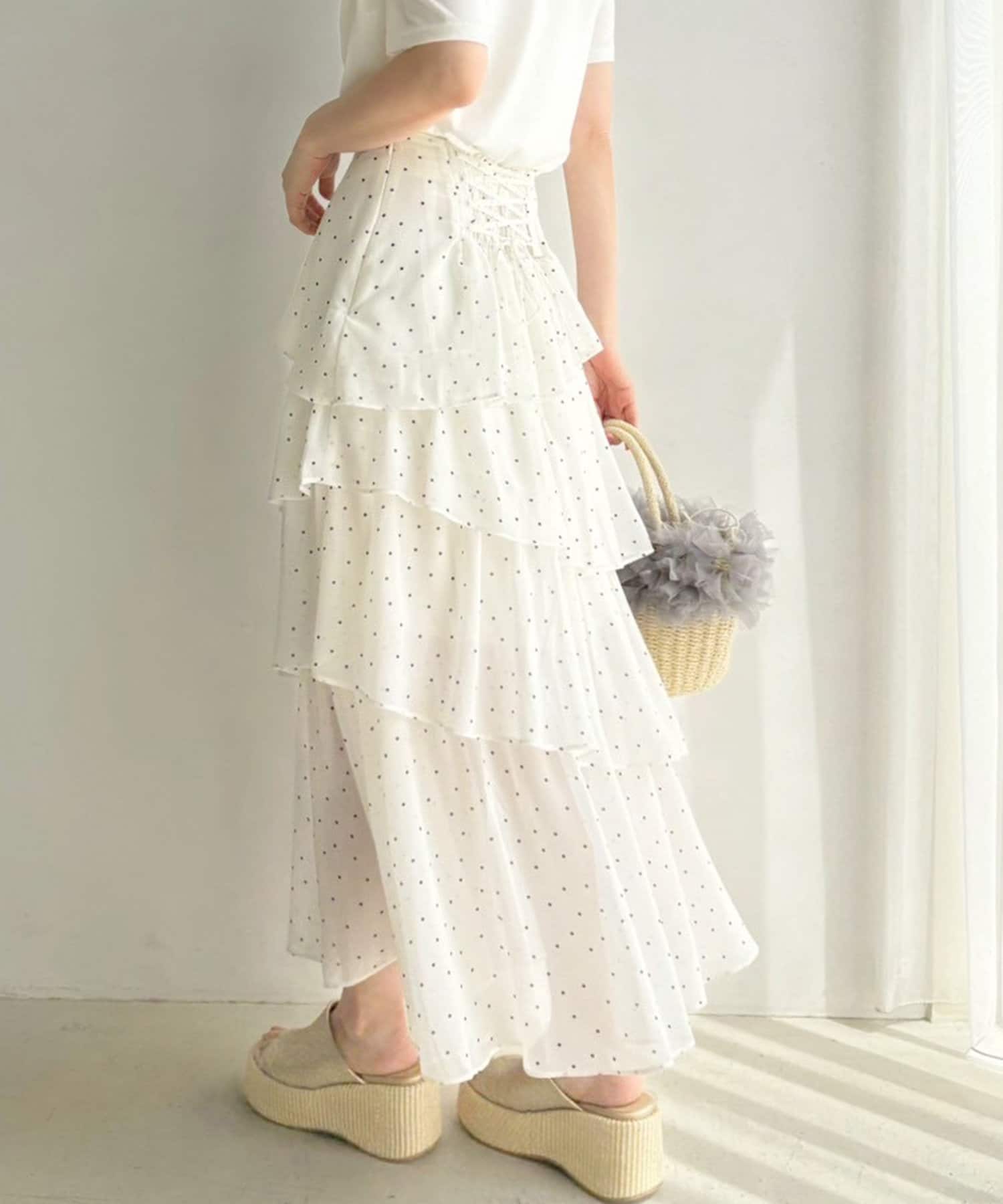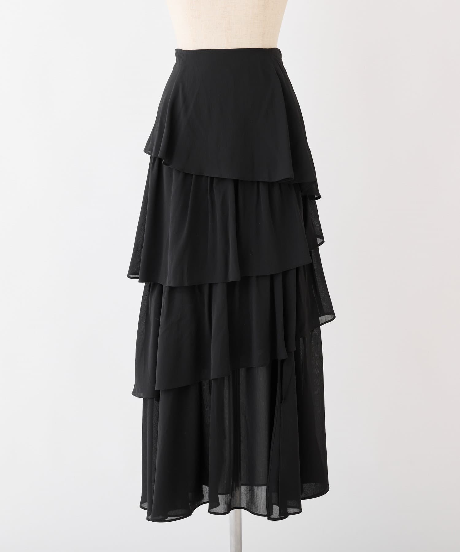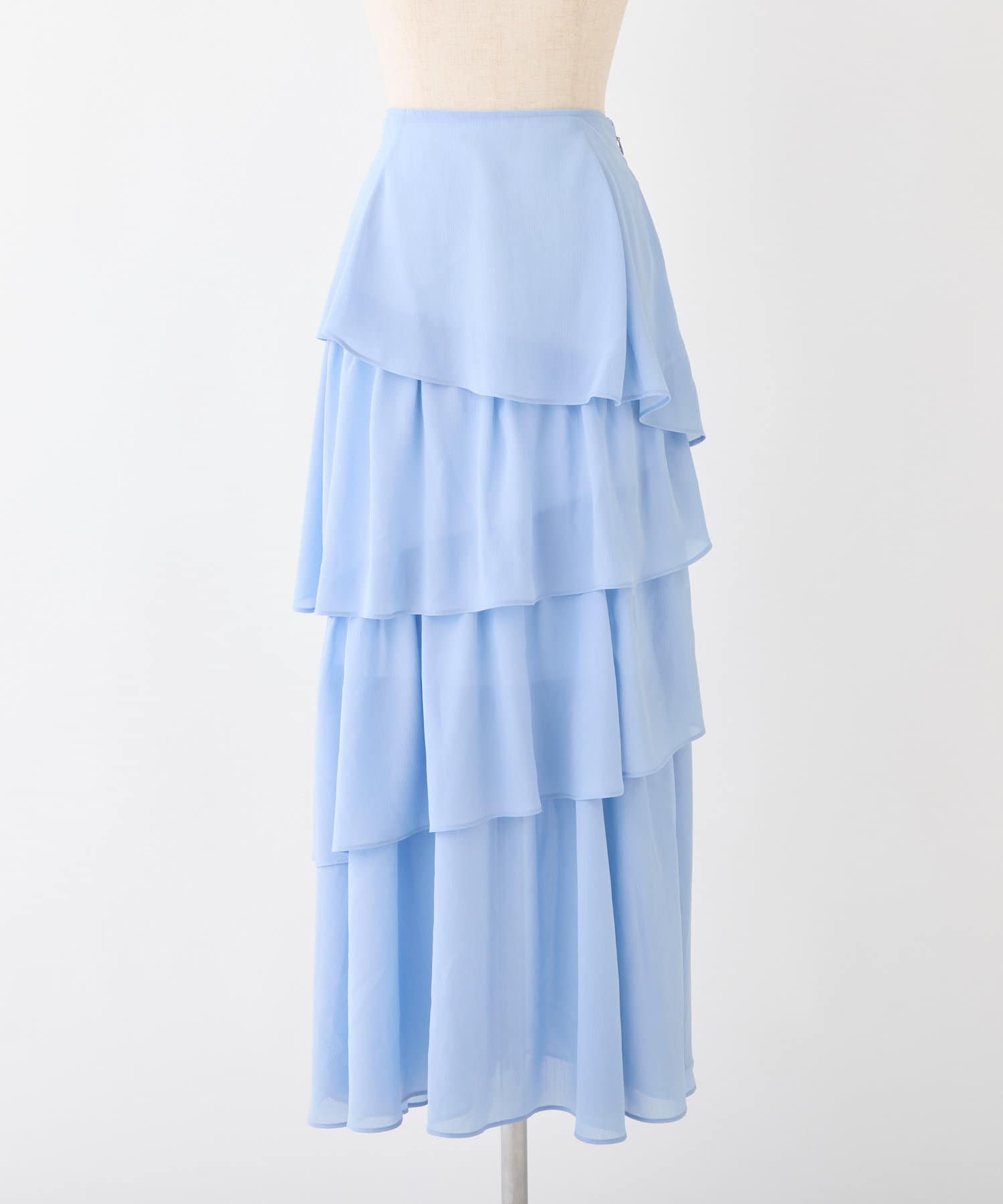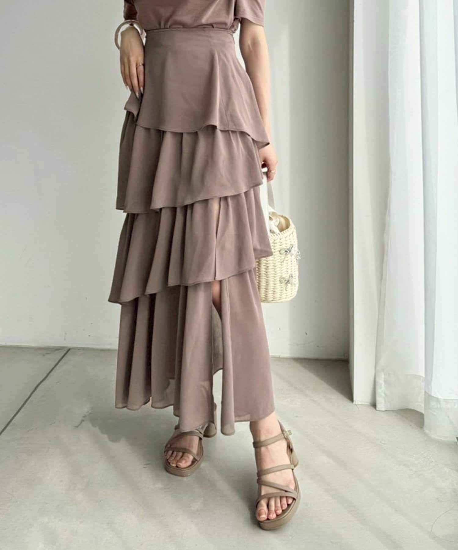 動きに合わせて揺れる、たっぷりと重ねたフリルが女性らしいティアードスカート