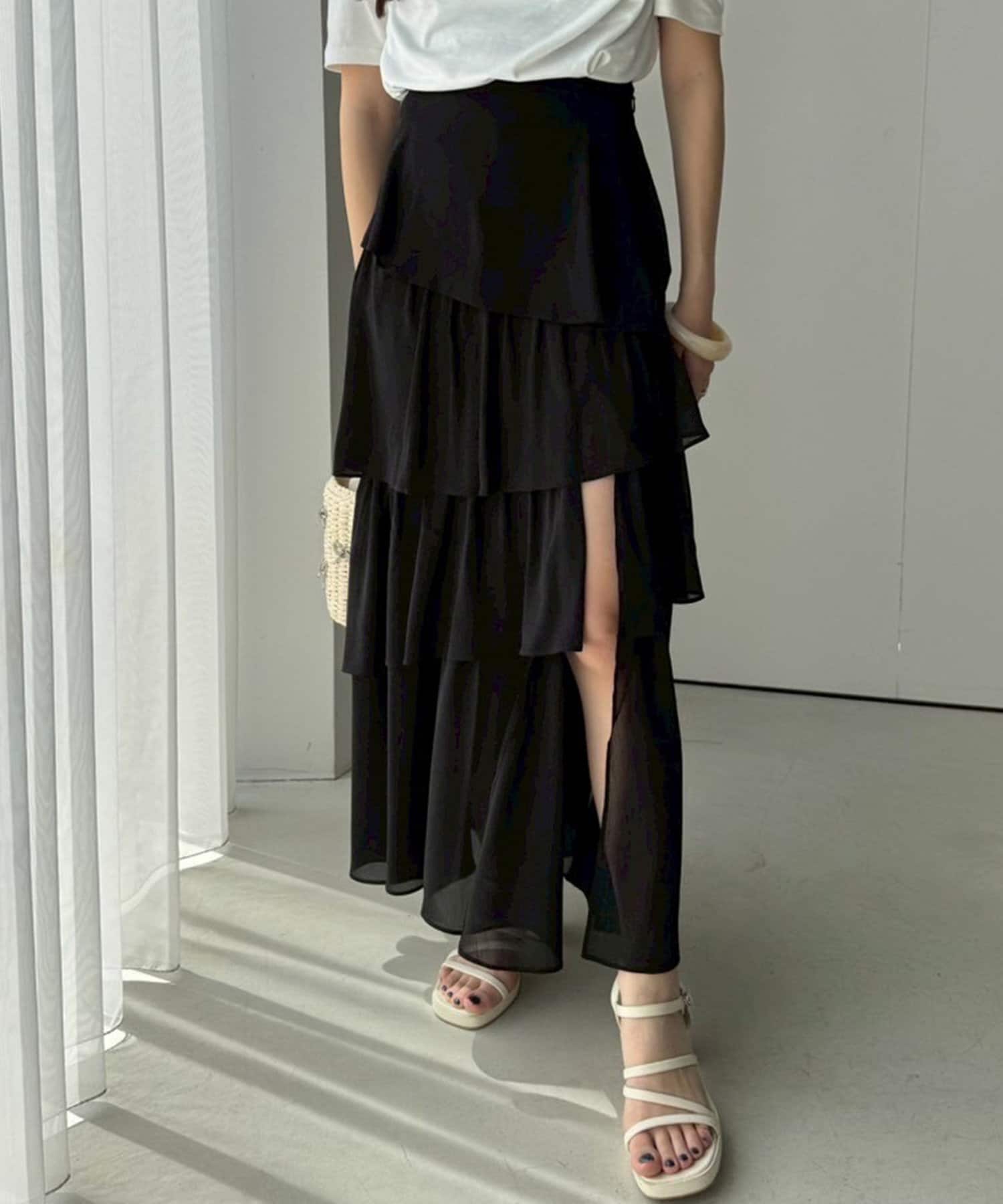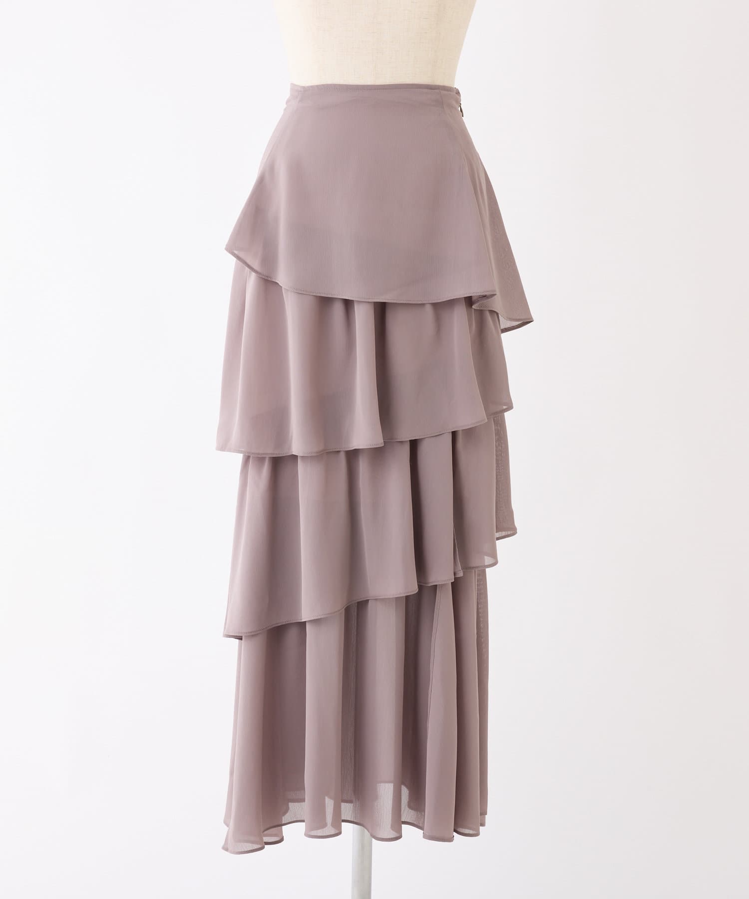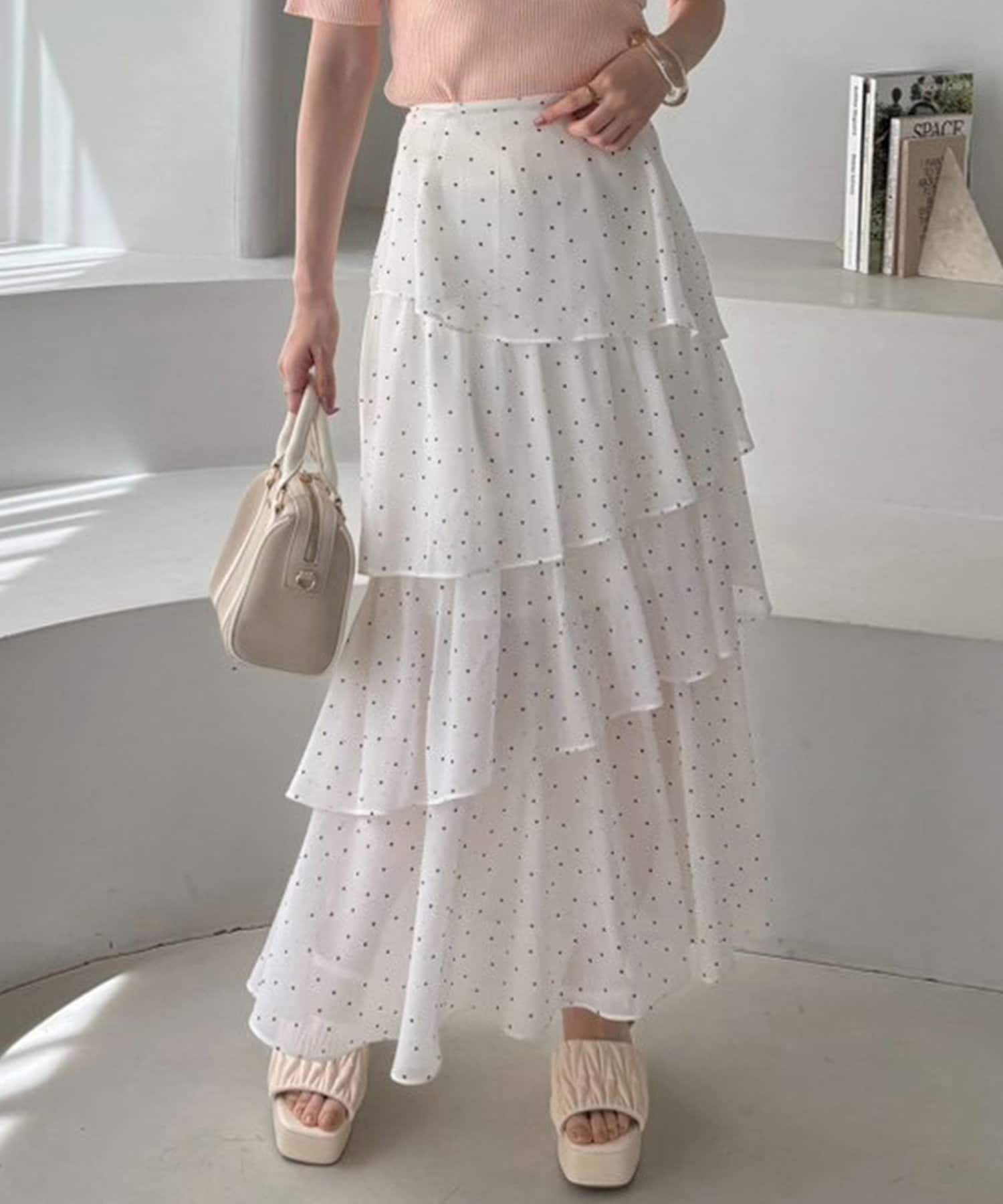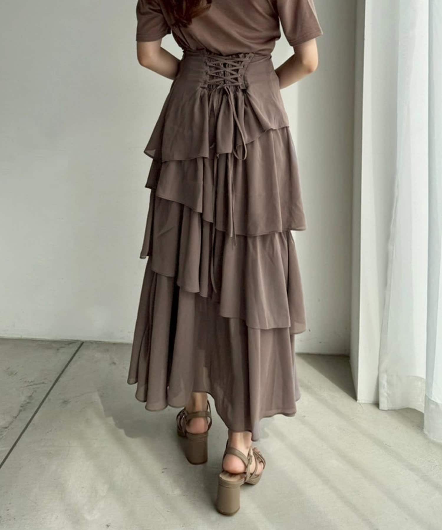 動きに合わせて揺れる、たっぷりと重ねたフリルが女性らしいティアードスカート