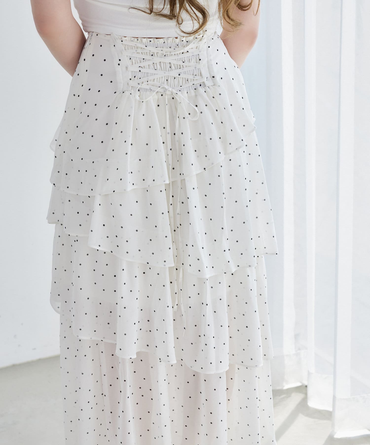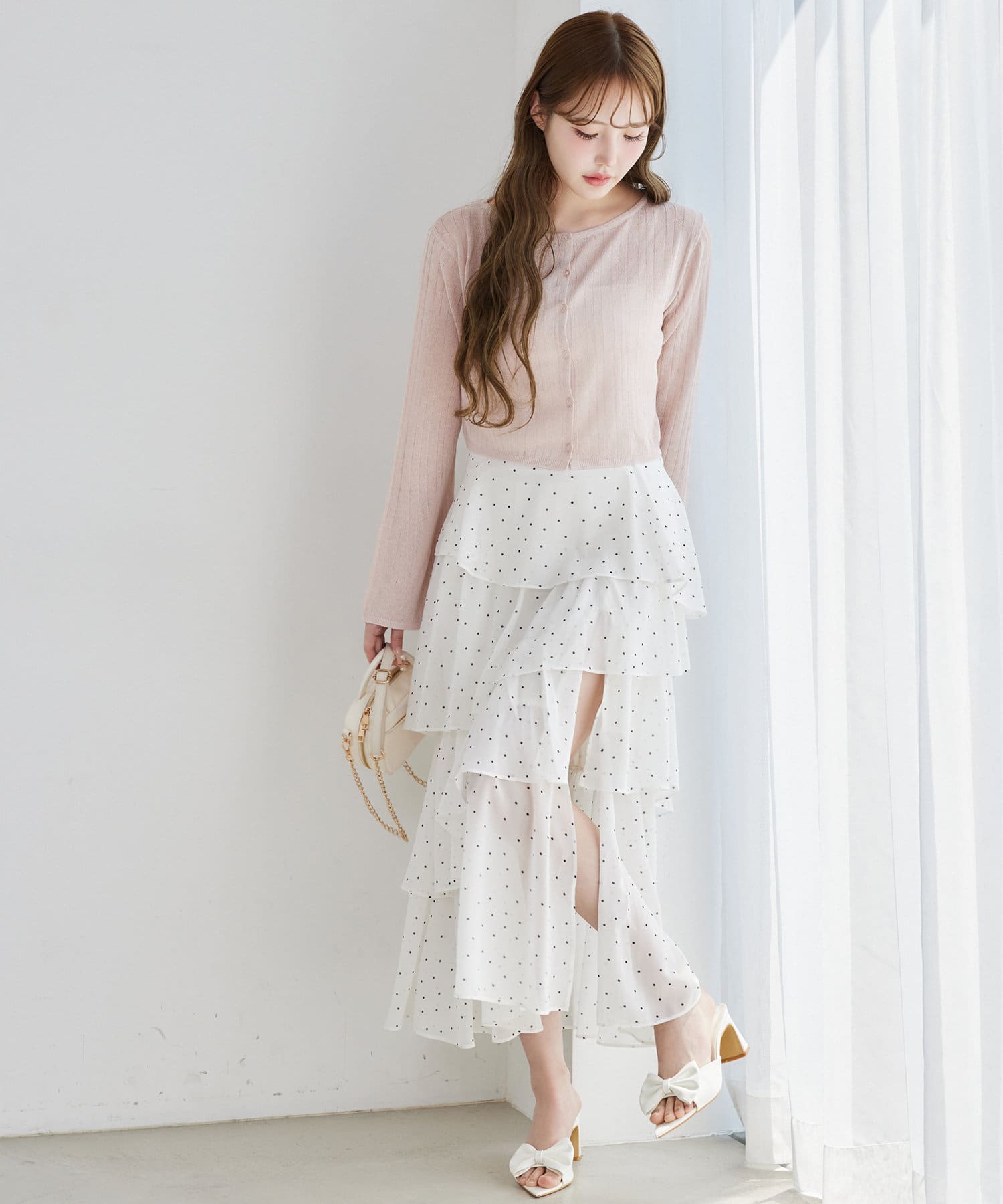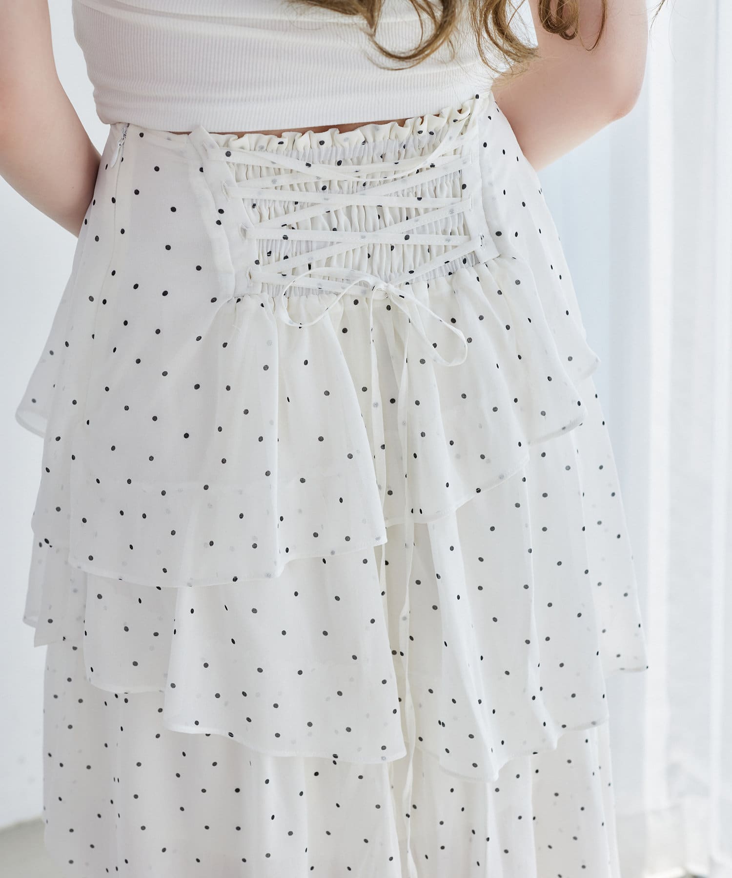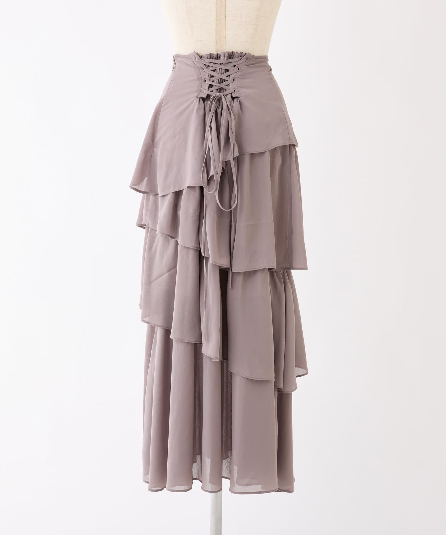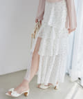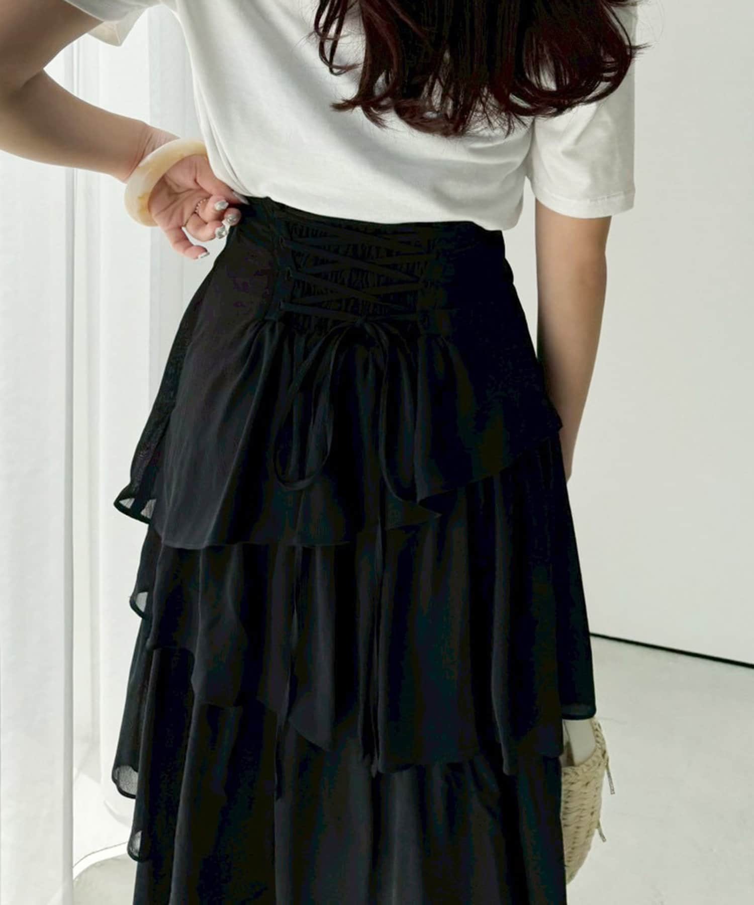 動きに合わせて揺れる、たっぷりと重ねたフリルが女性らしいティアードスカート