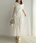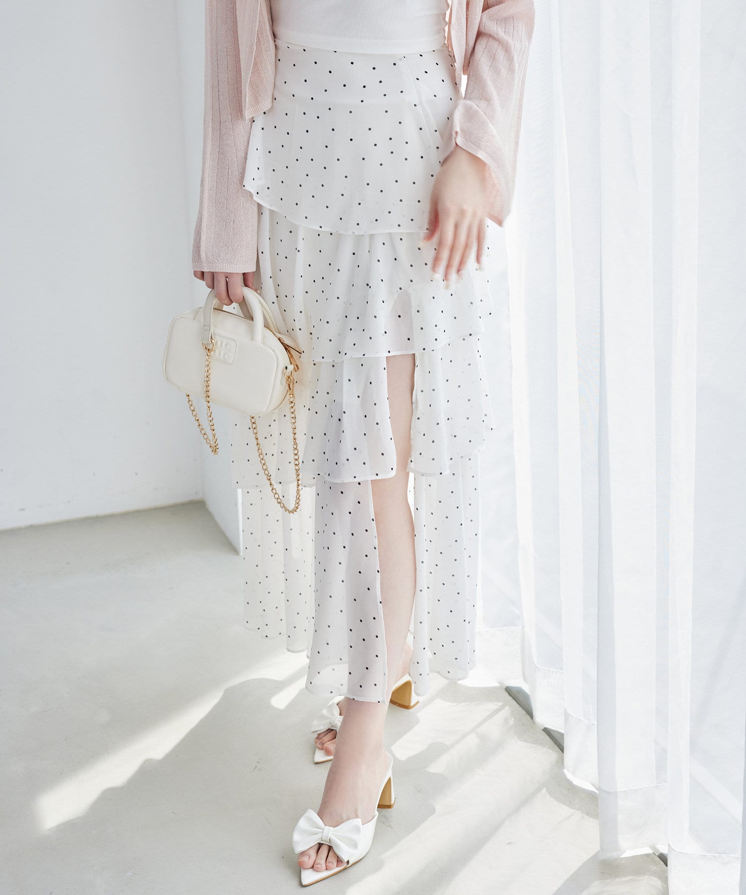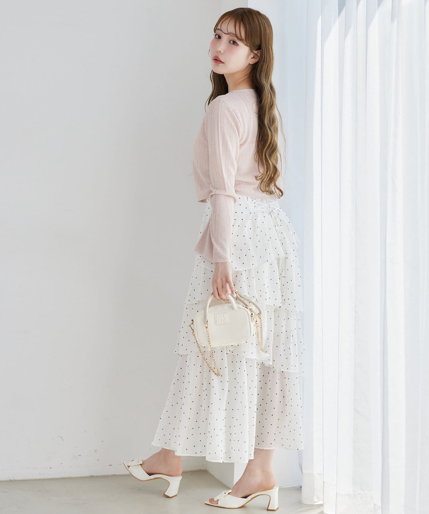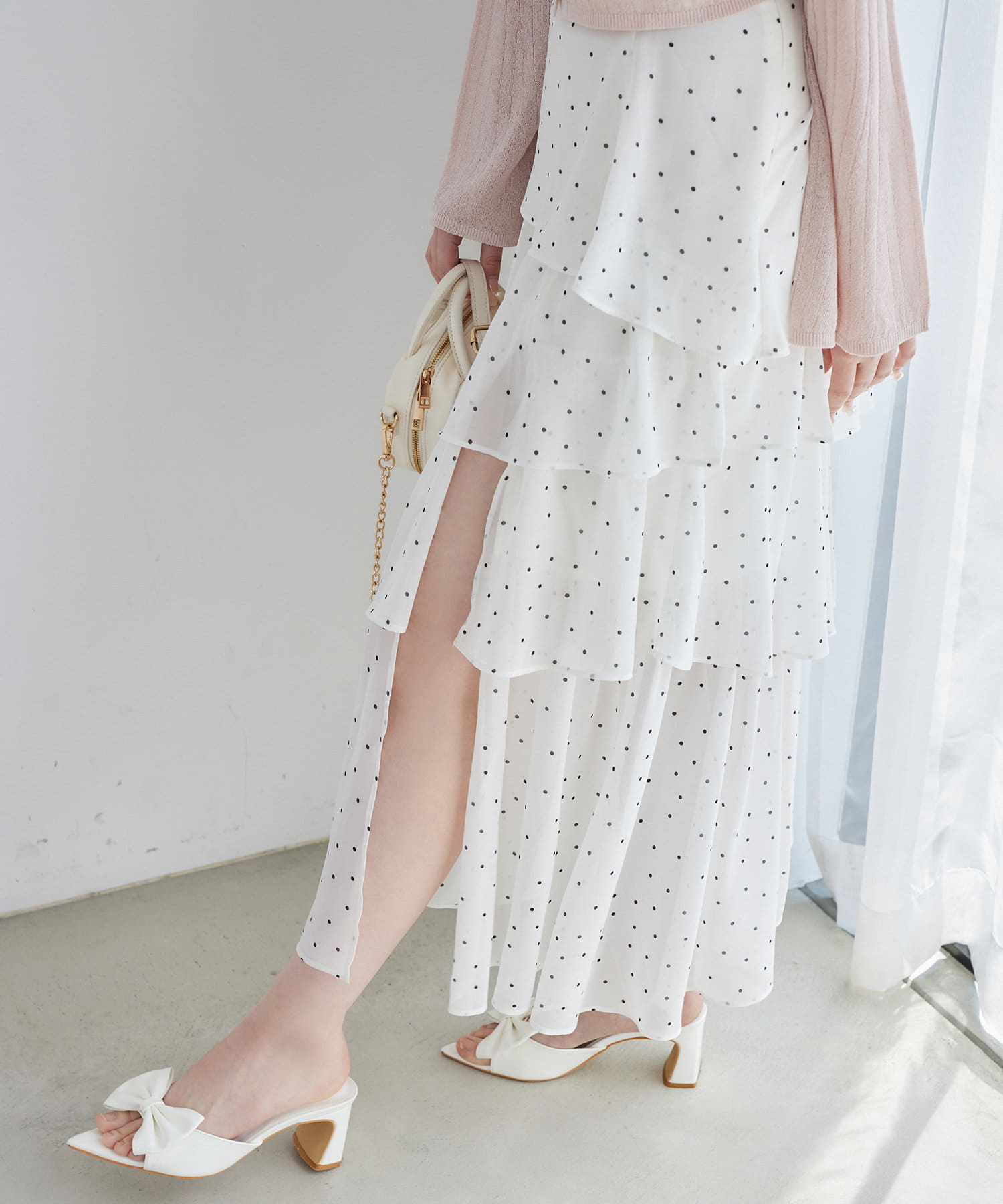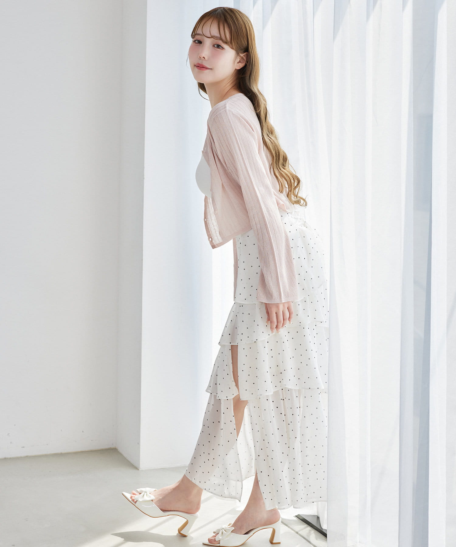 動きに合わせて揺れる、たっぷりと重ねたフリルが女性らしいティアードスカート