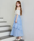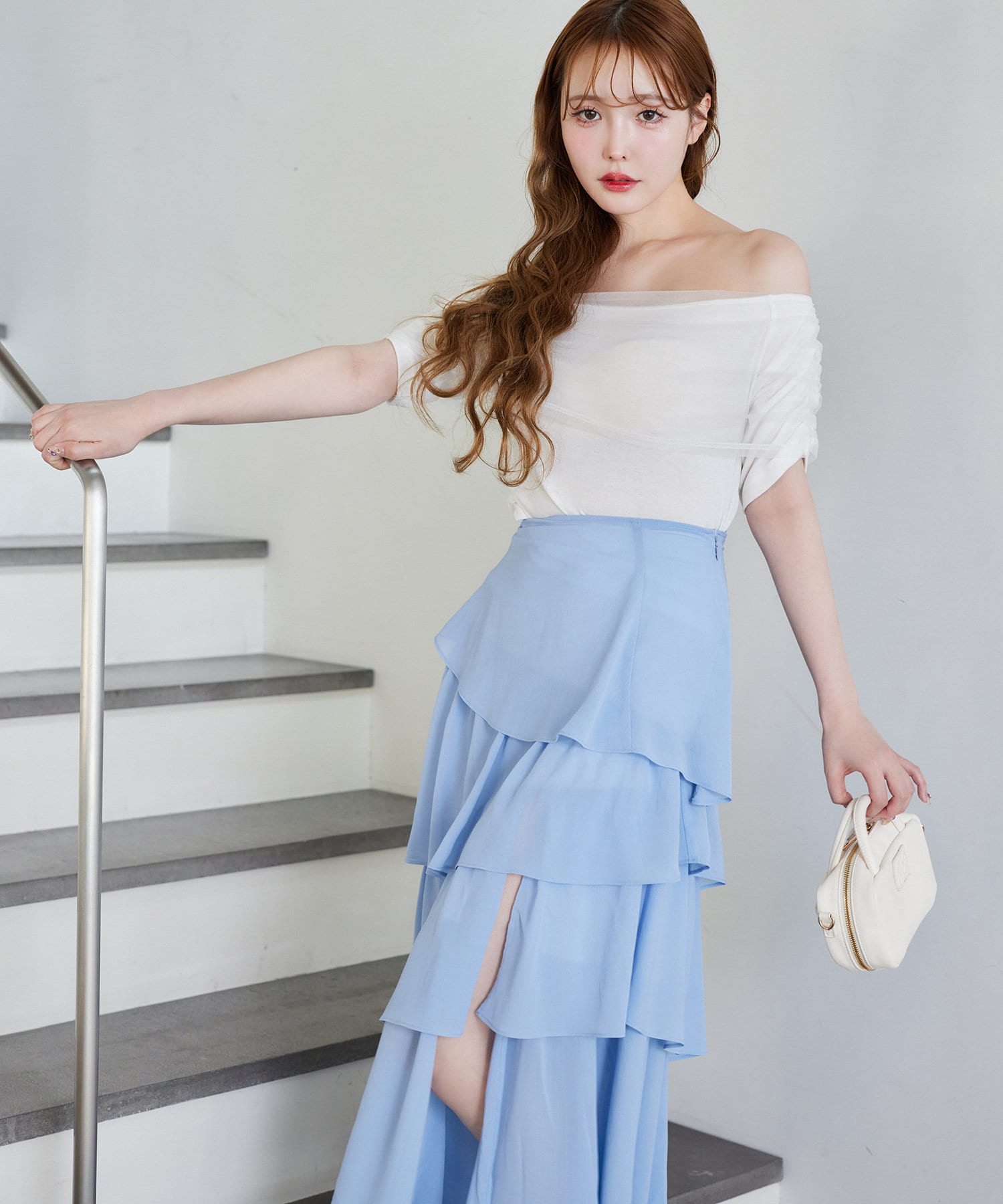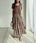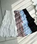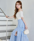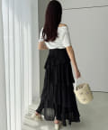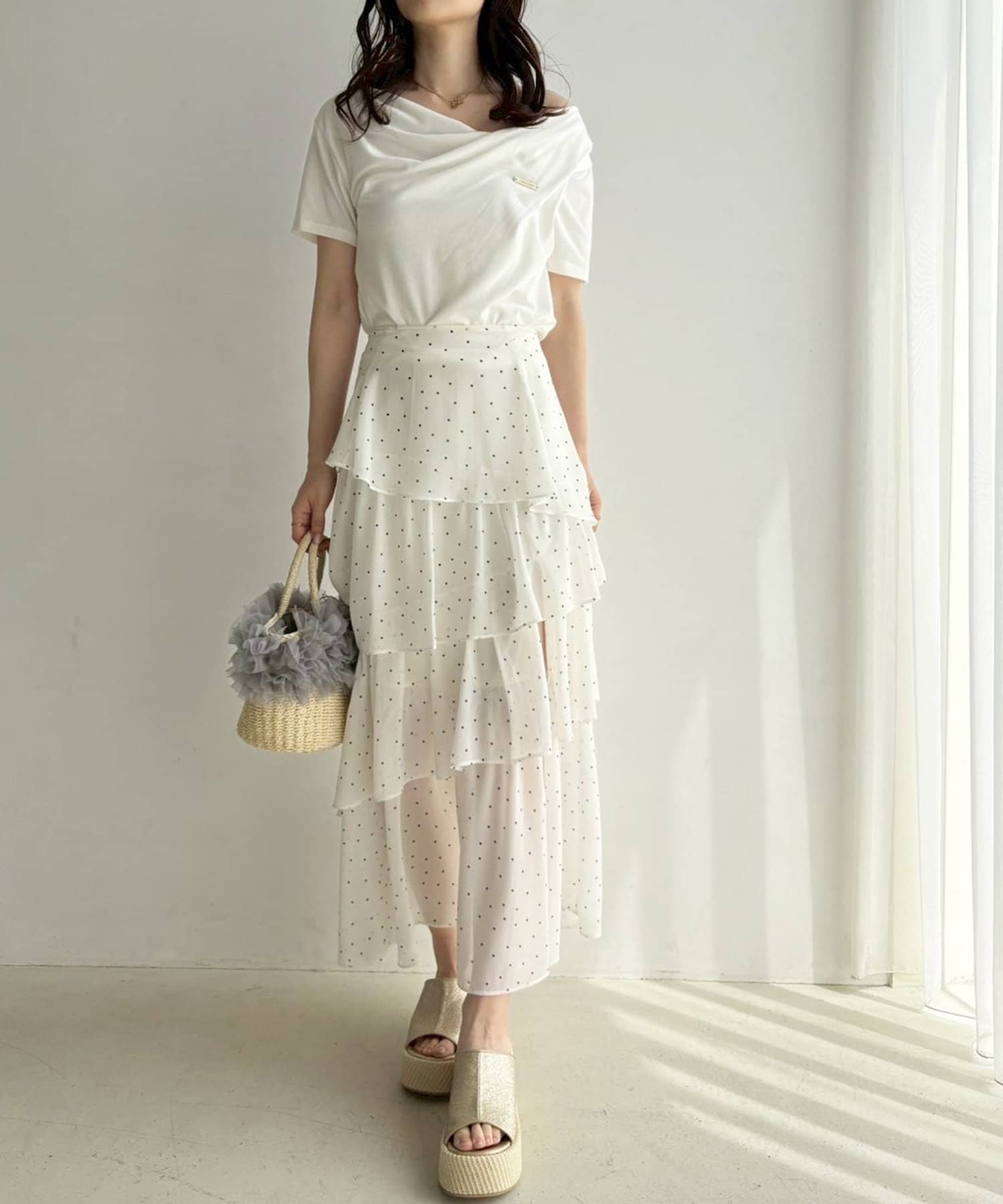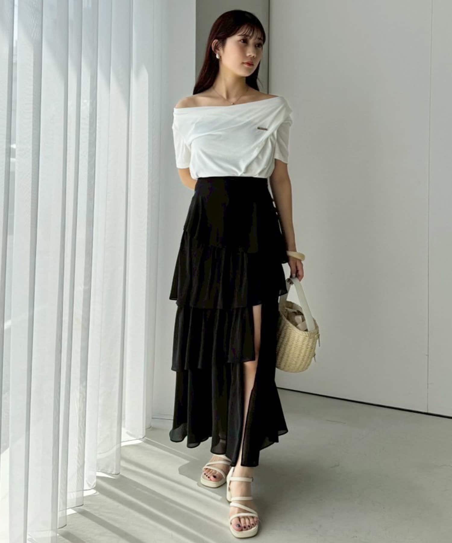 ティアードが目を惹くデザインなので、シンプルめのトップスでも