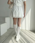 コンパクトなトップスと合わせて、すっきりバランスの取れたコーデに。