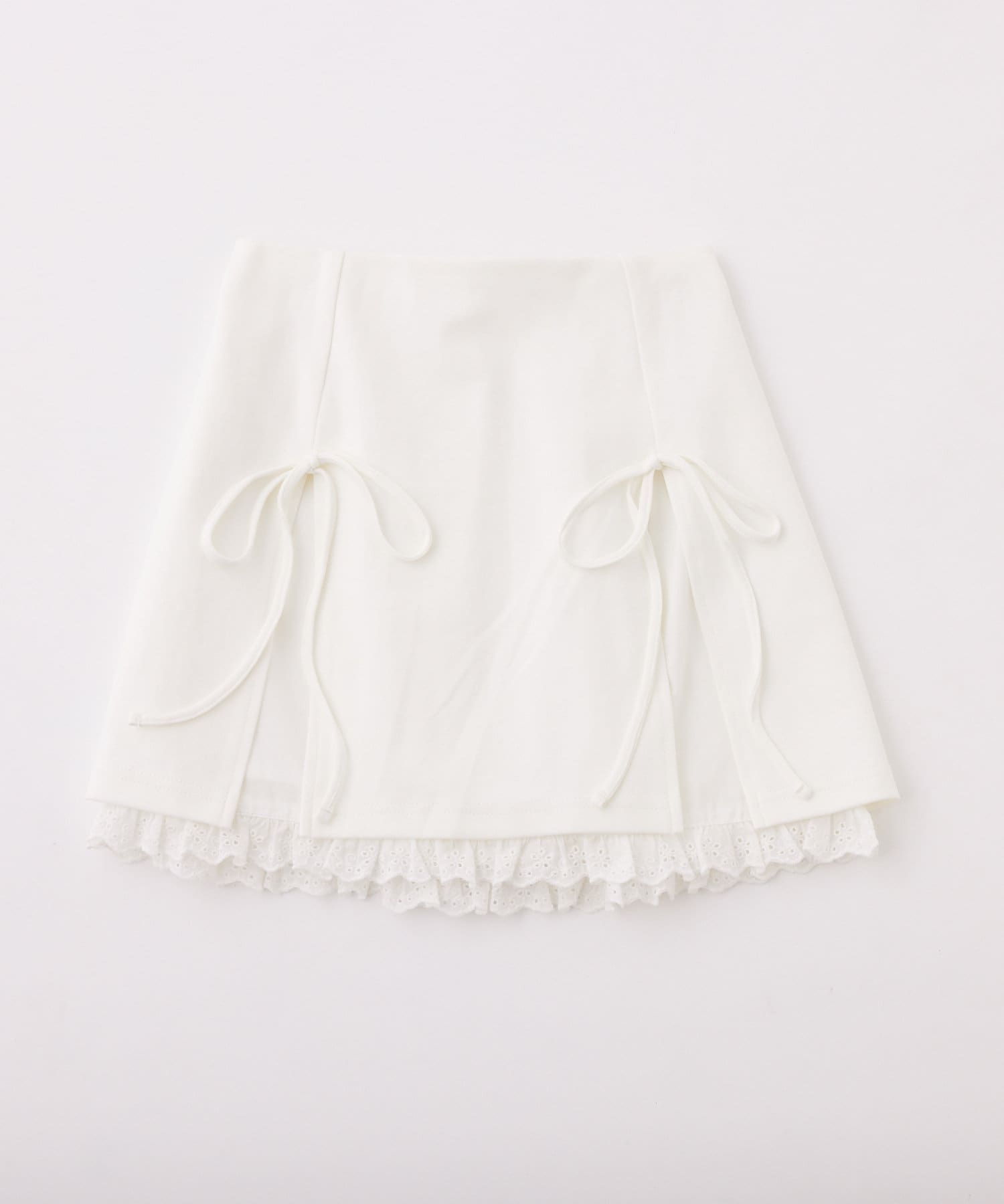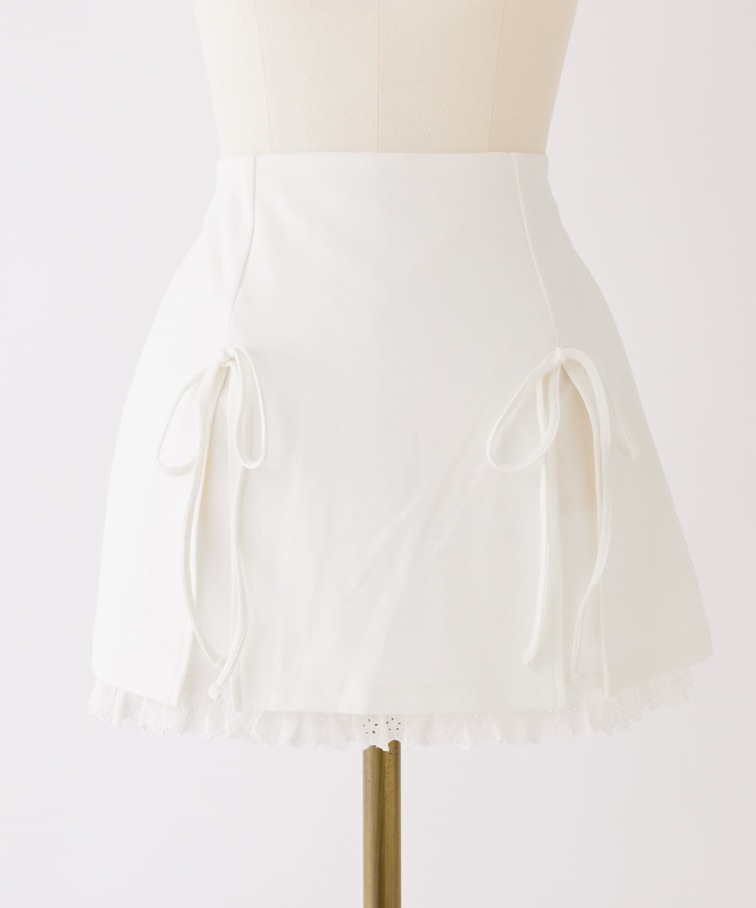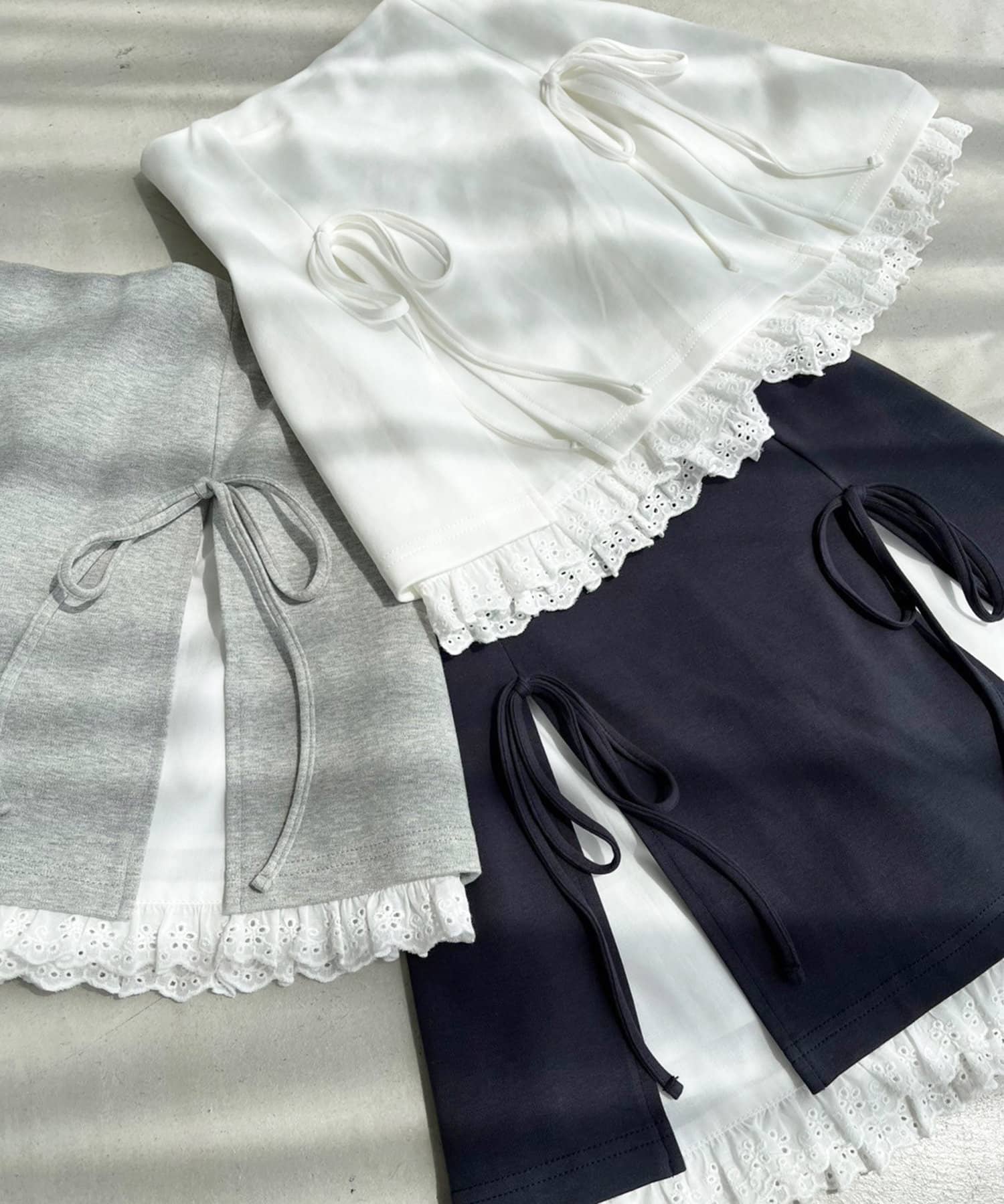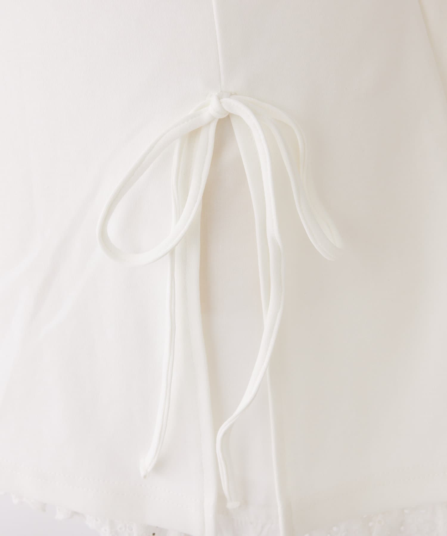 程よくフィットするシルエットに、裾のレースデザインとリボンがフェミニンなアクセントをプラス。