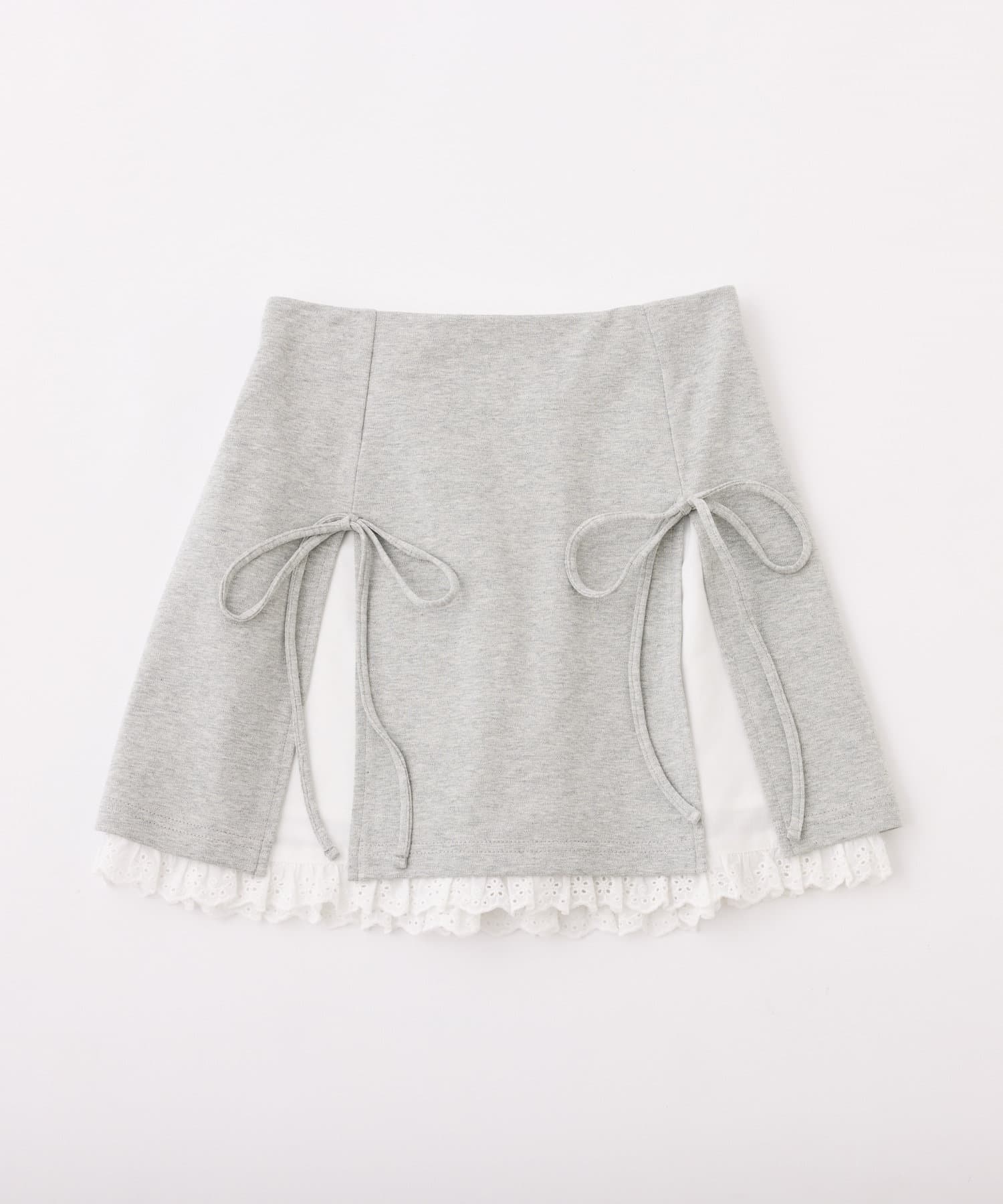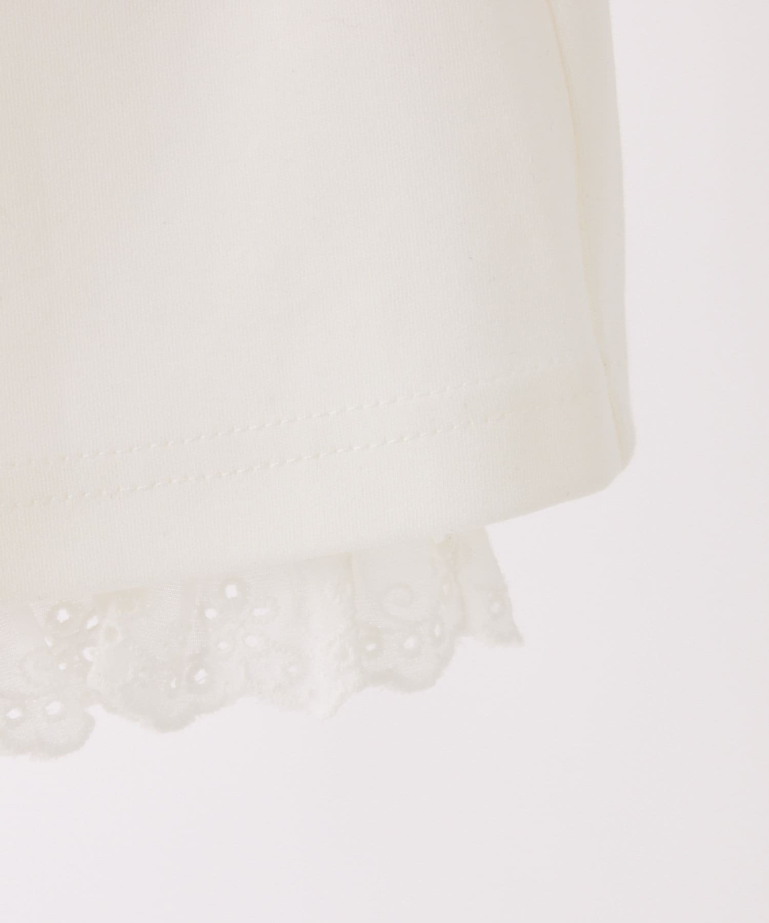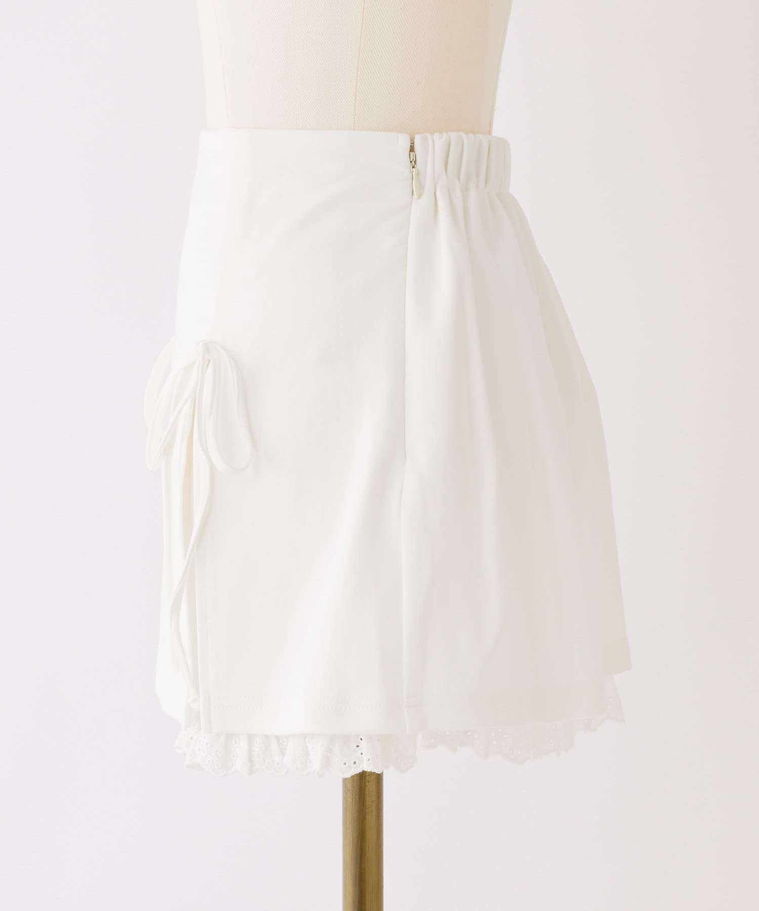 程よくフィットするシルエットに、裾のレースデザインとリボンがフェミニンなアクセントをプラス。