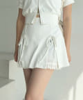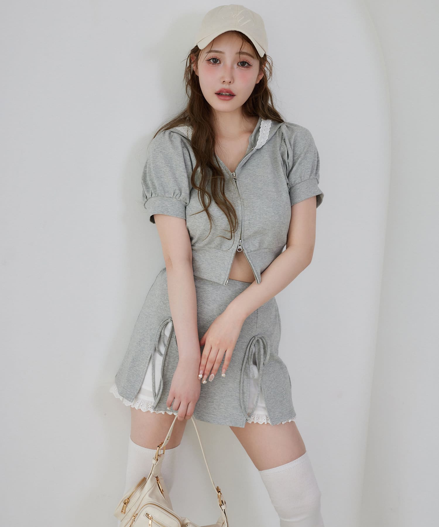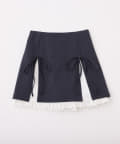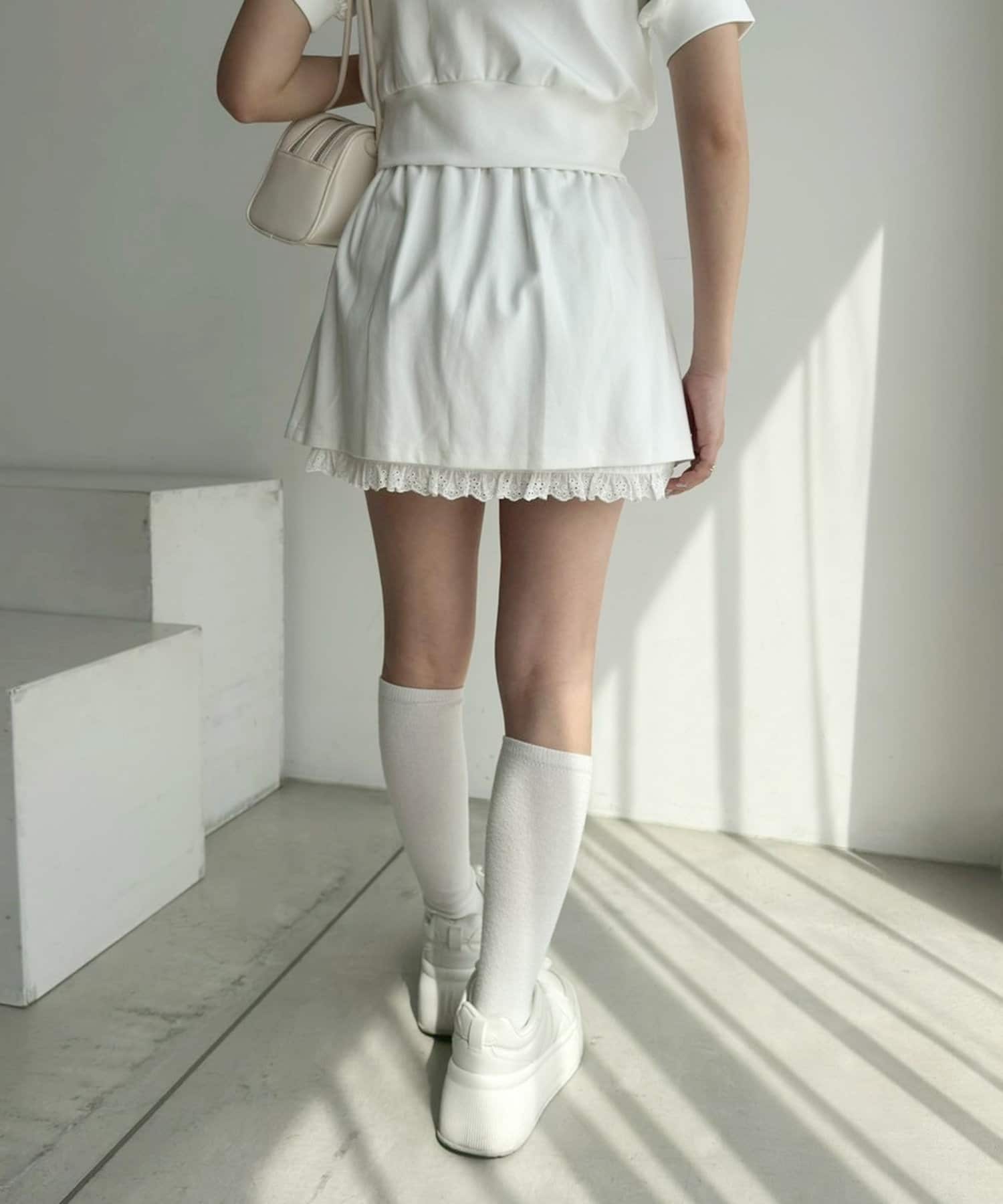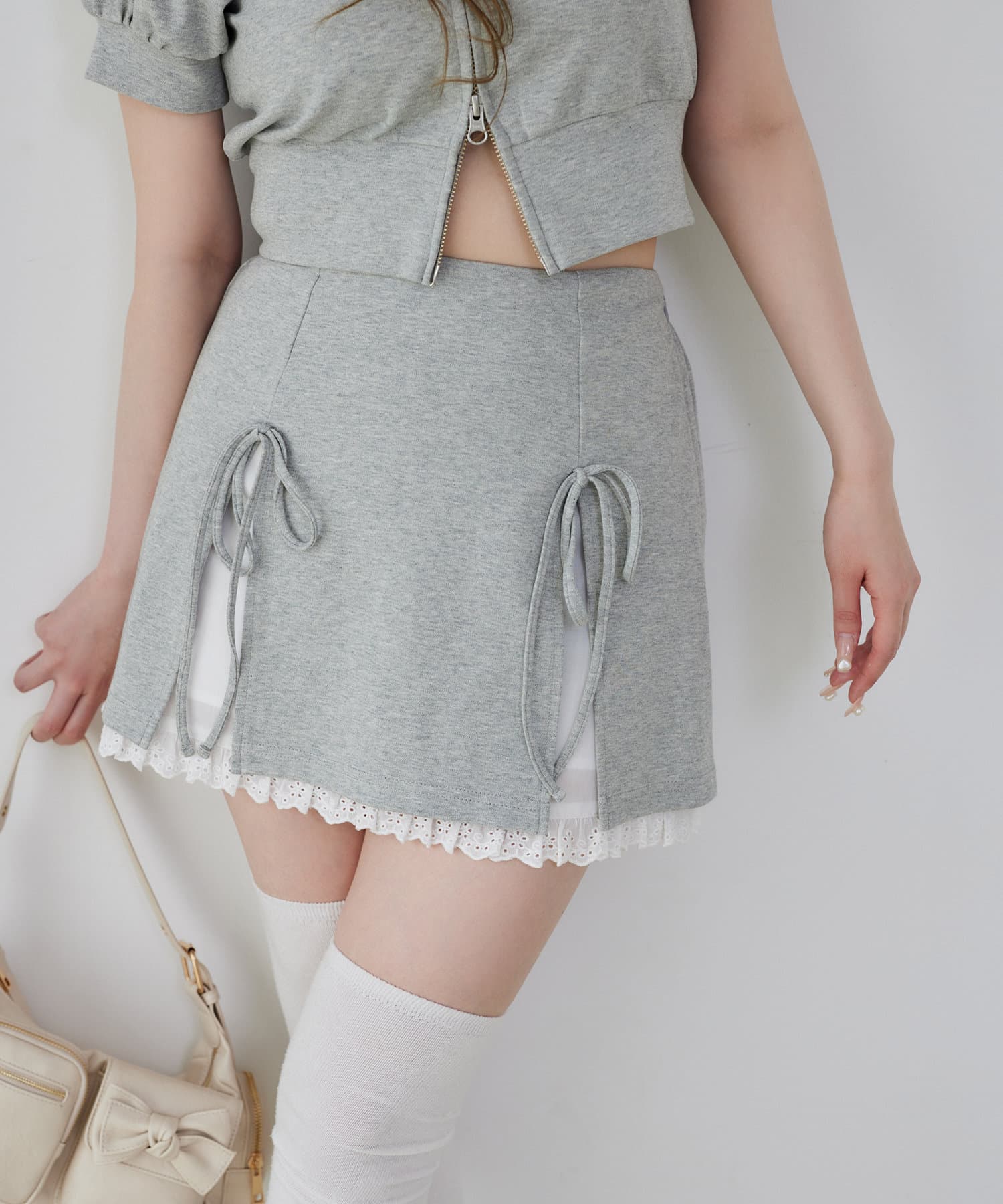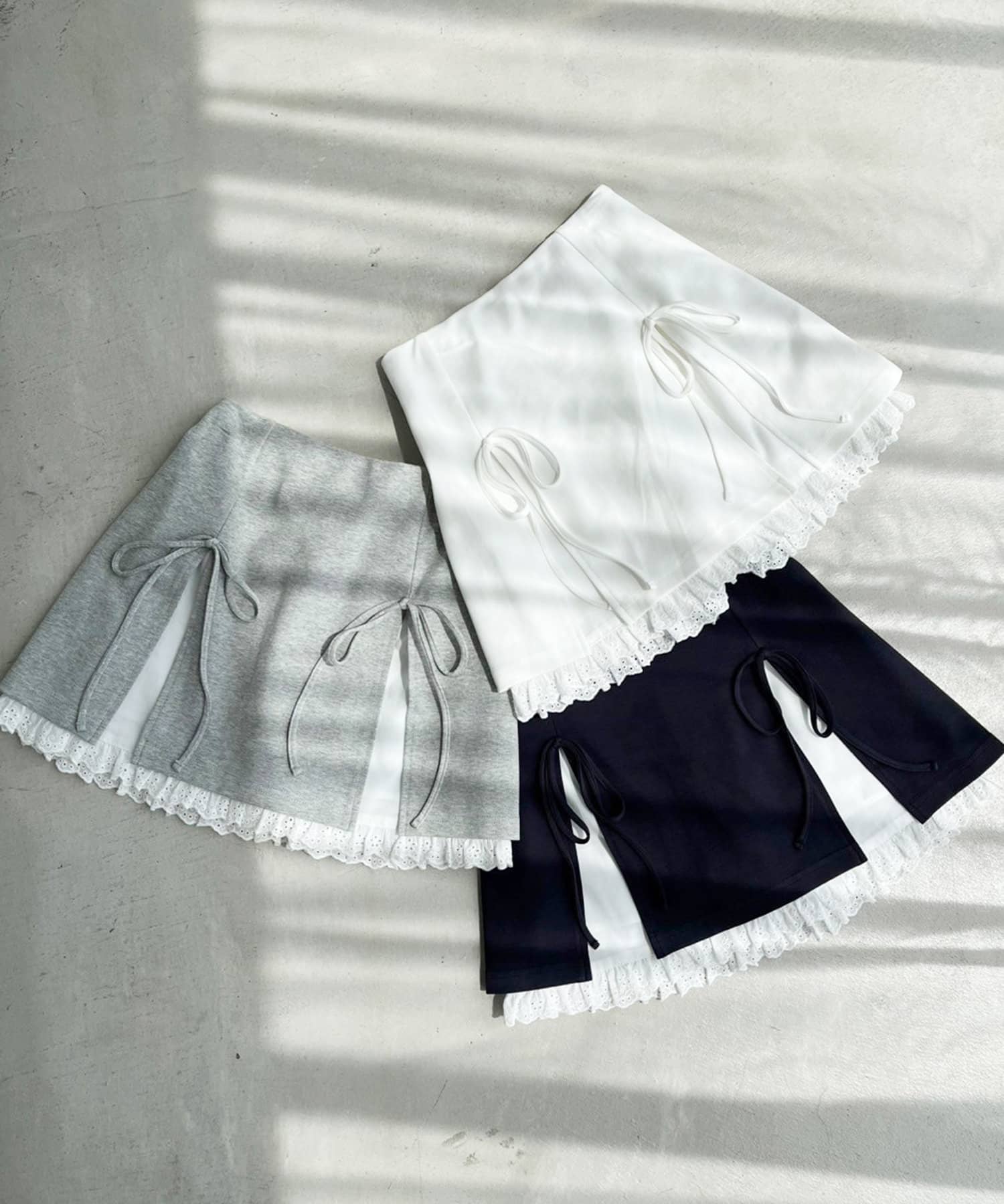 程よくフィットするシルエットに、裾のレースデザインとリボンがフェミニンなアクセントをプラス。