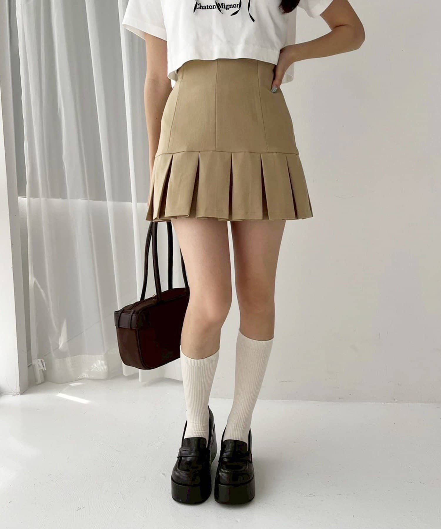 フレンチガーリーにも韓国風コーデにもオススメのプリーツミニスカート