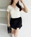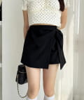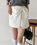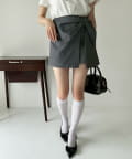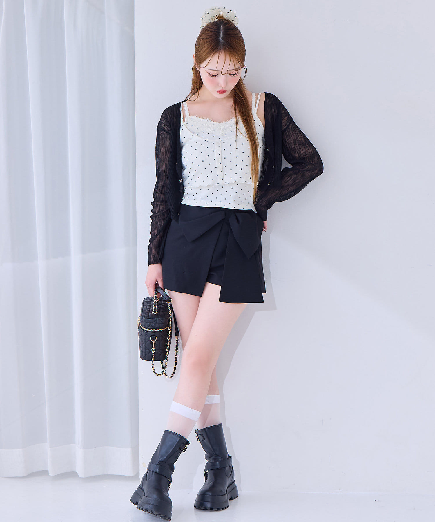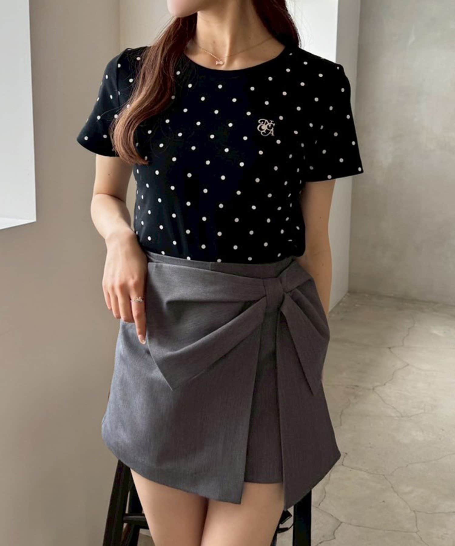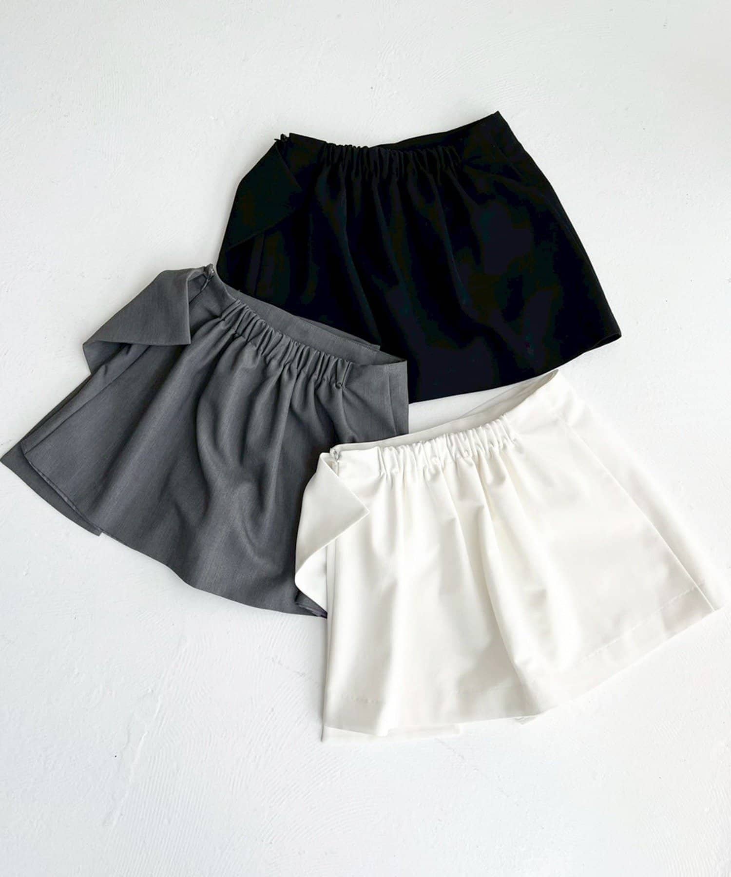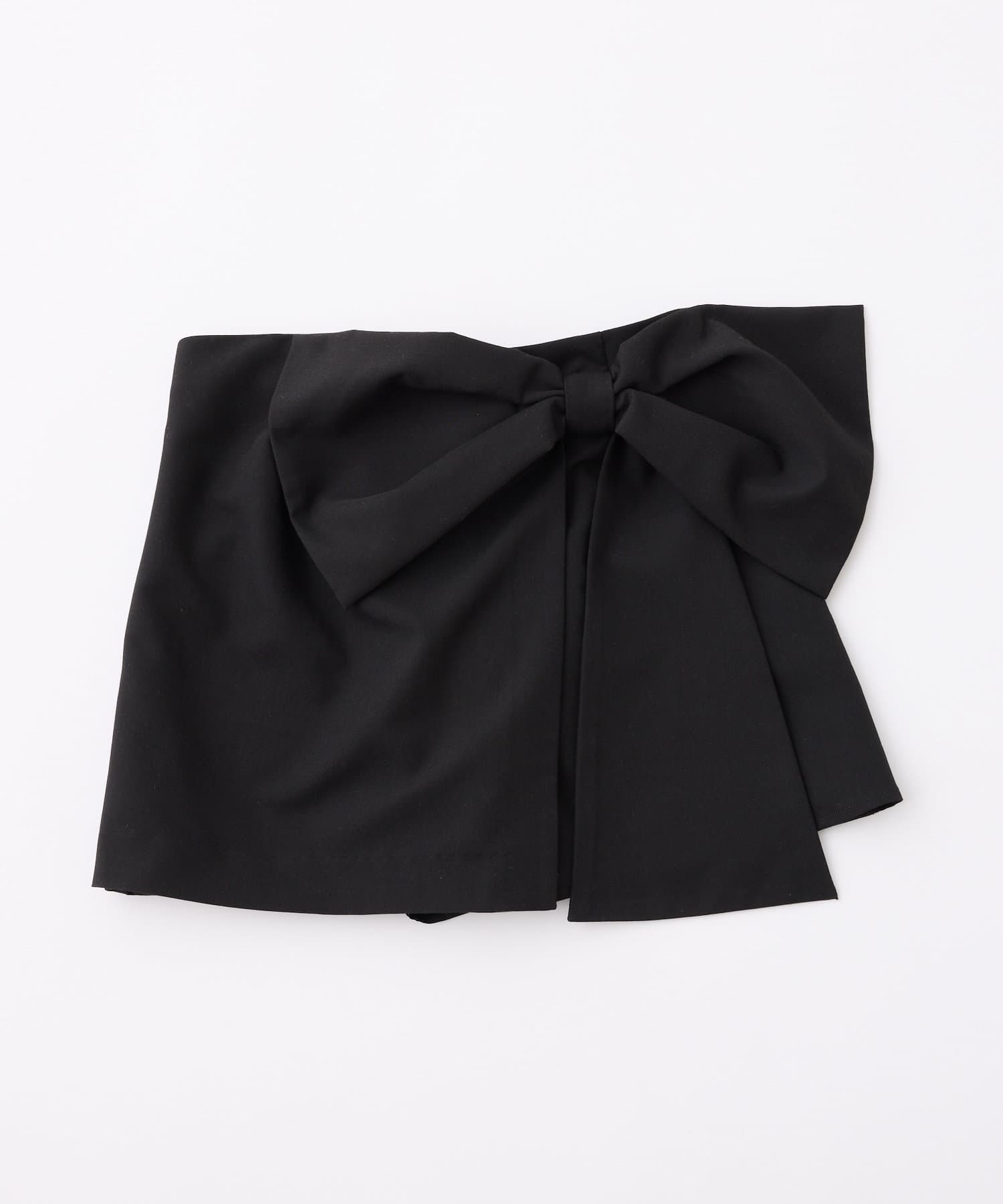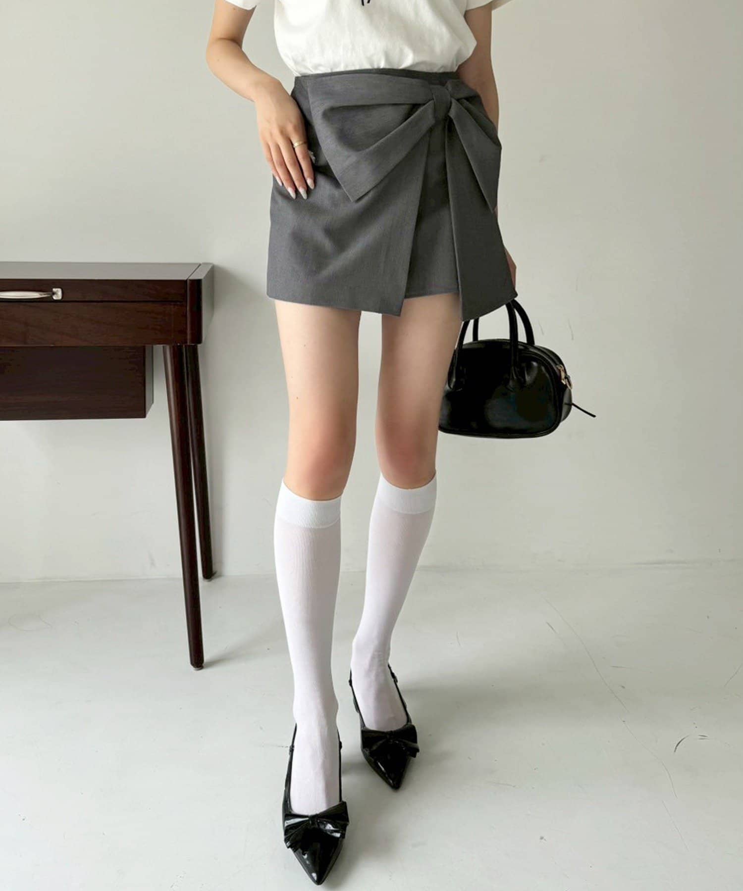 フロントに施した大きめリボンが目を惹く、フェミニンムードたっぷりのミニスカート。