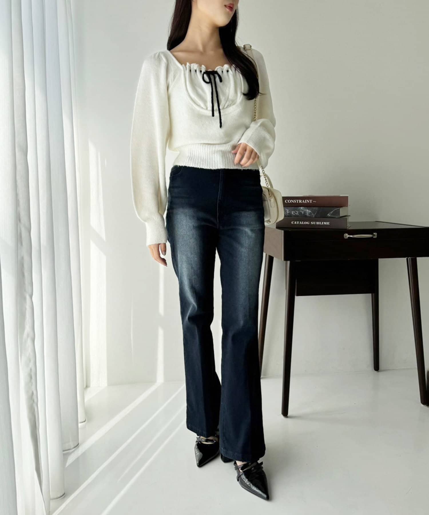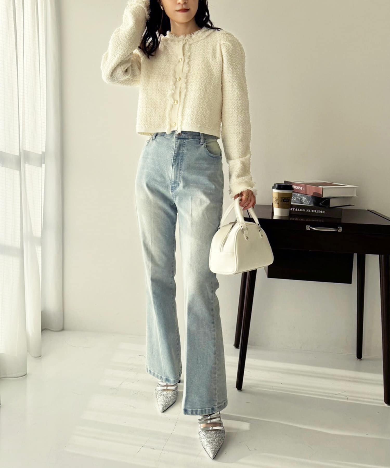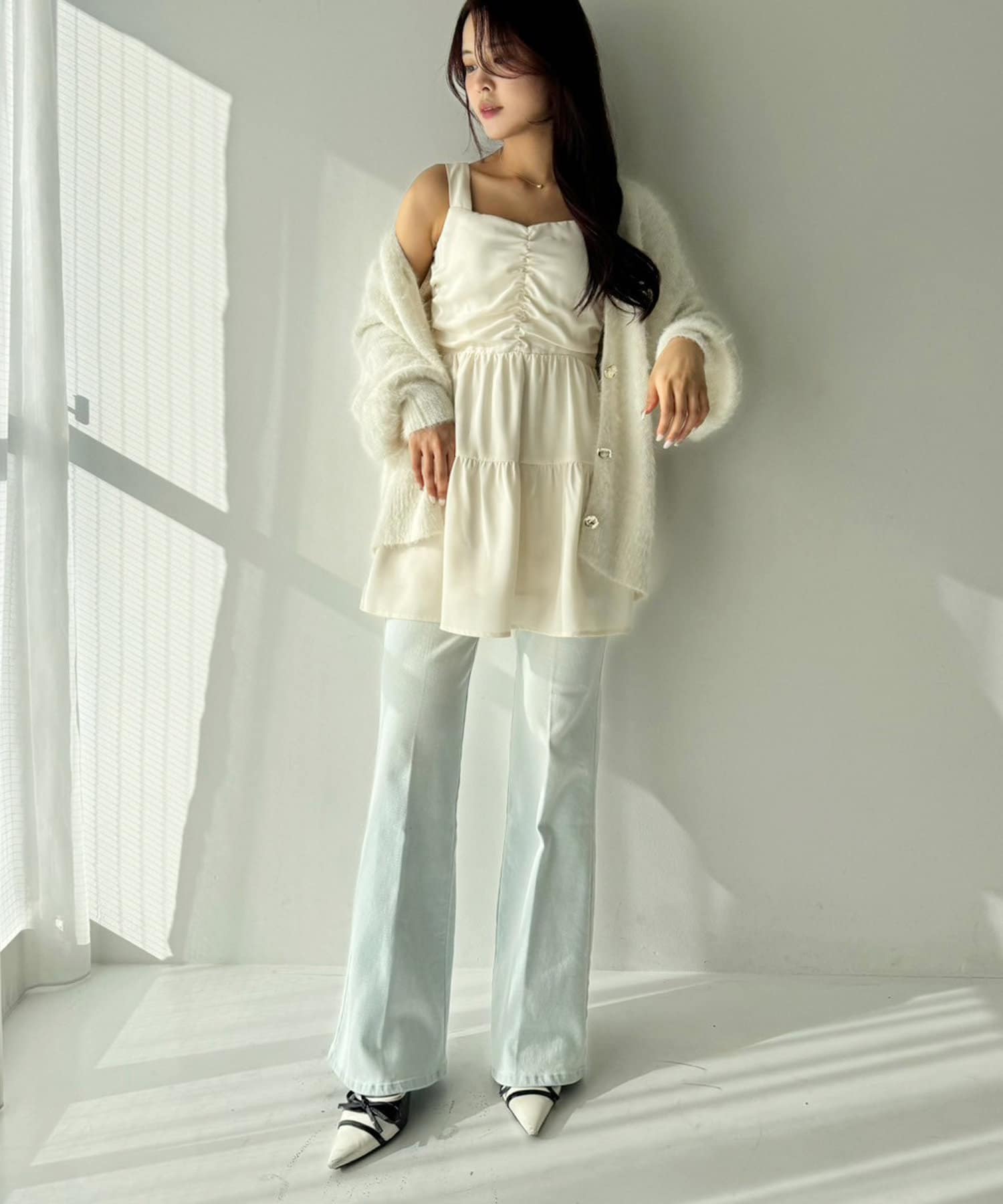 カジュアルになりやすいデニムは少し甘めなトップスとの合わせが今年らしい着こなしでおすすめ。