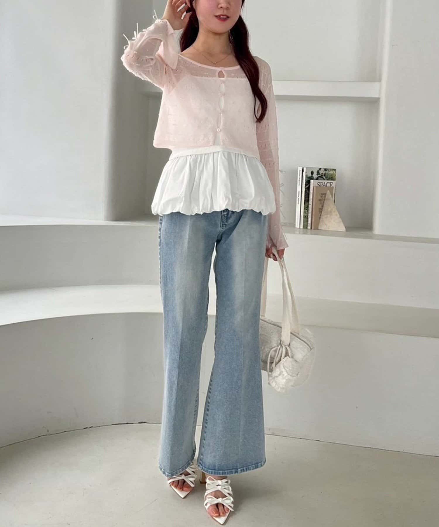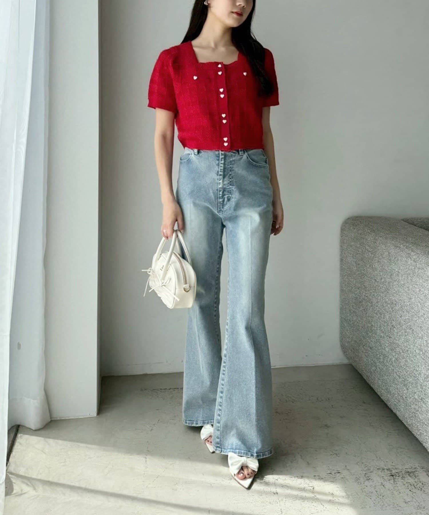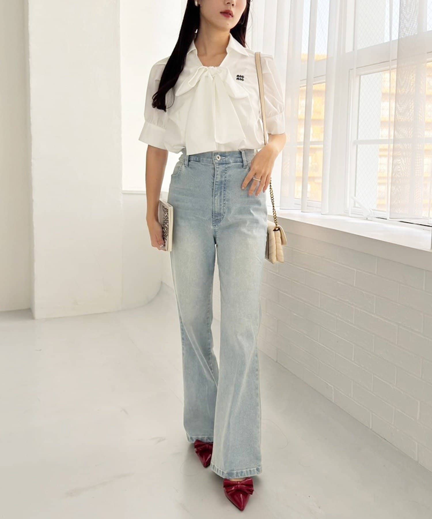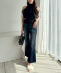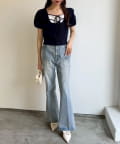 甘さの中にカジュアルなデニムを入れることによってフレンチカジュアルなコーデになります。