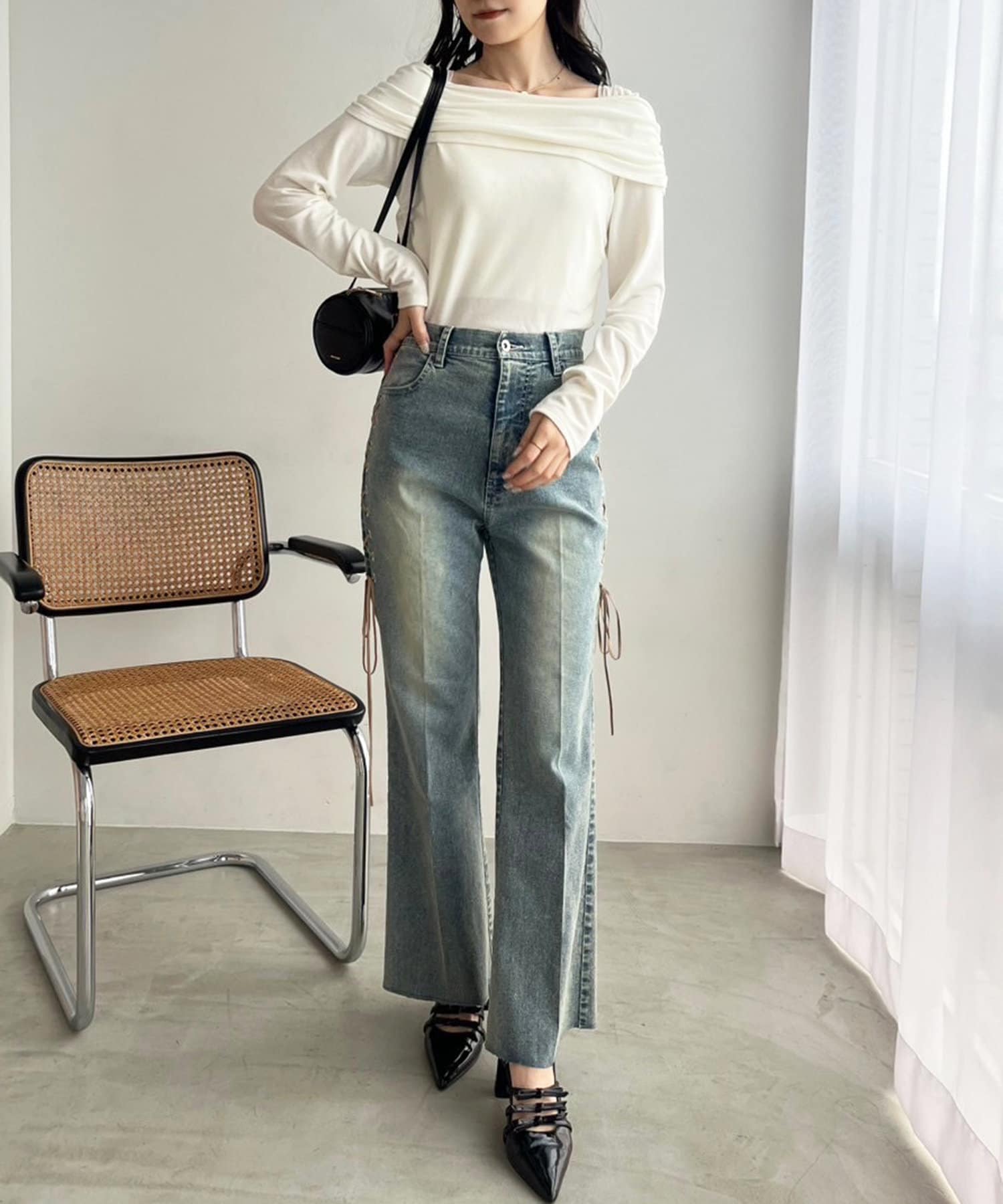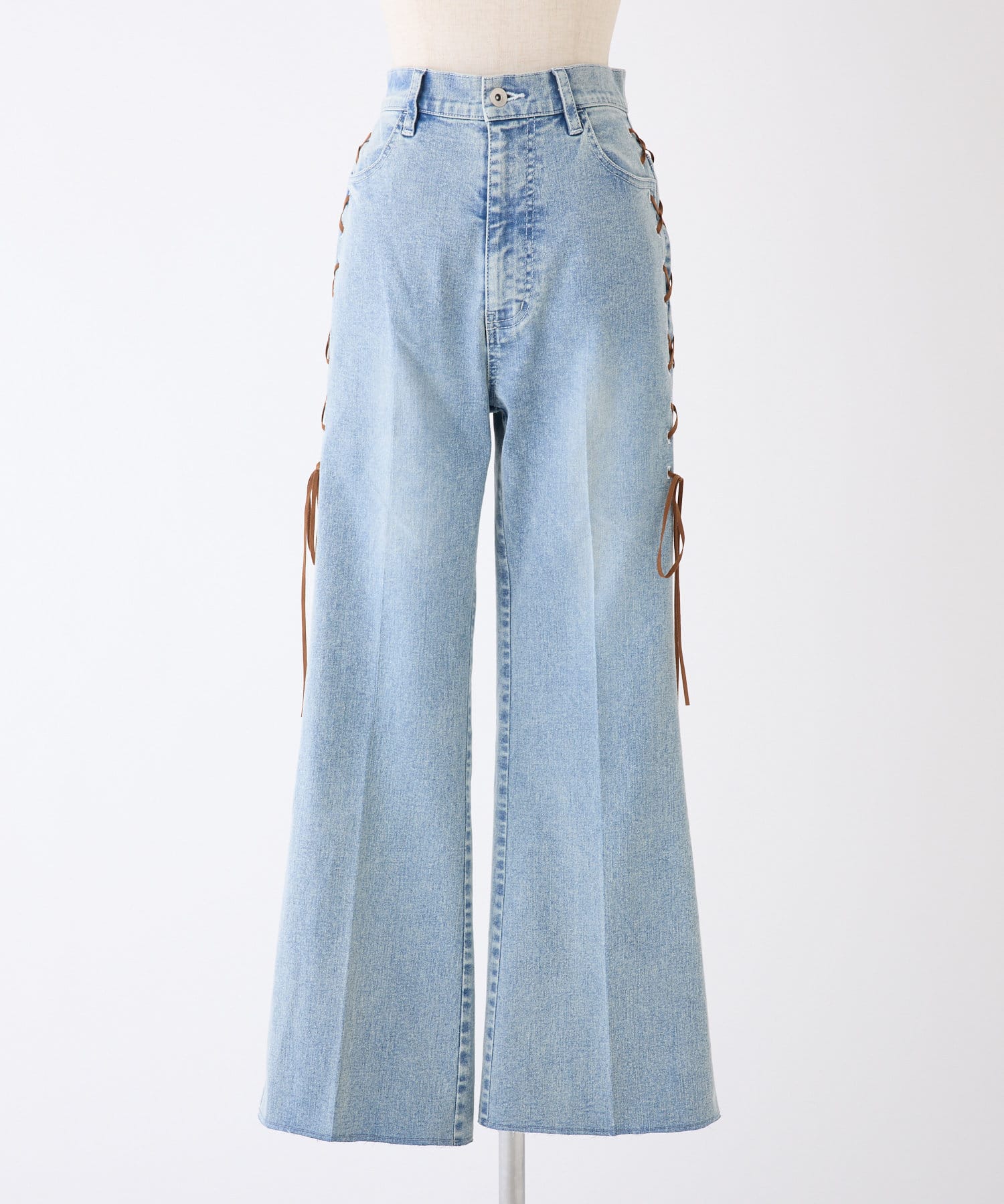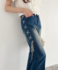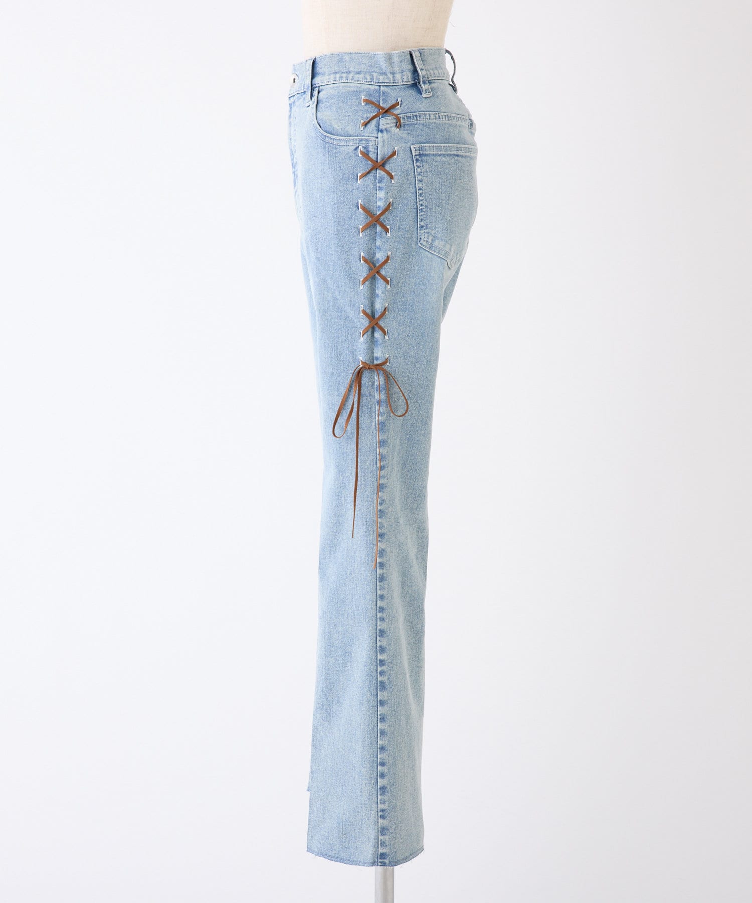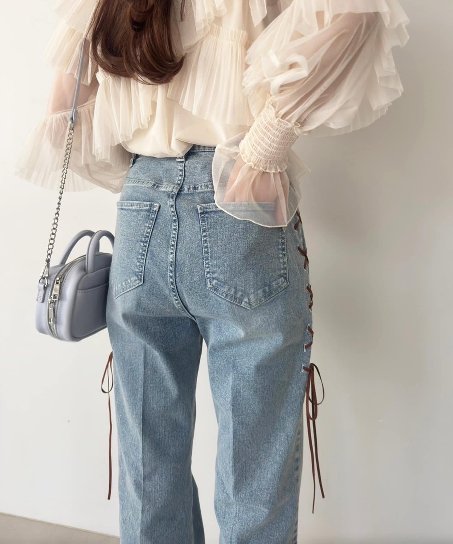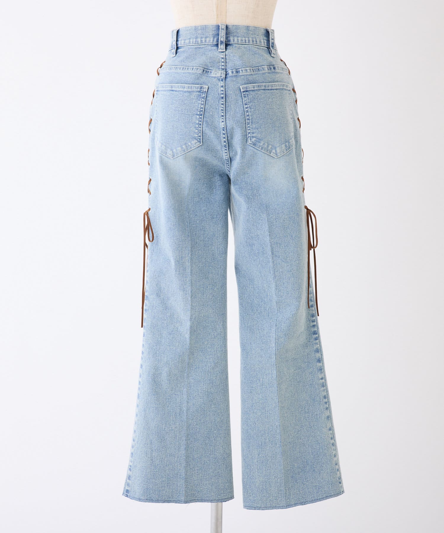 サイドのレースアップがおしゃれ見えするデニムパンツ