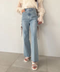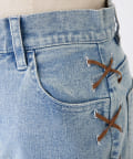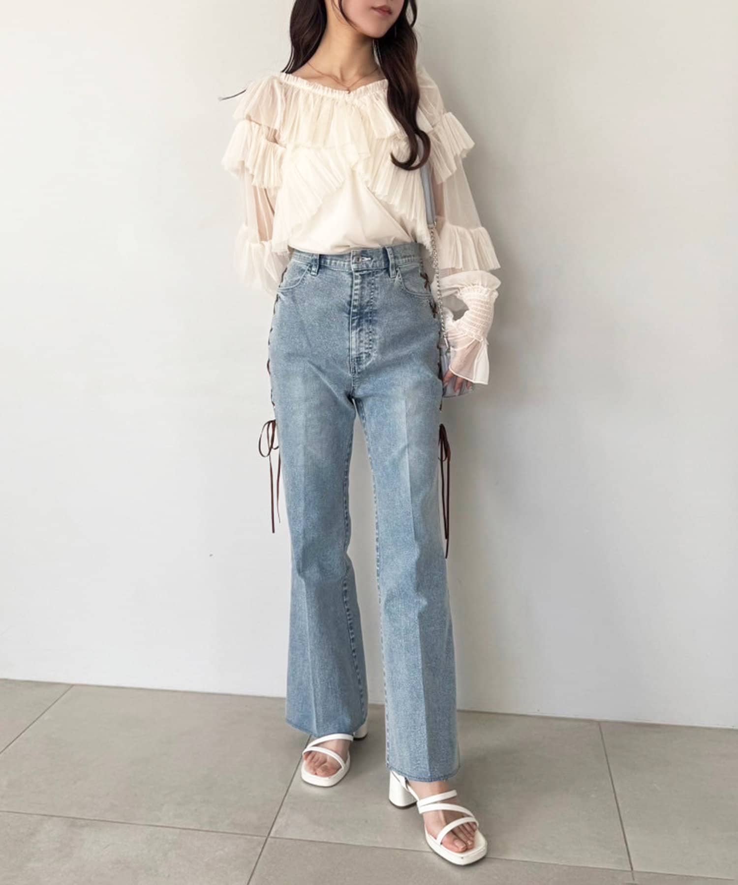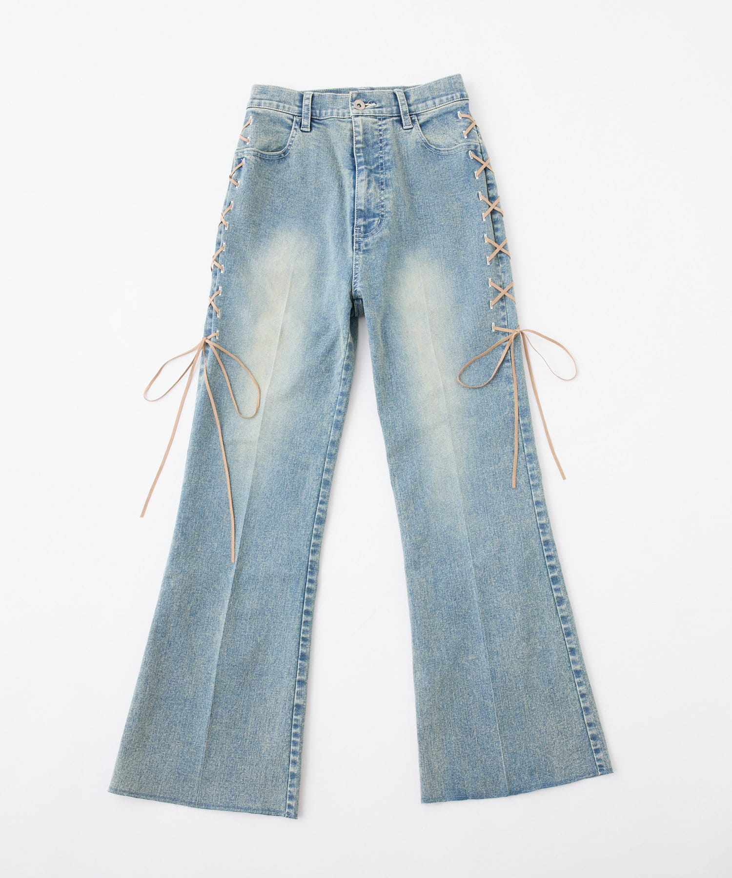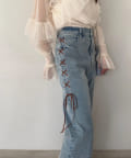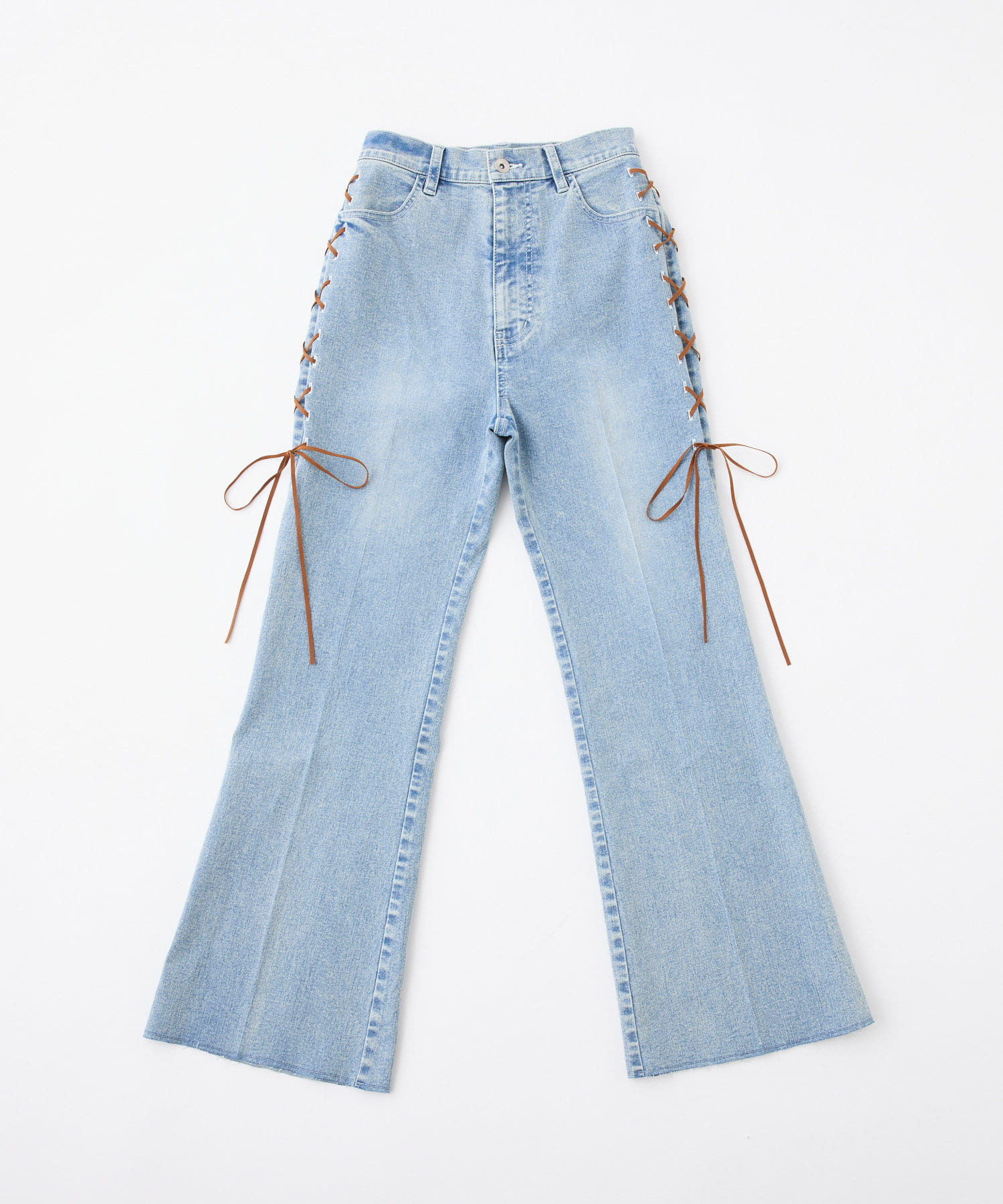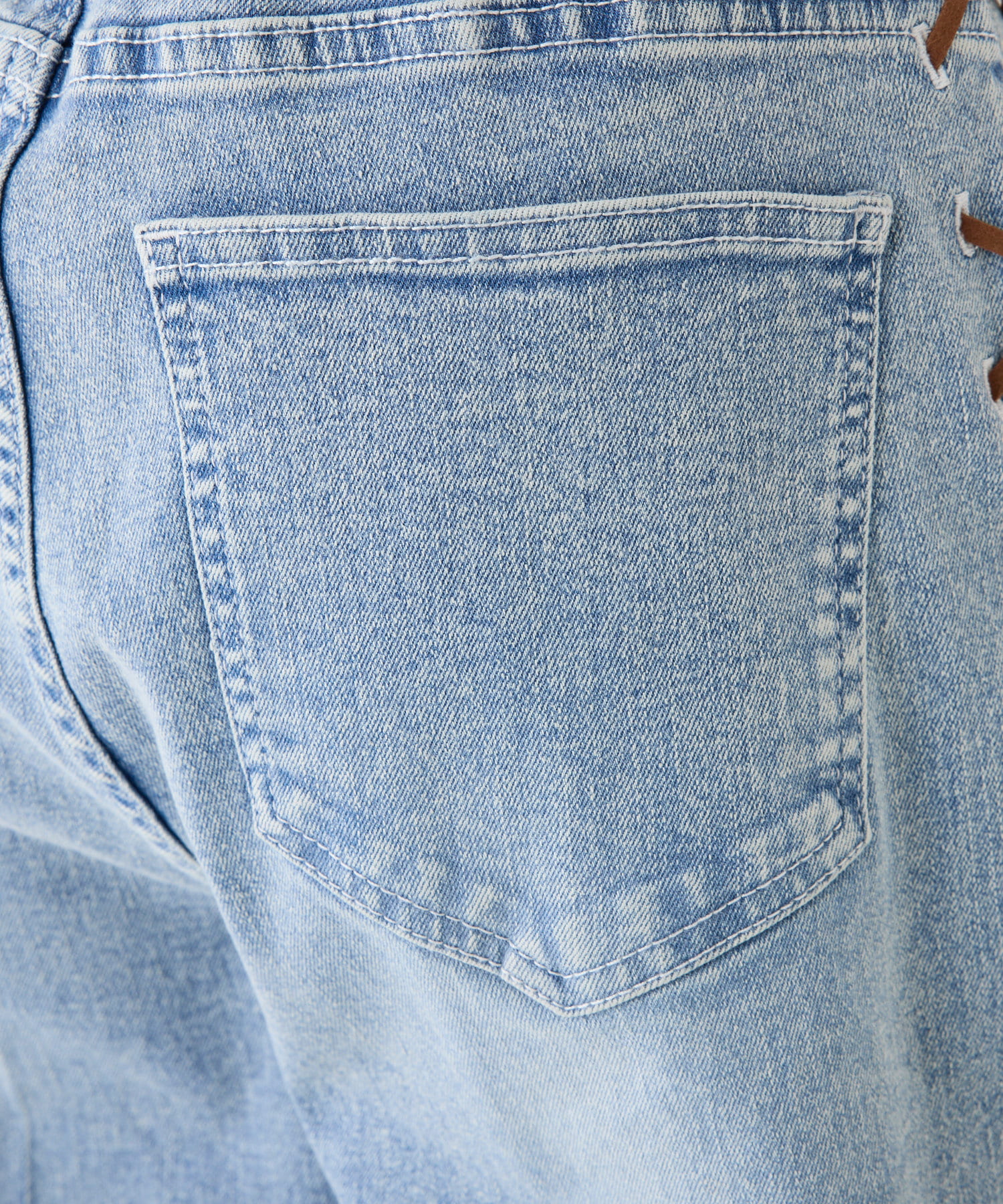 サイドのレースアップがおしゃれ見えするデニムパンツ