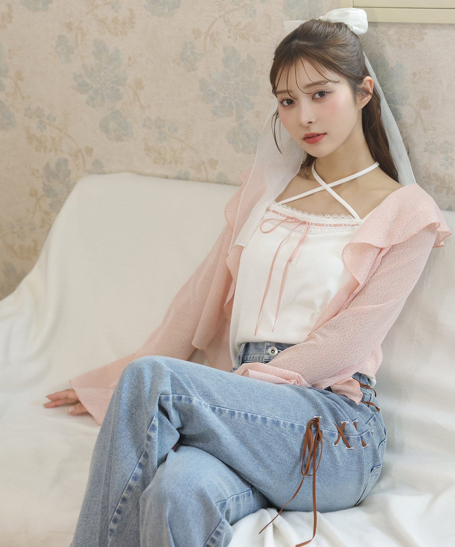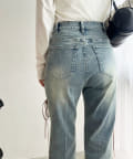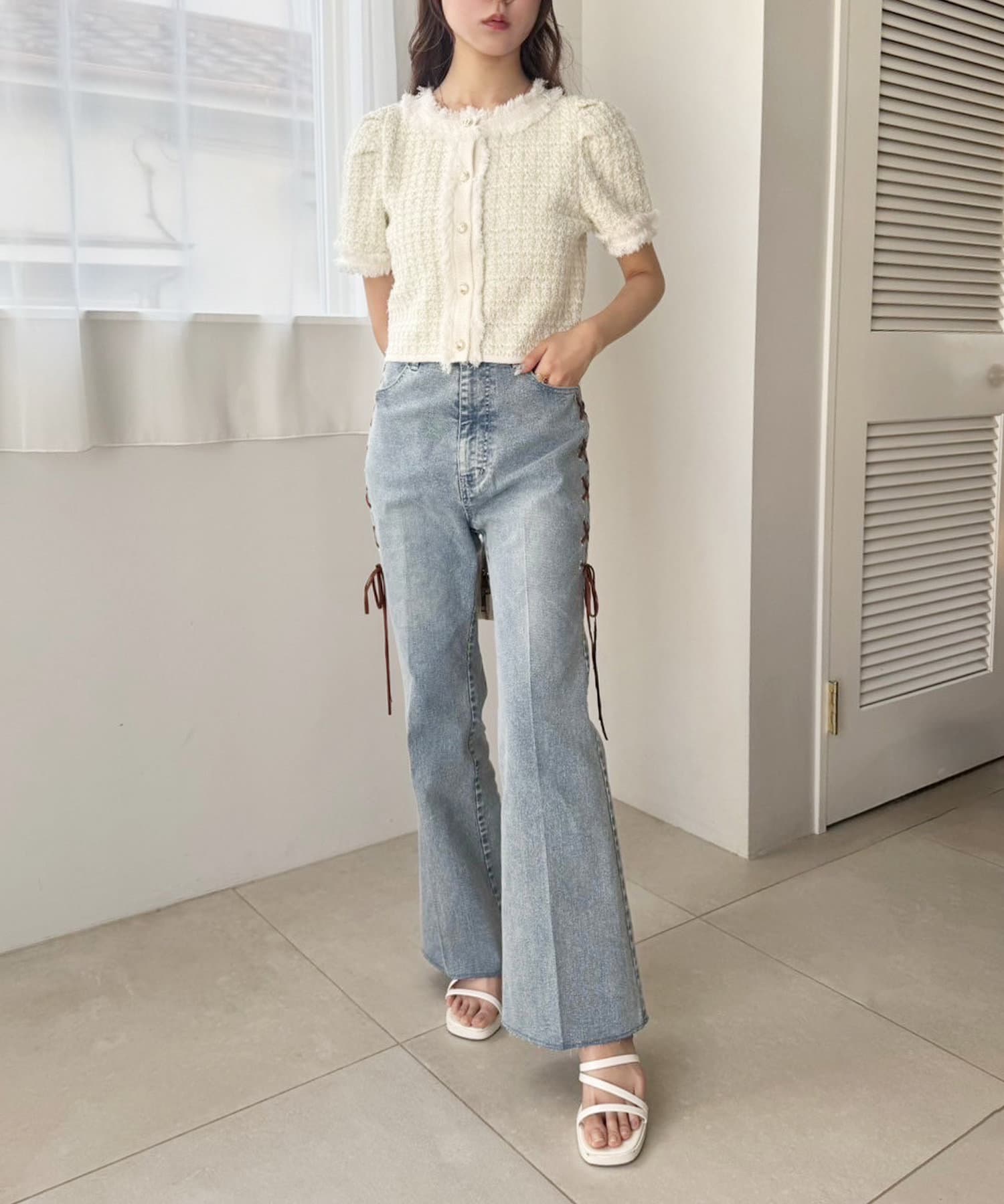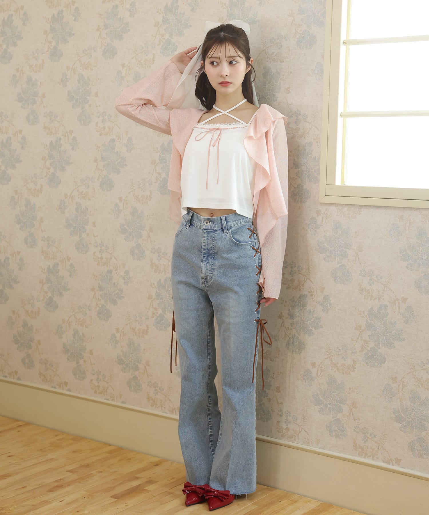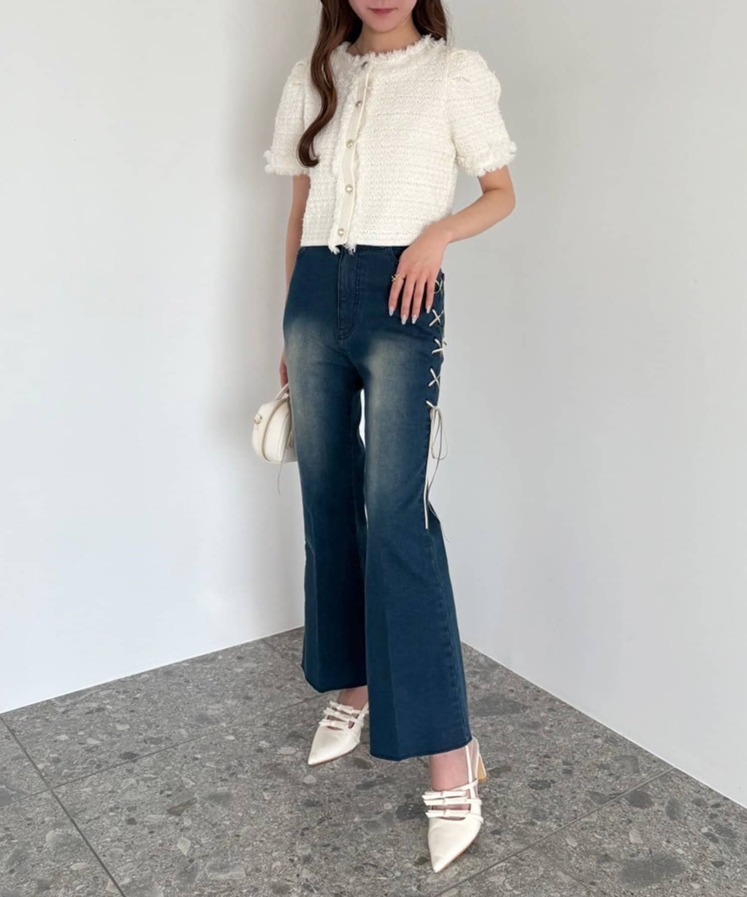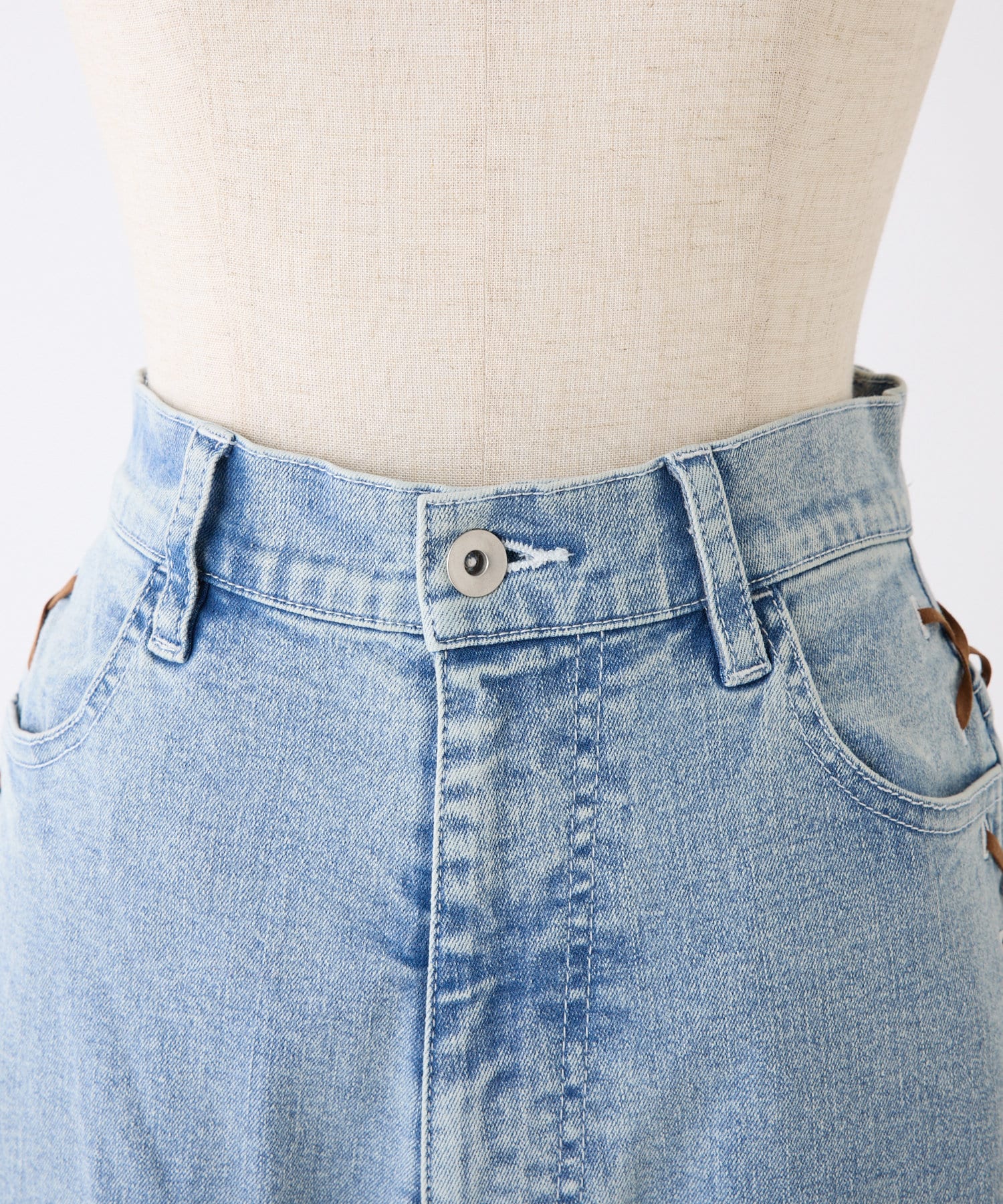 サイドのレースアップがおしゃれ見えするデニムパンツ