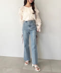 カジュアルになりやすいデニムは少し甘めなトップスとの合わせが今年らしい着こなしでおすすめ。