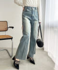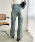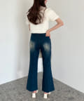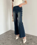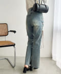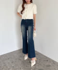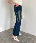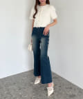 身体のラインが程よく出るので、女性らしい着こなしができるデニムパンツです。