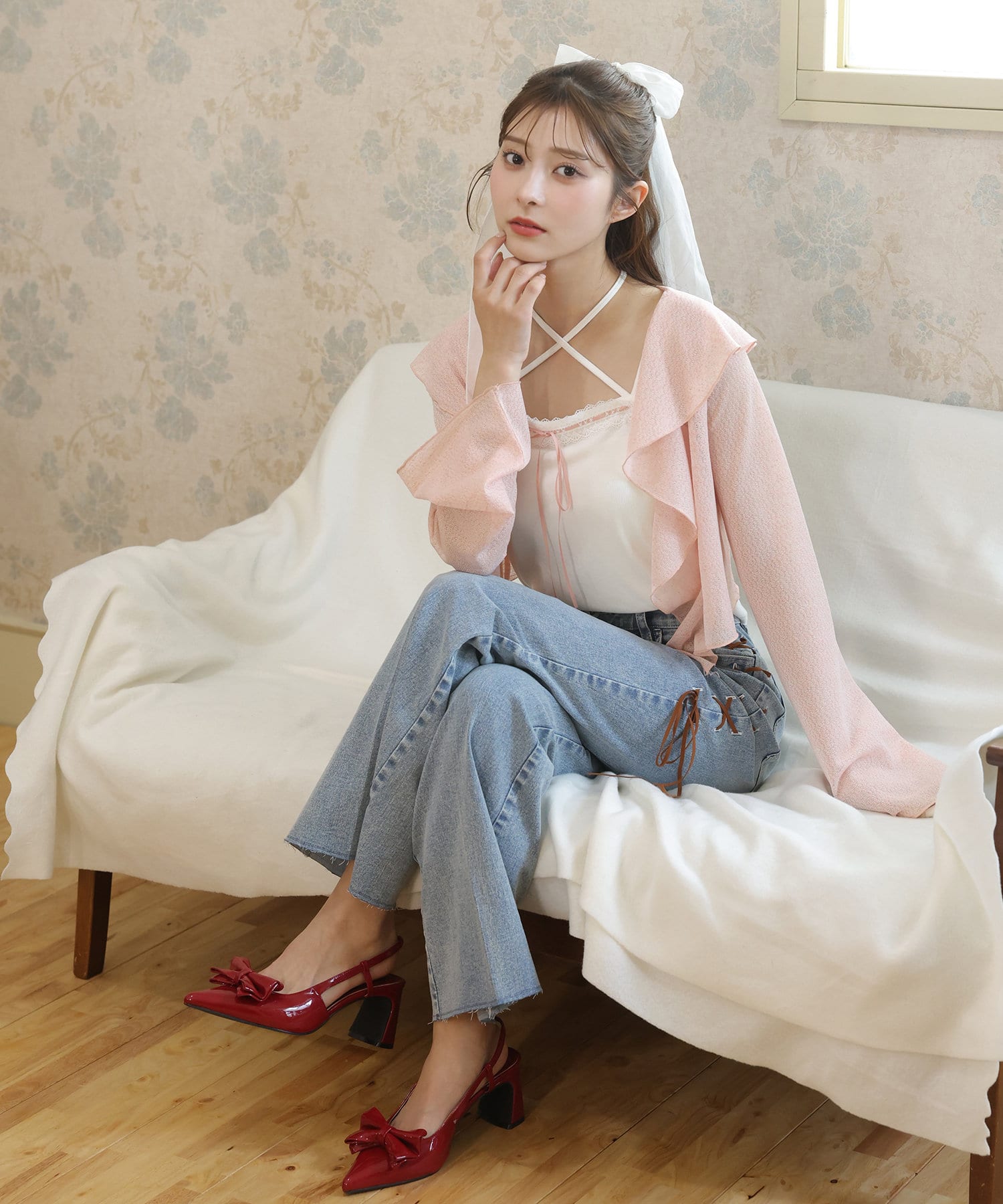 甘さの中にカジュアルなデニムを入れることによってフレンチカジュアルなコーデになります。