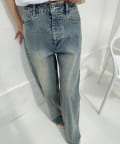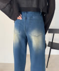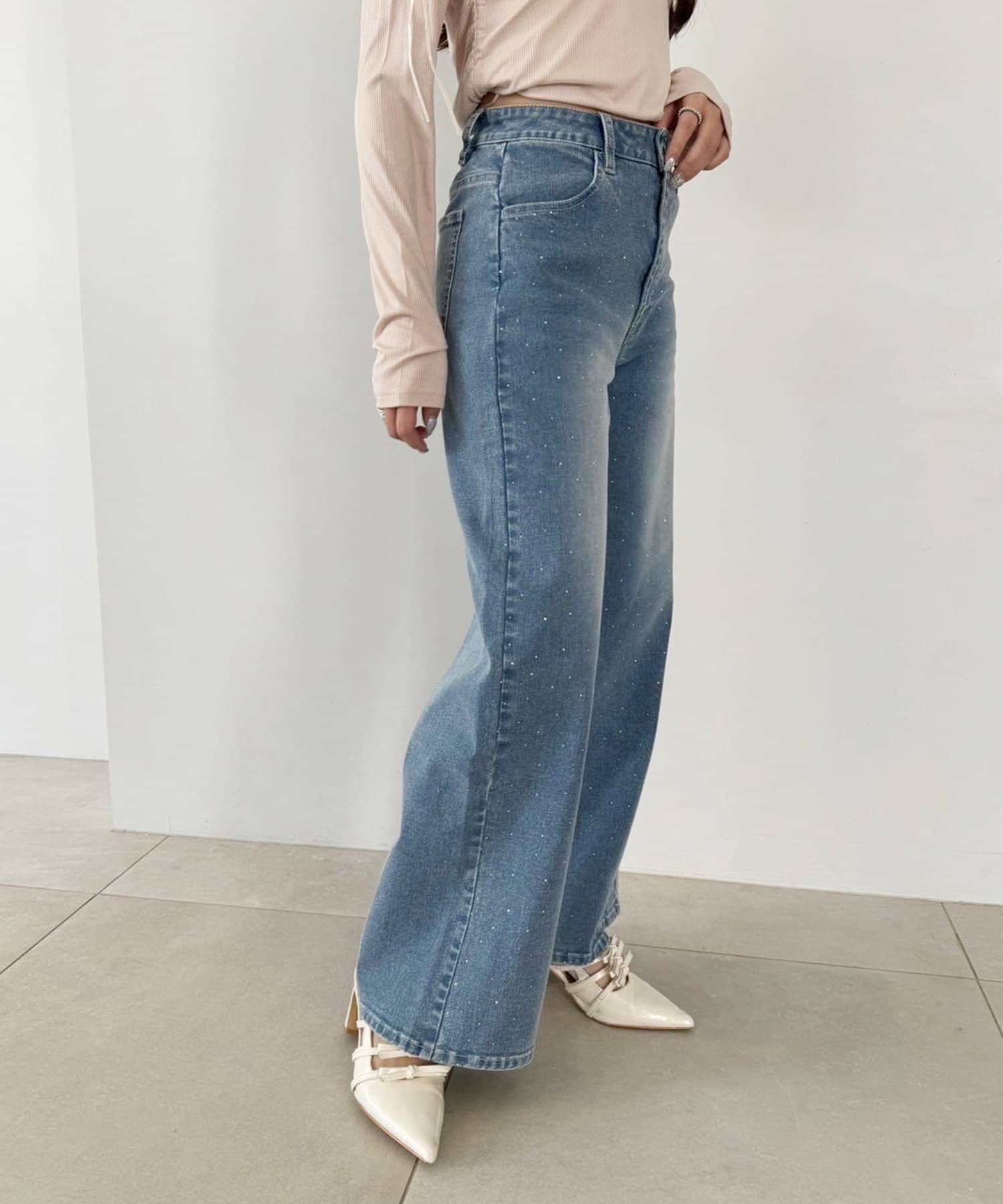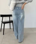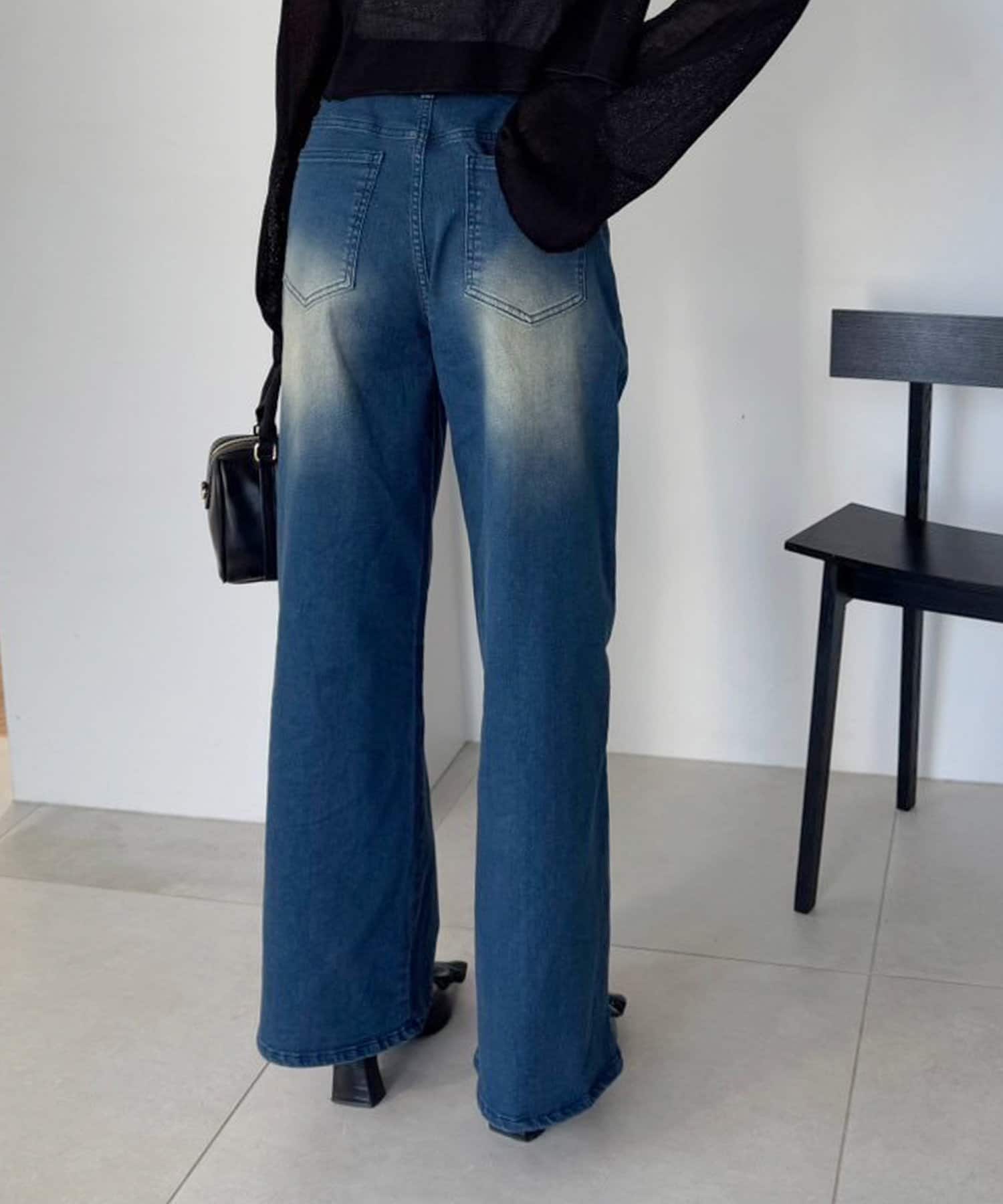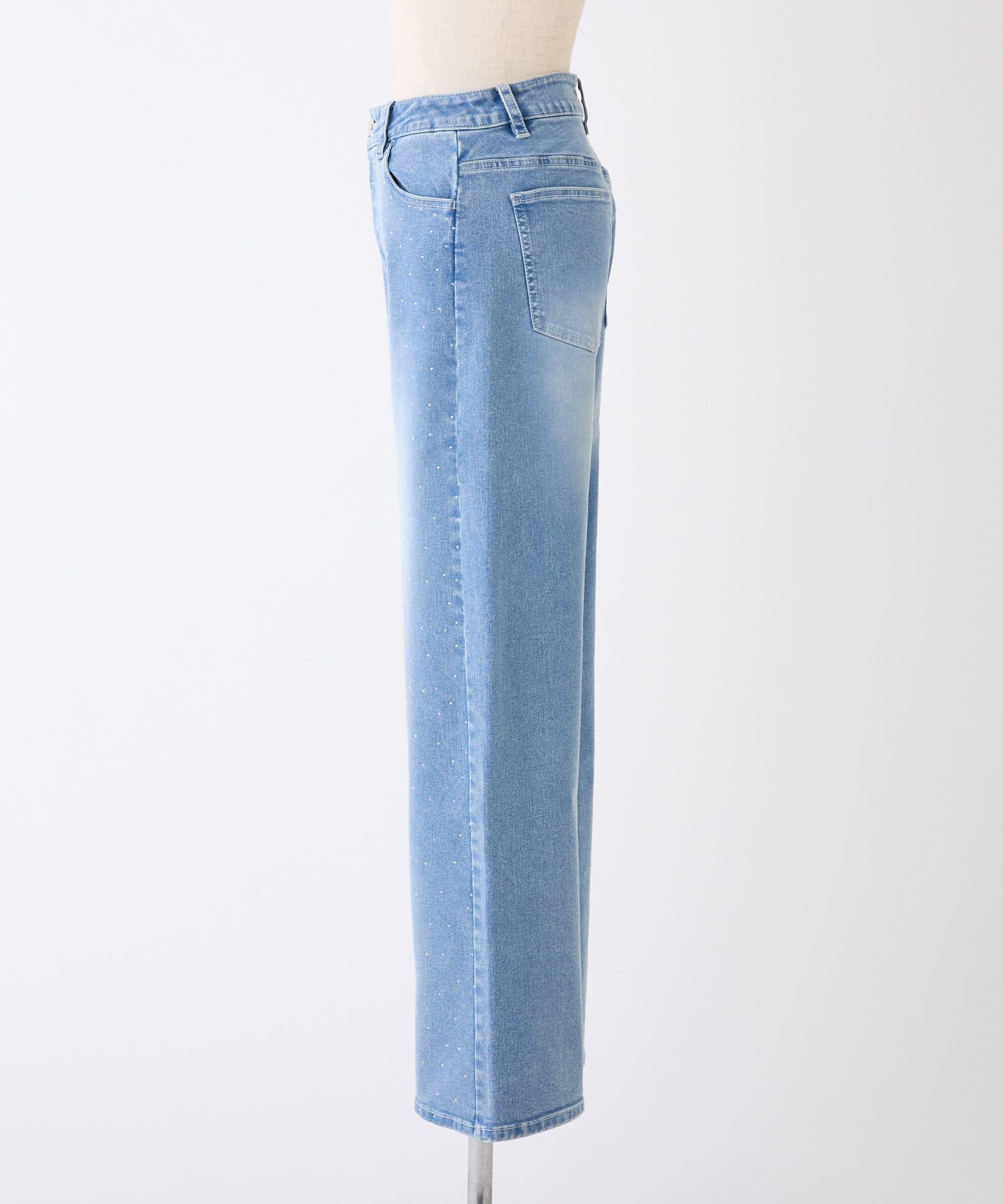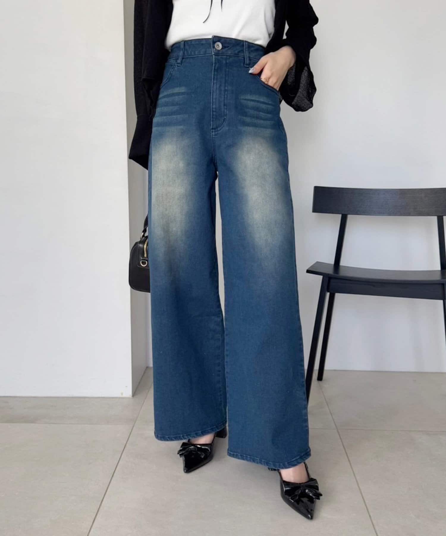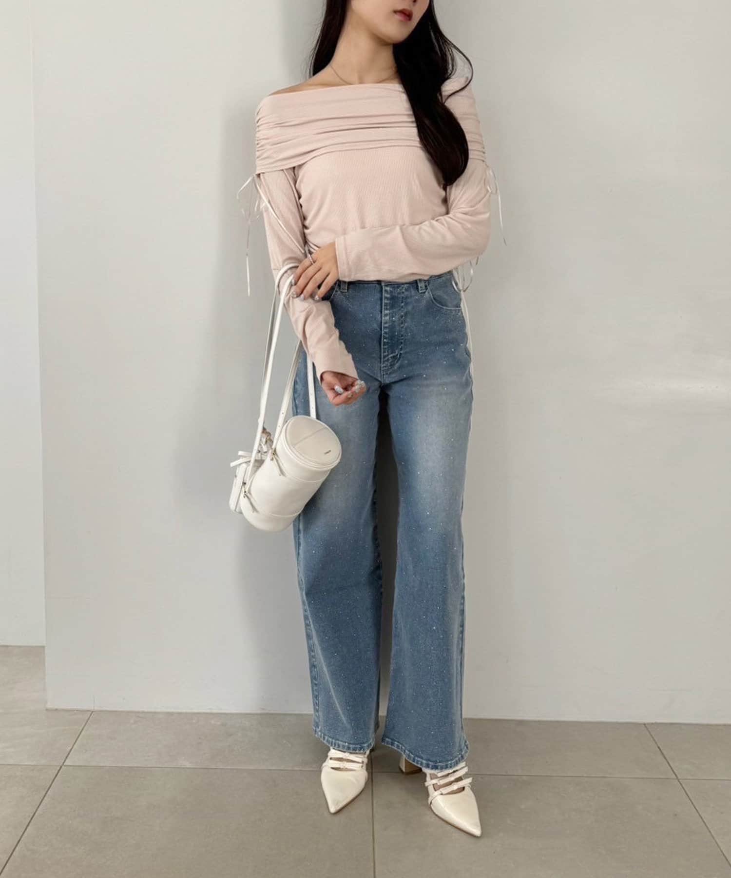 全体的にゆったりとしたシルエットのストレートデニムは、華奢見せ効果も。