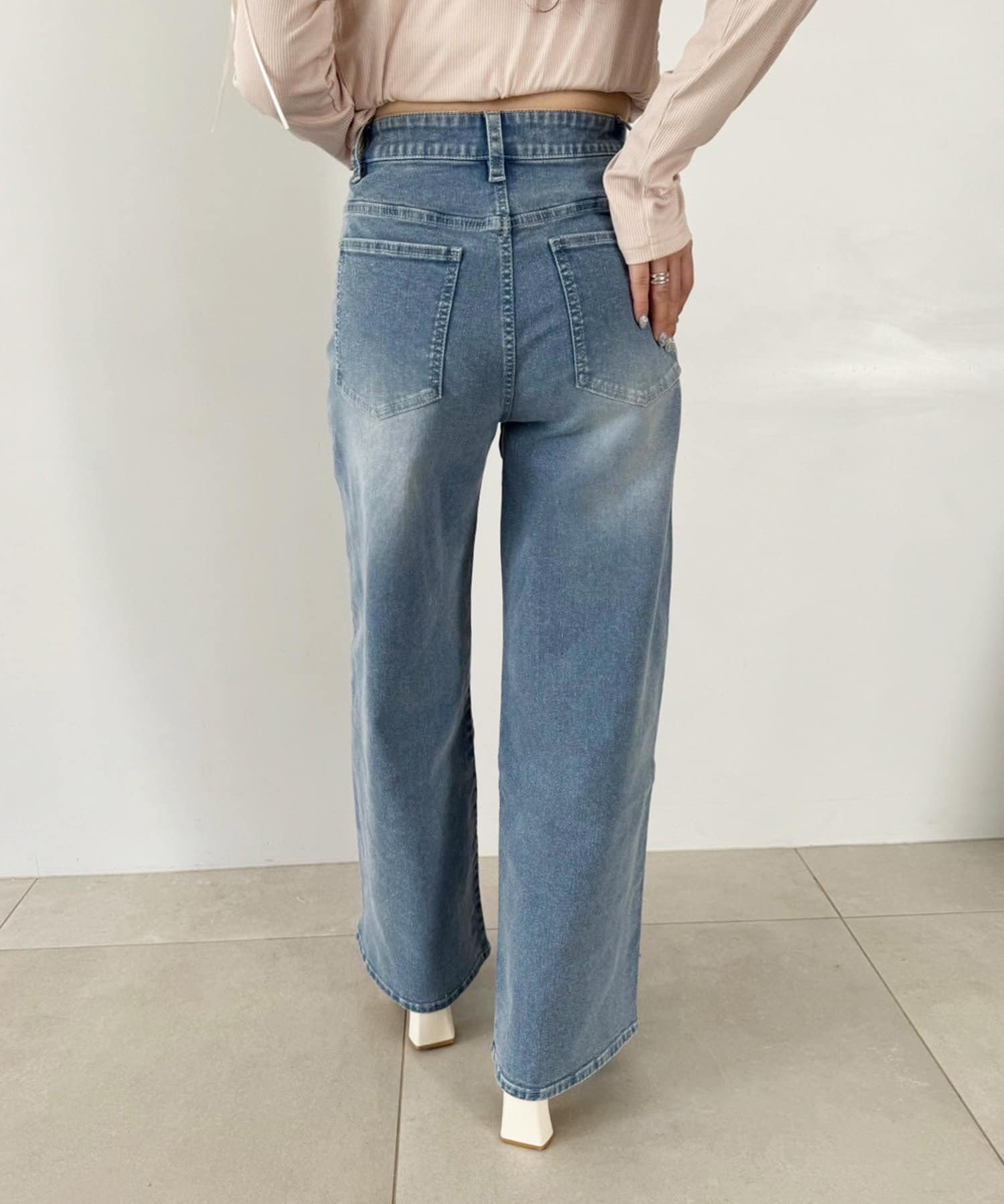 やや腰上のハイウエストでウエストまわりをスッキリと見せ、