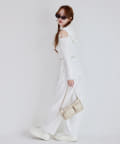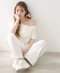 コンパクトなトップスを合わせてメリハリのあるシルエットに◎