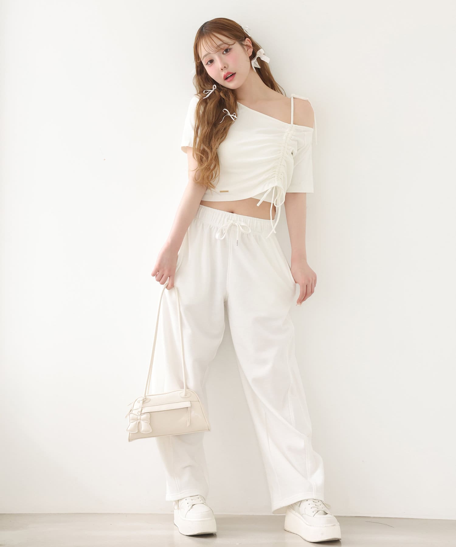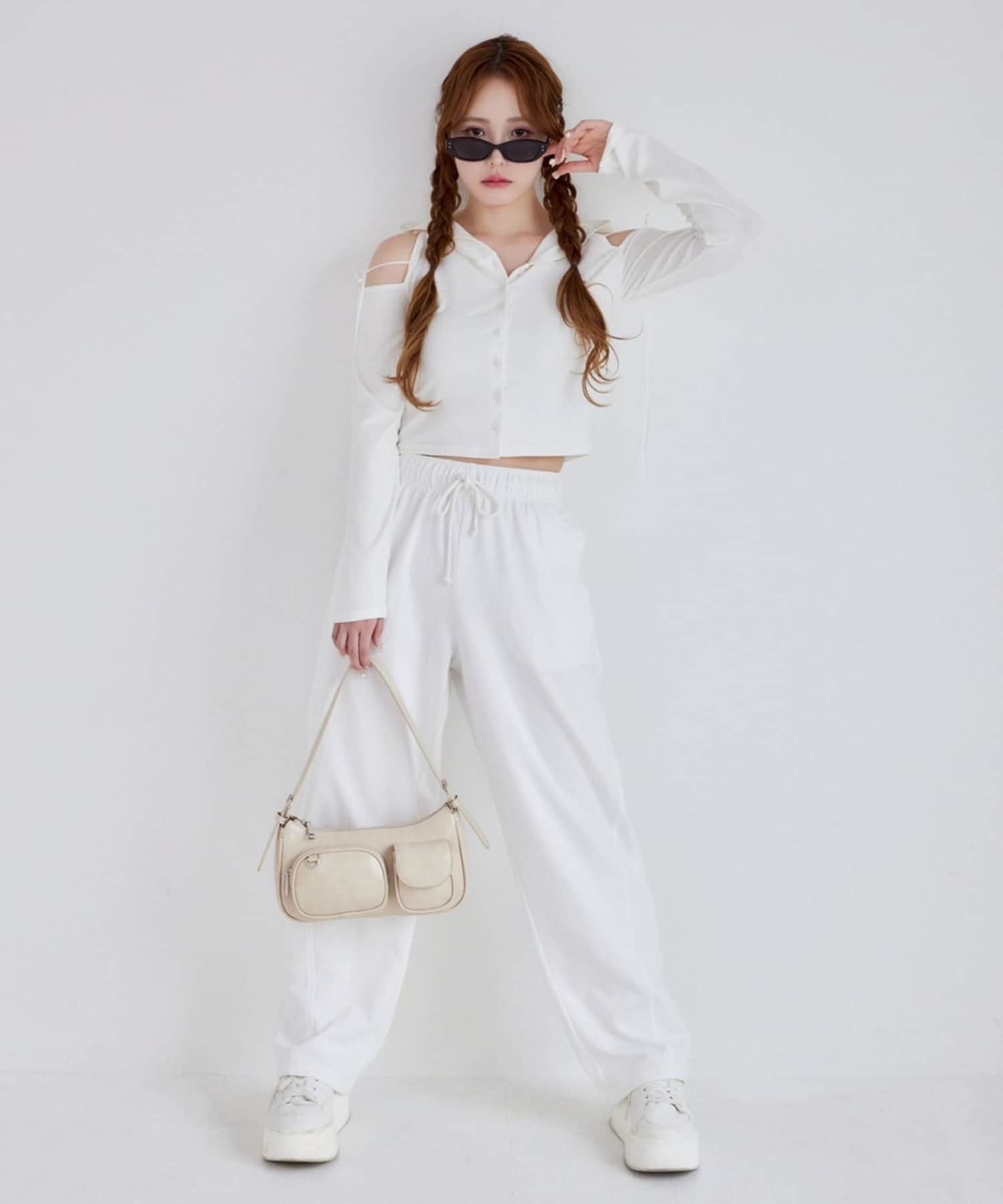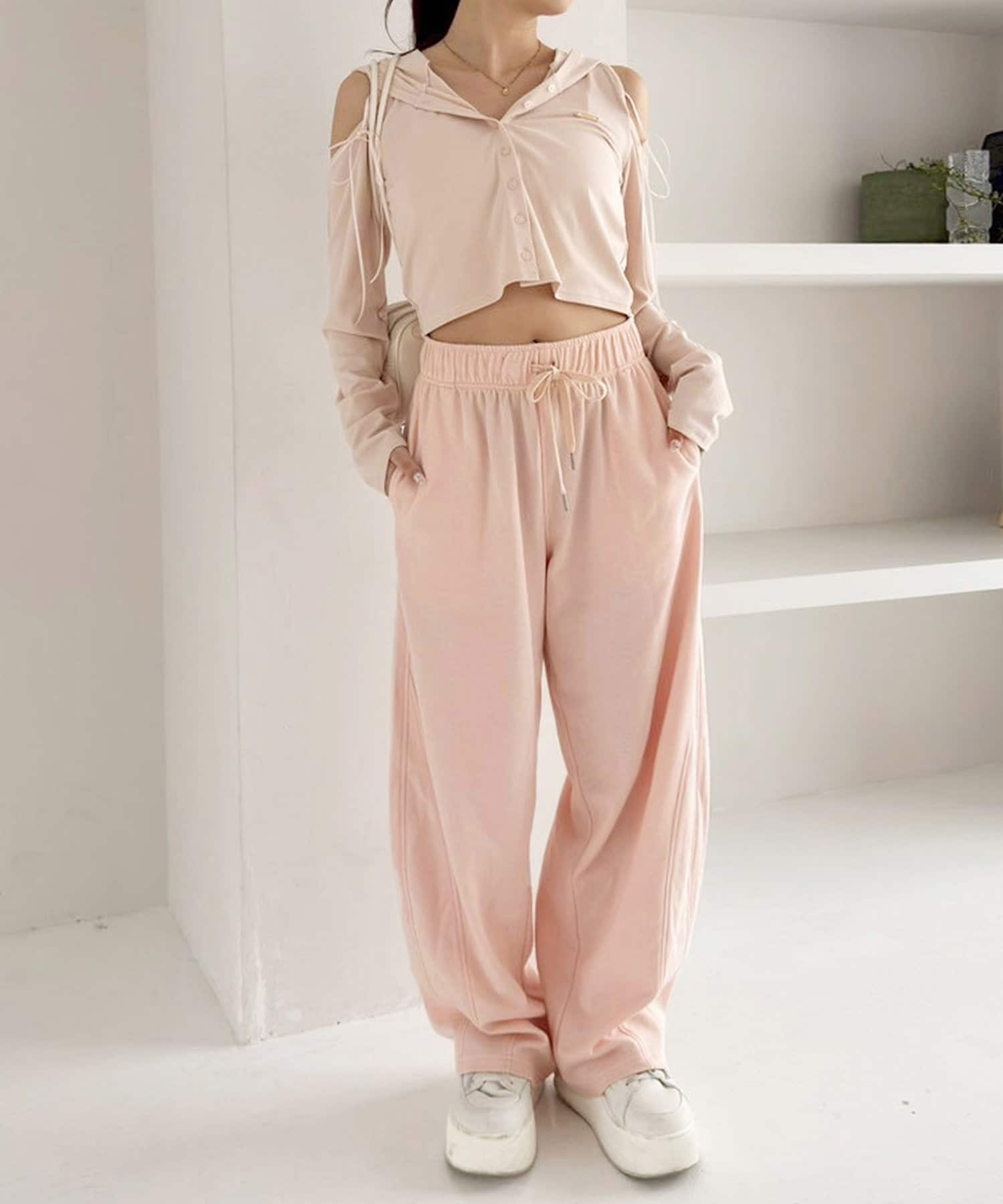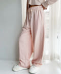 スウェット素材なので、ラクな穿き心地ながらもこなれた印象に仕上がります。