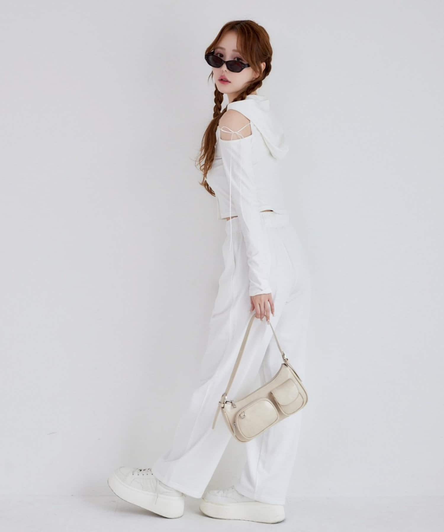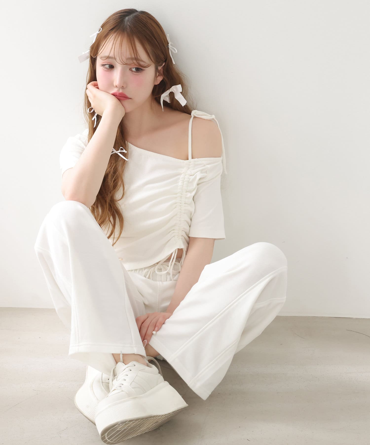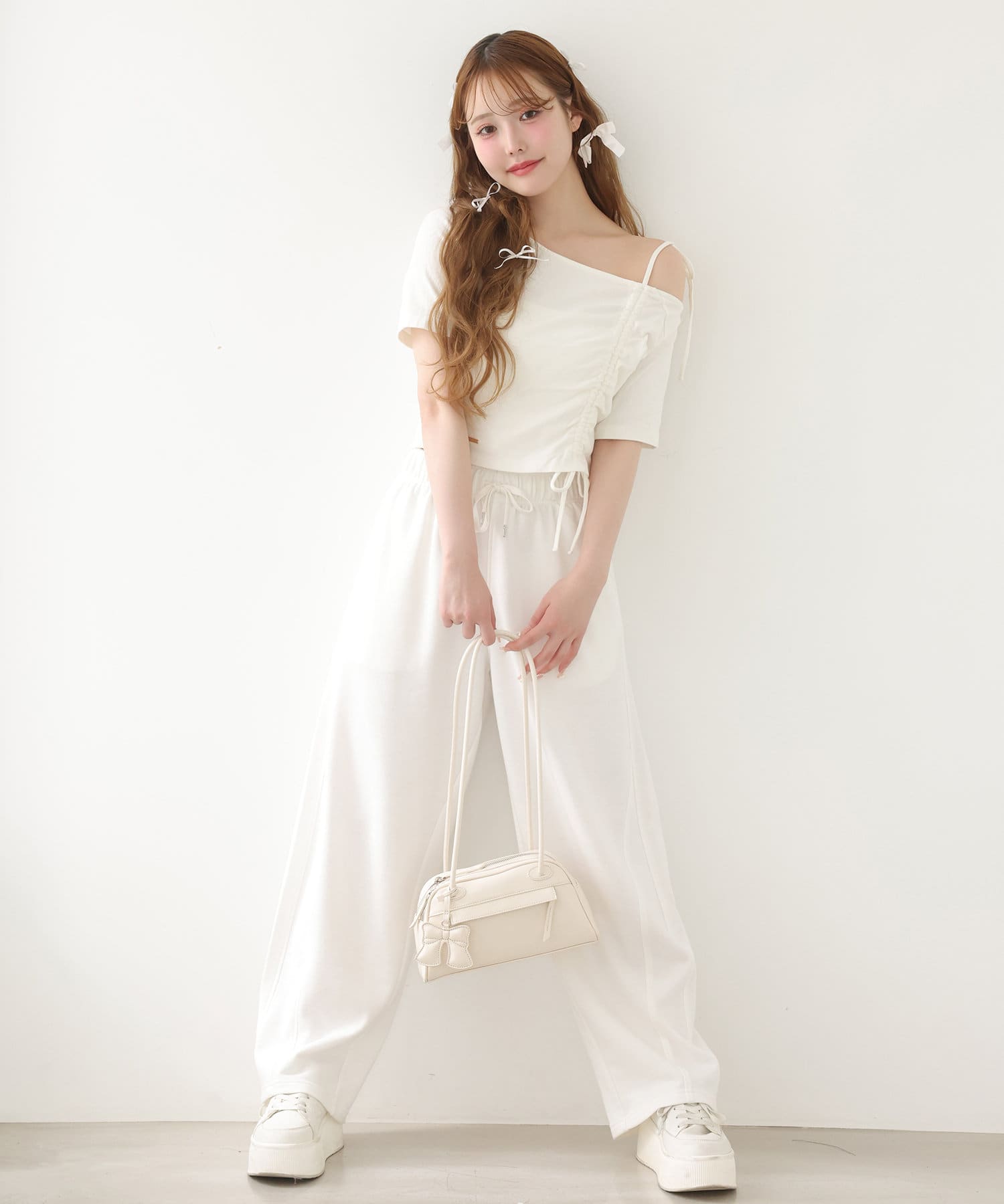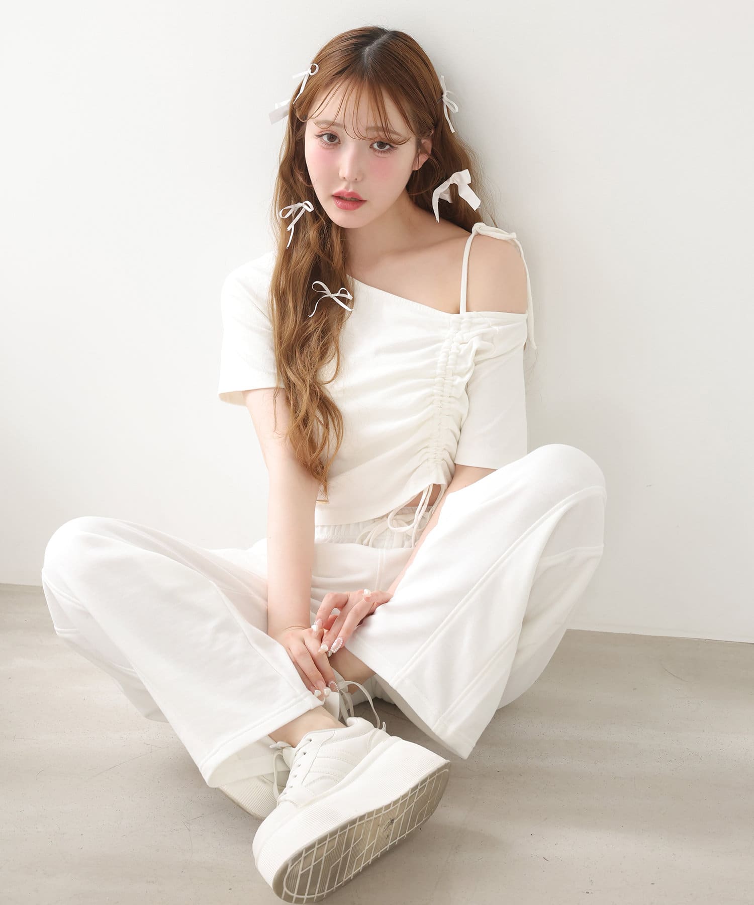 スウェット素材なので、ラクな穿き心地ながらもこなれた印象に仕上がります。