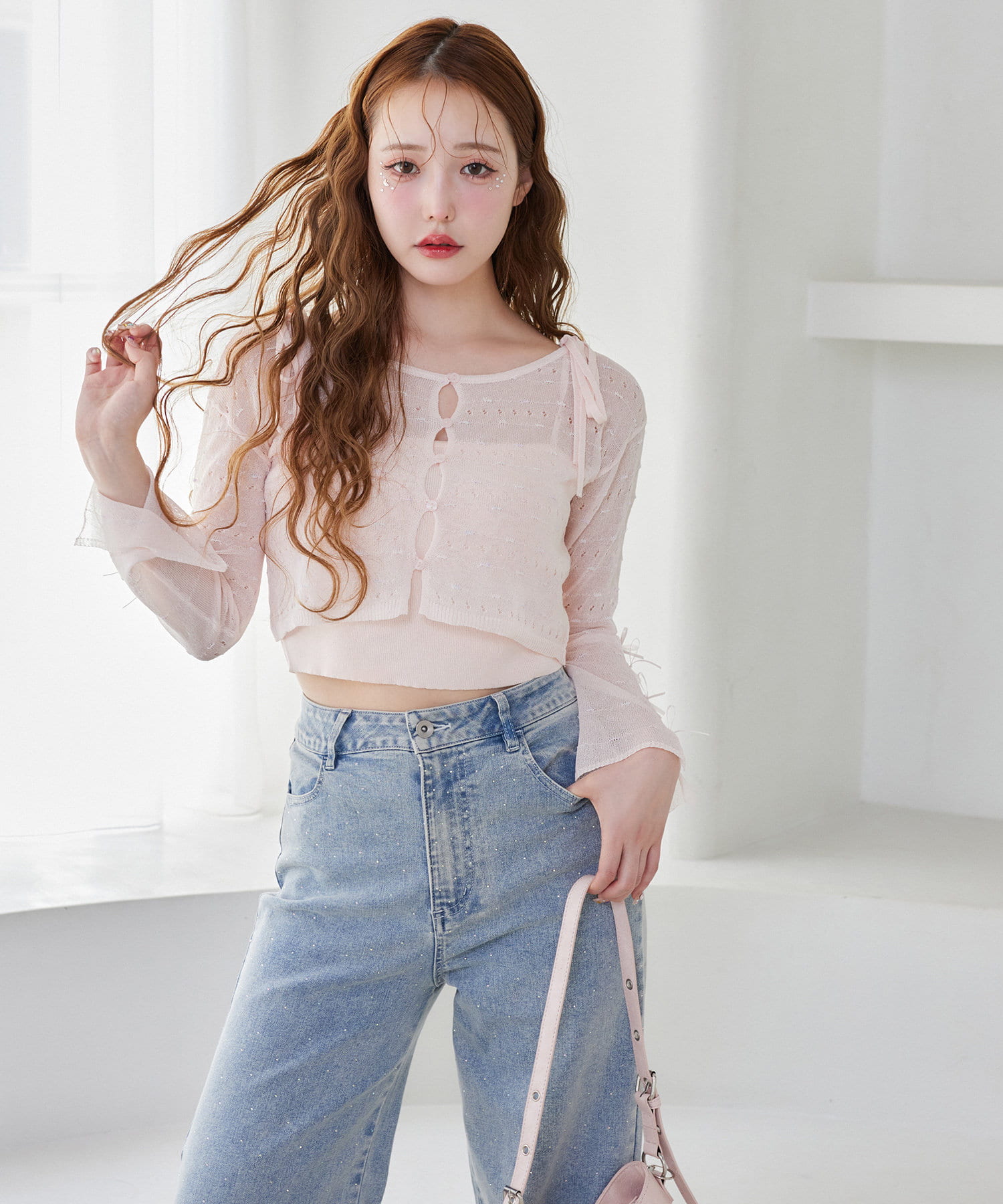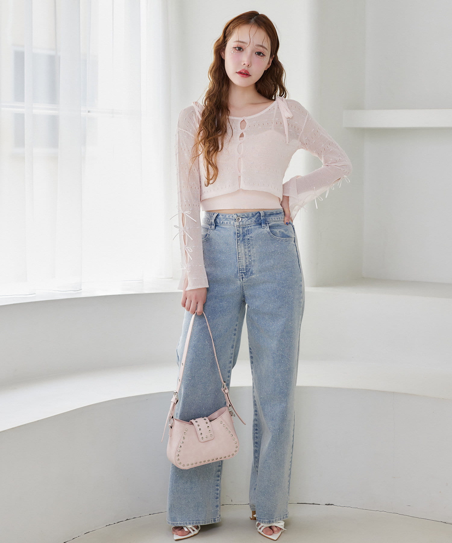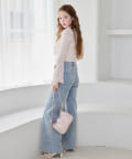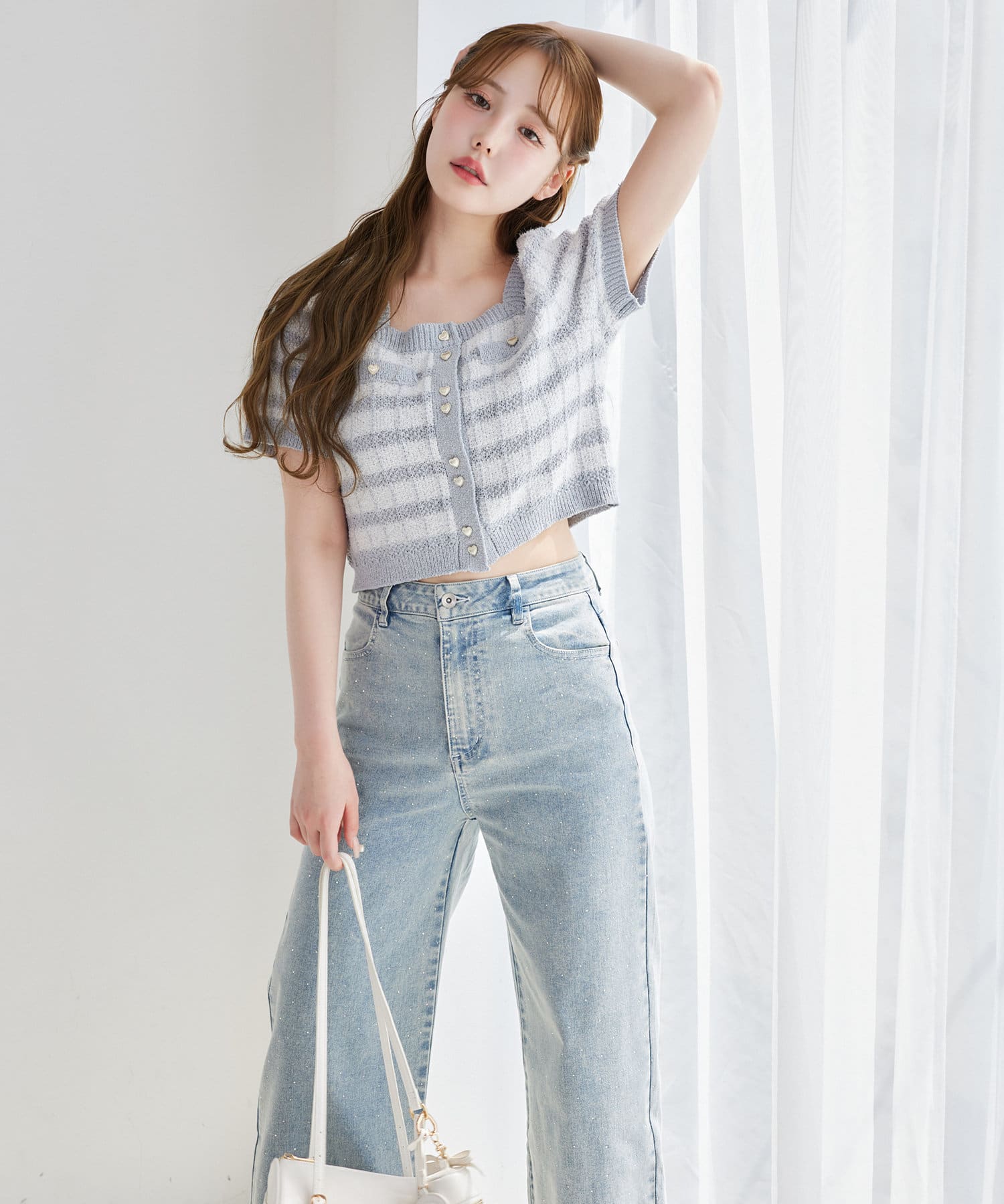 全体的にゆったりとしたシルエットのストレートデニムは、華奢見せ効果も。