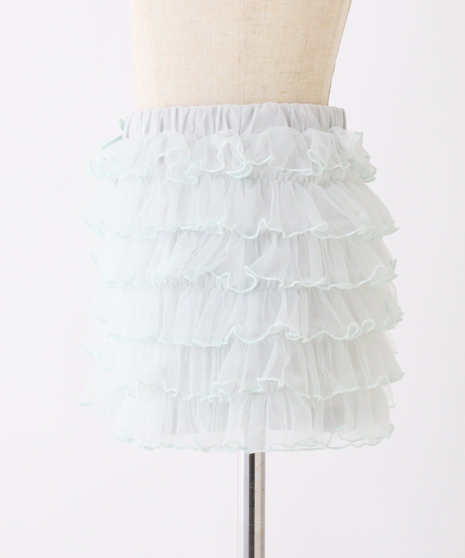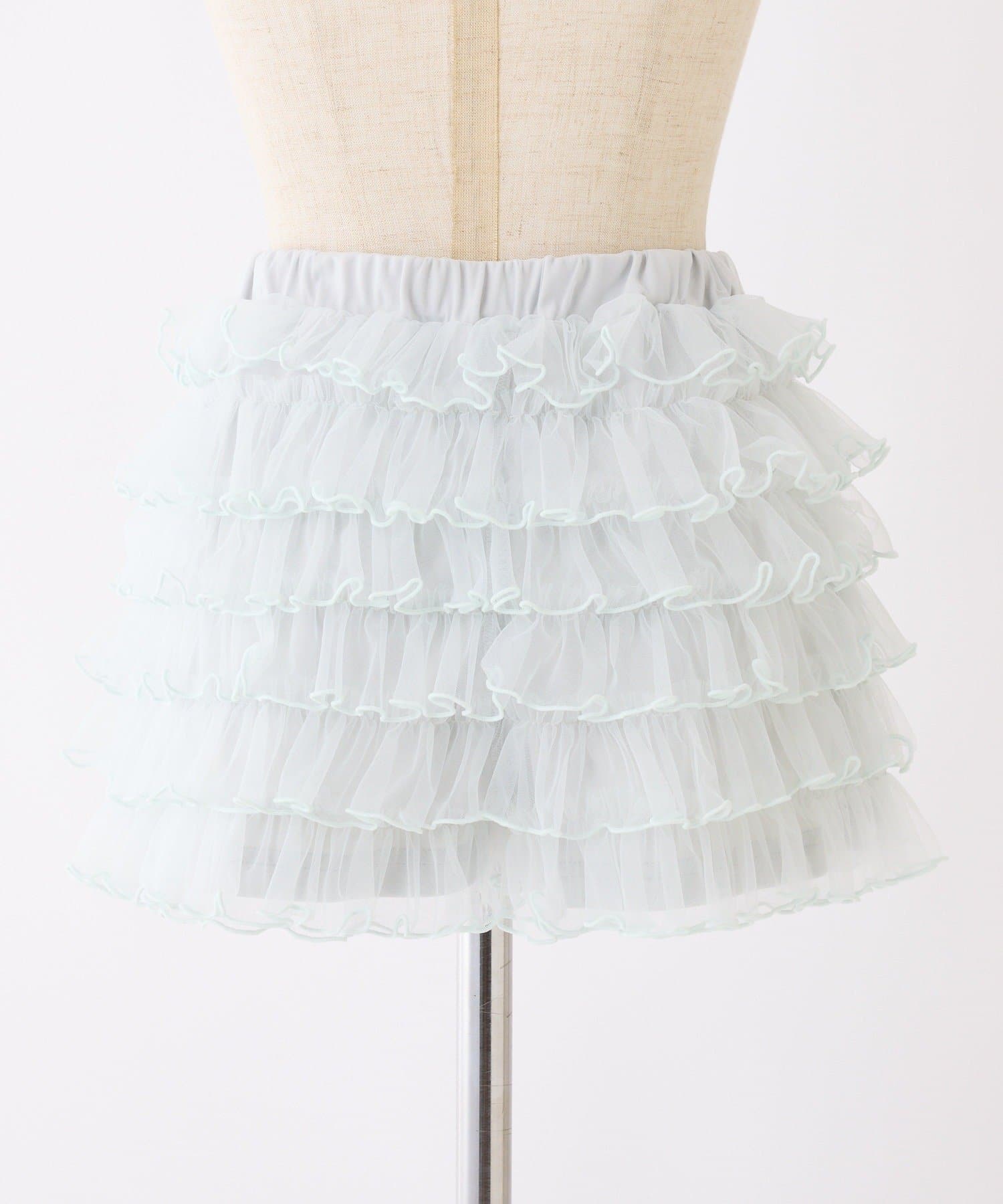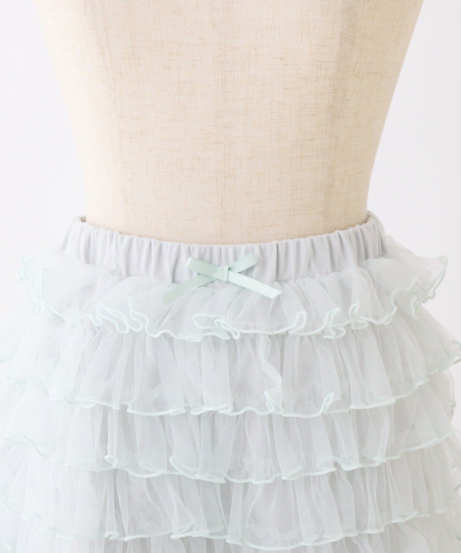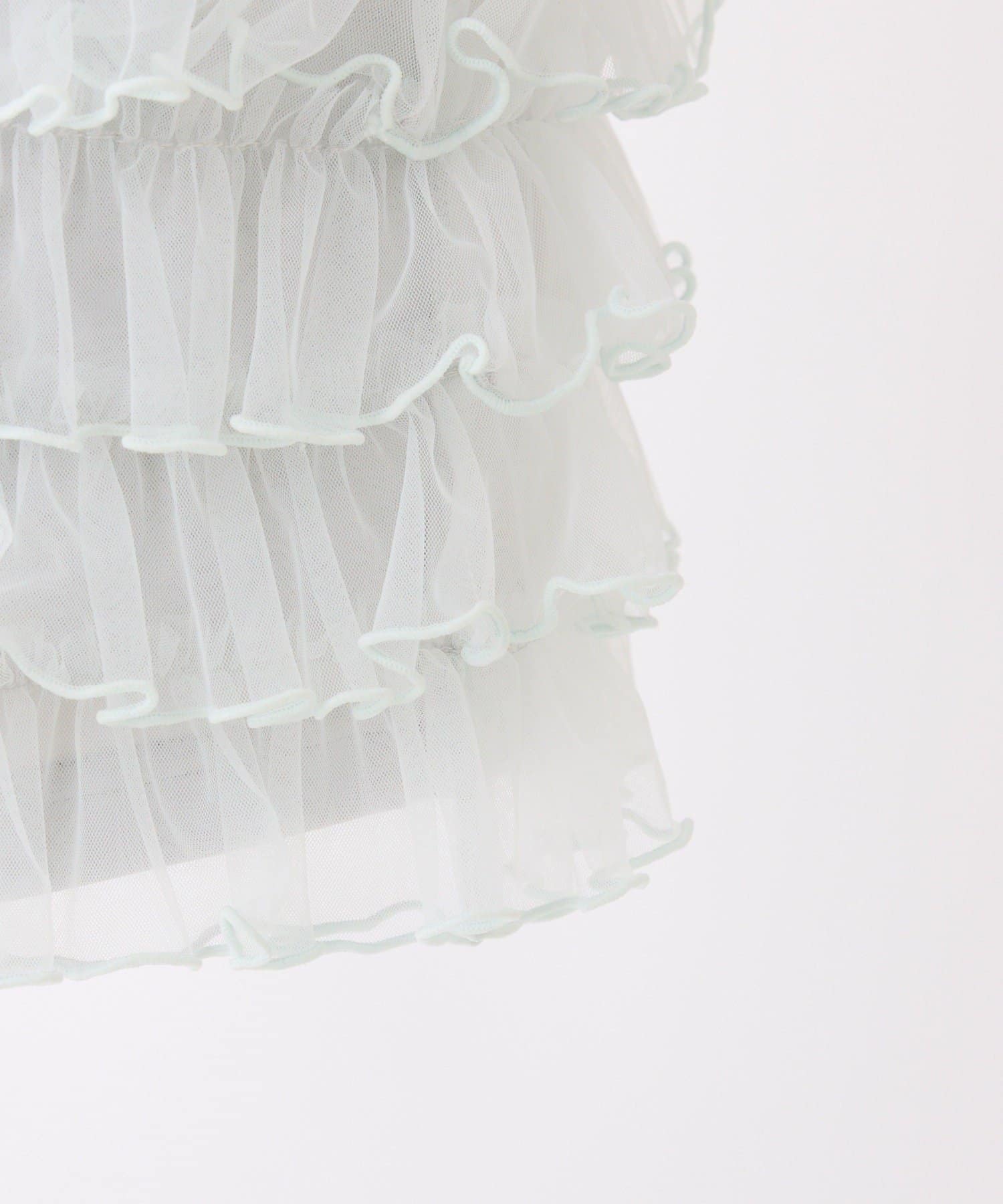 段々に重なるチュール素材が甘すぎない透け感で春夏コーデを格上げ。
