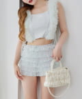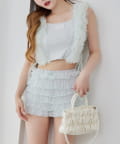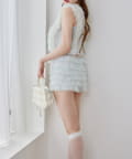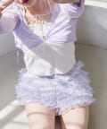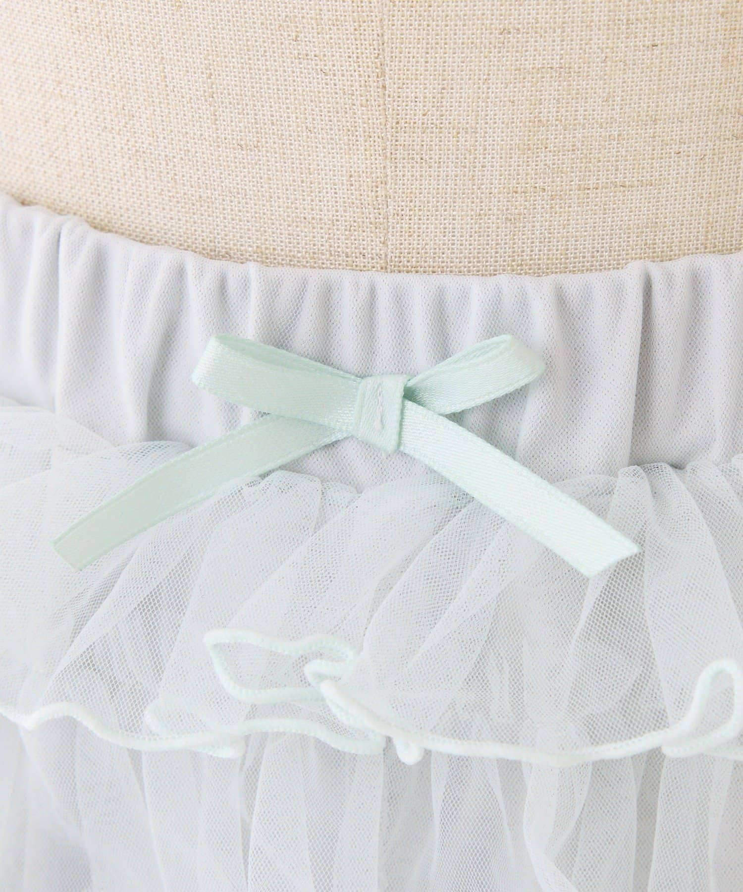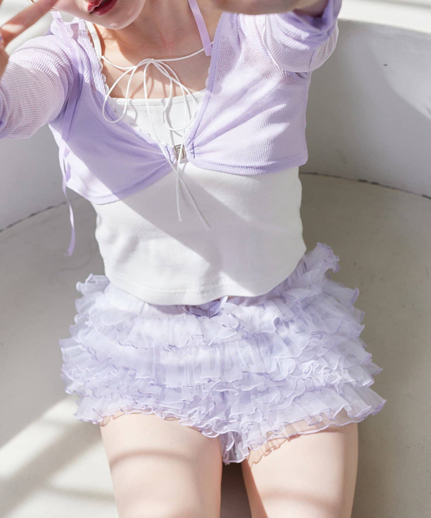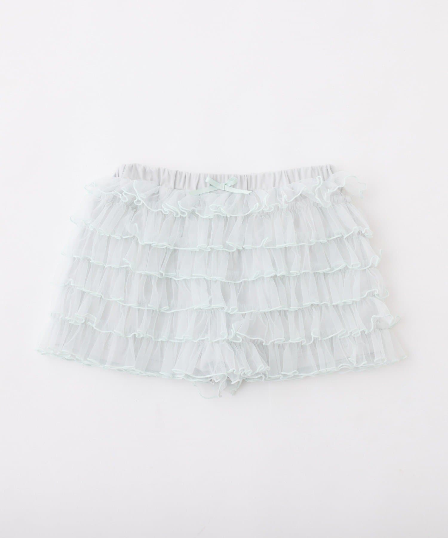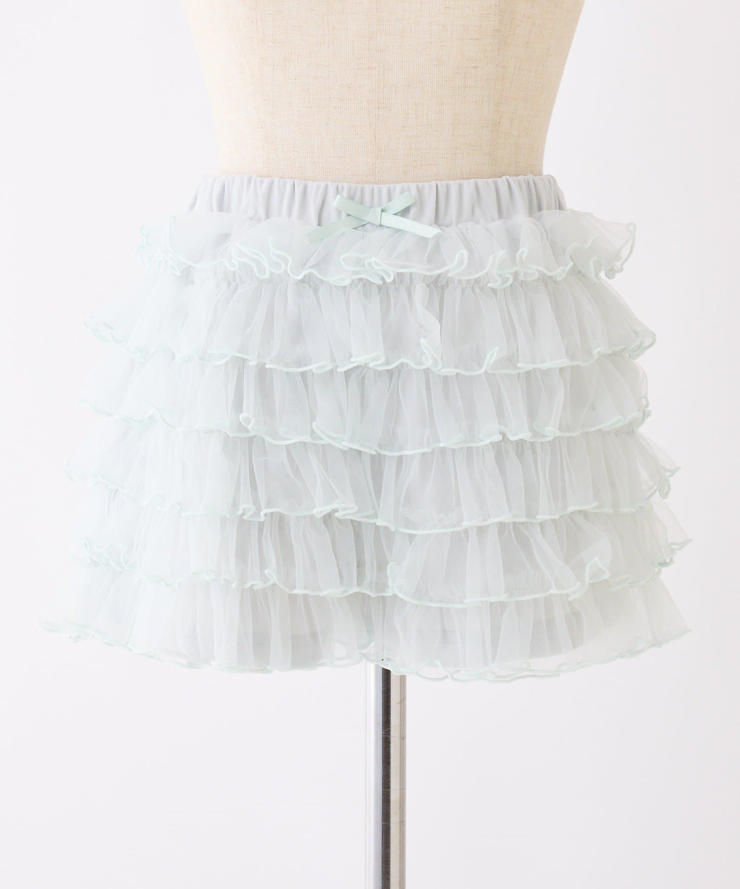 段々に重なるチュール素材が甘すぎない透け感で春夏コーデを格上げ。