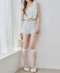 ショート丈のトップスとのバランスも絶妙で、旬のスタイリングが完成します。