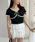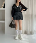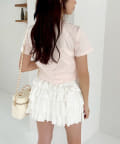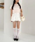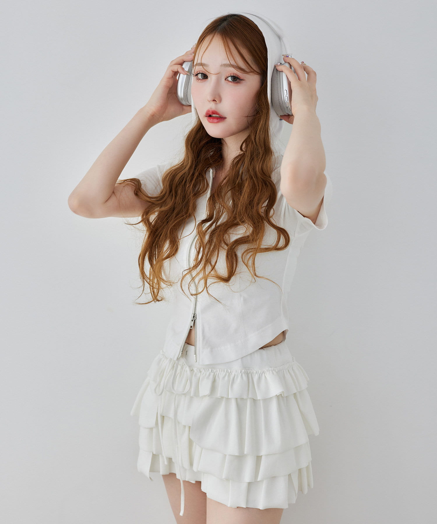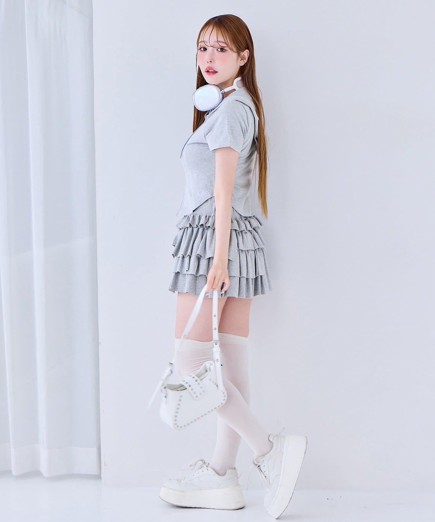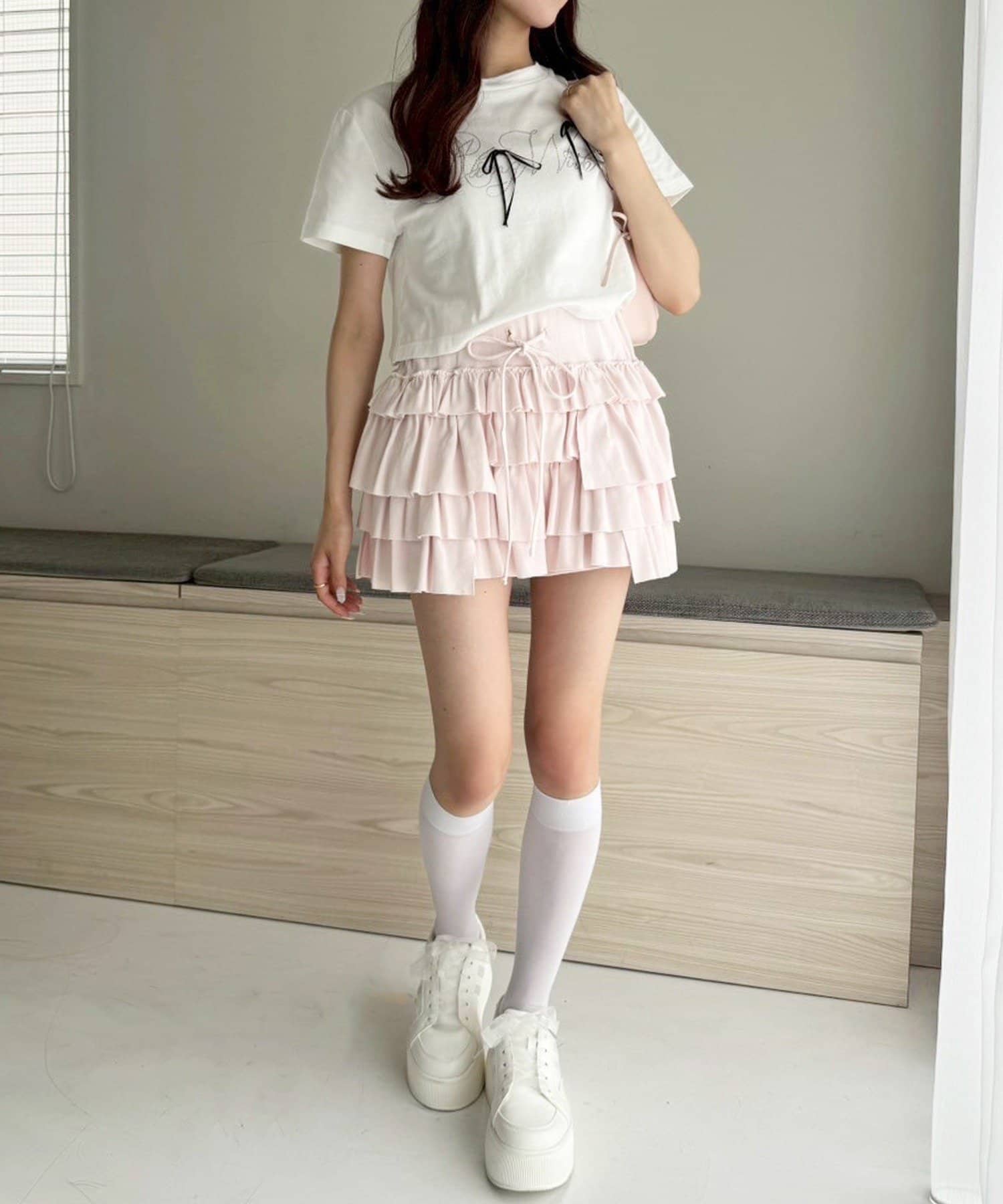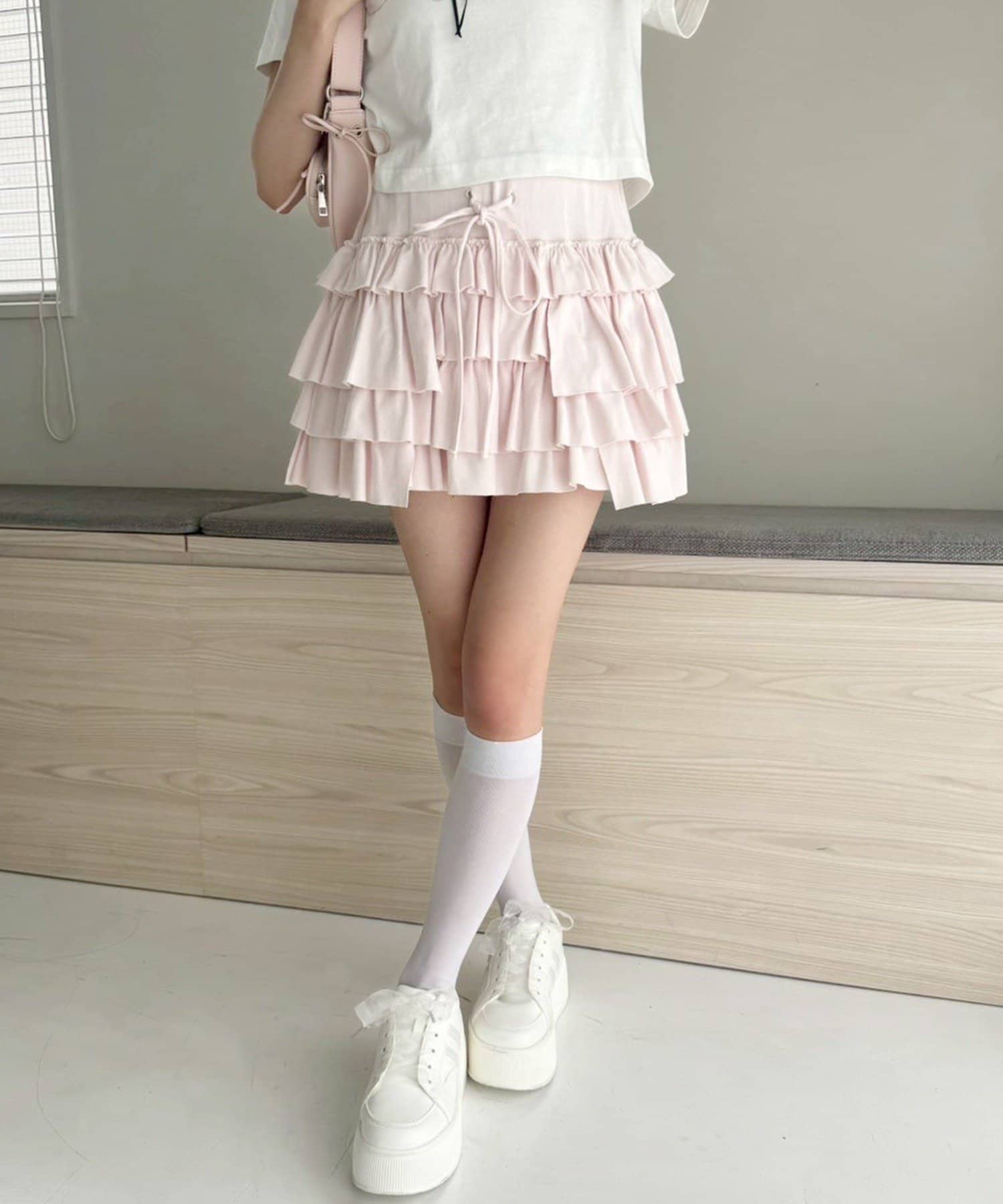 コンパクトなカーデやキャミと合わせて、バレエコア風の着こなしに。