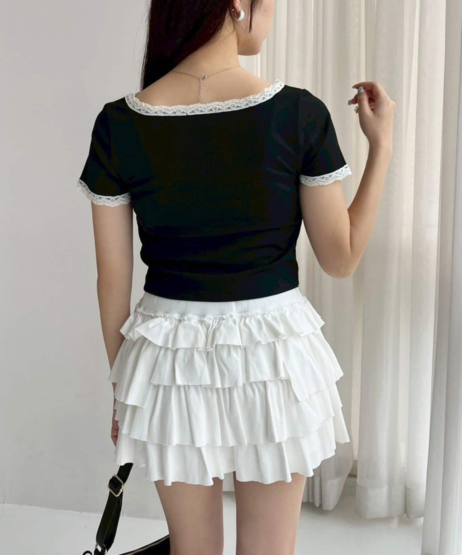 ゆるトップスからフリルをチラ見せするレイヤードスタイルもおすすめです◎