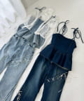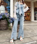カジュアルになりやすいデニムは少し甘めなトップスとの合わせが今年らしい着こなしでおすすめ。