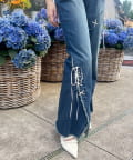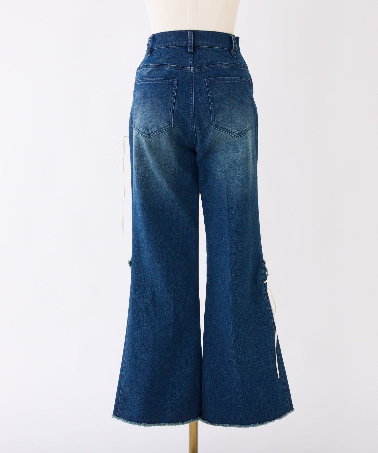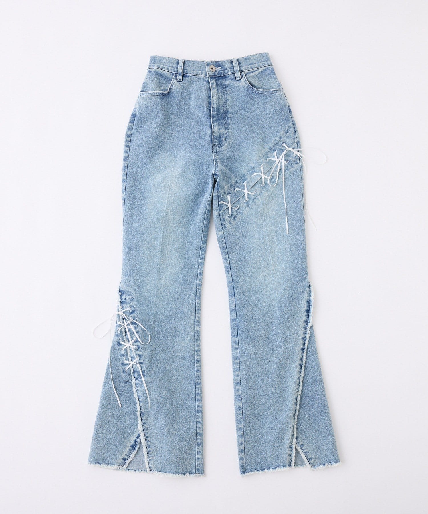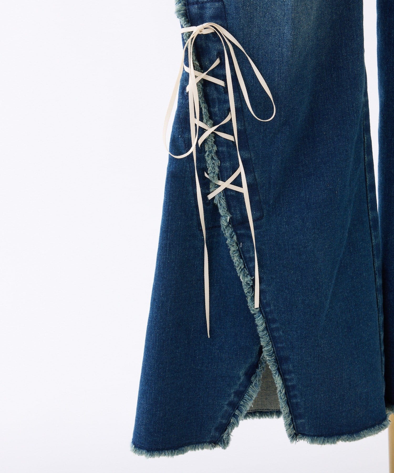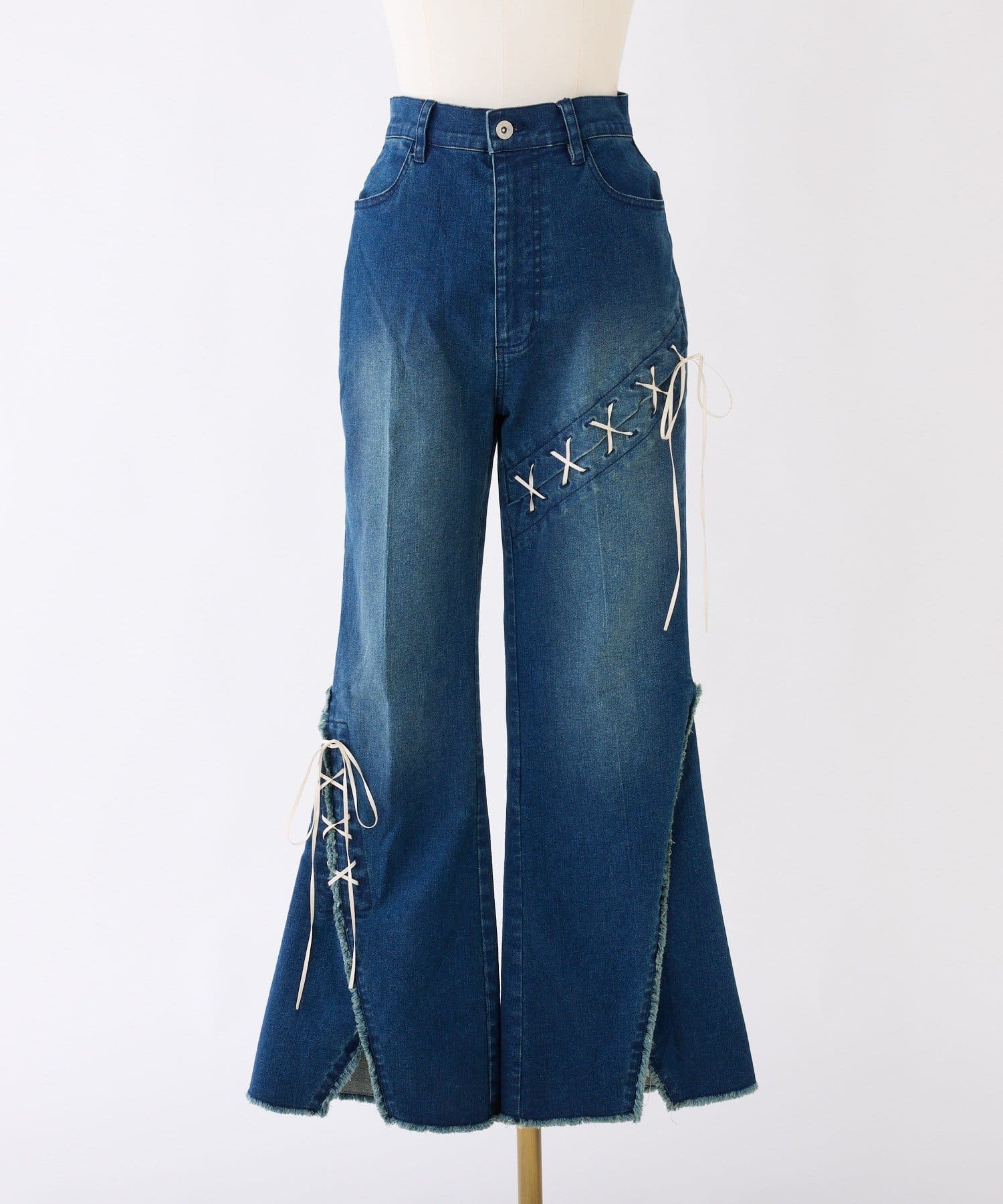 レースアップデザインががおしゃれ見えするデニムパンツ