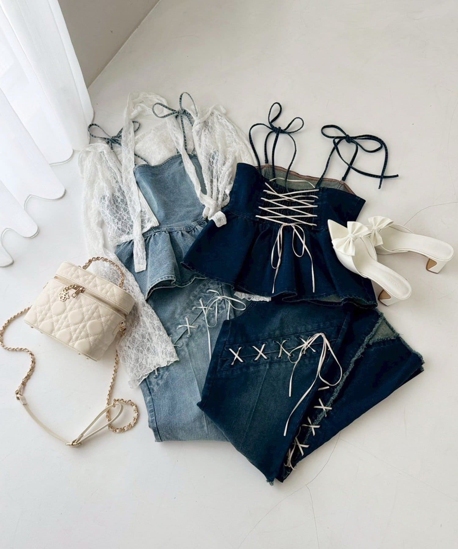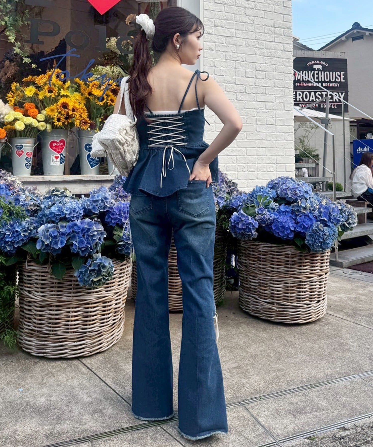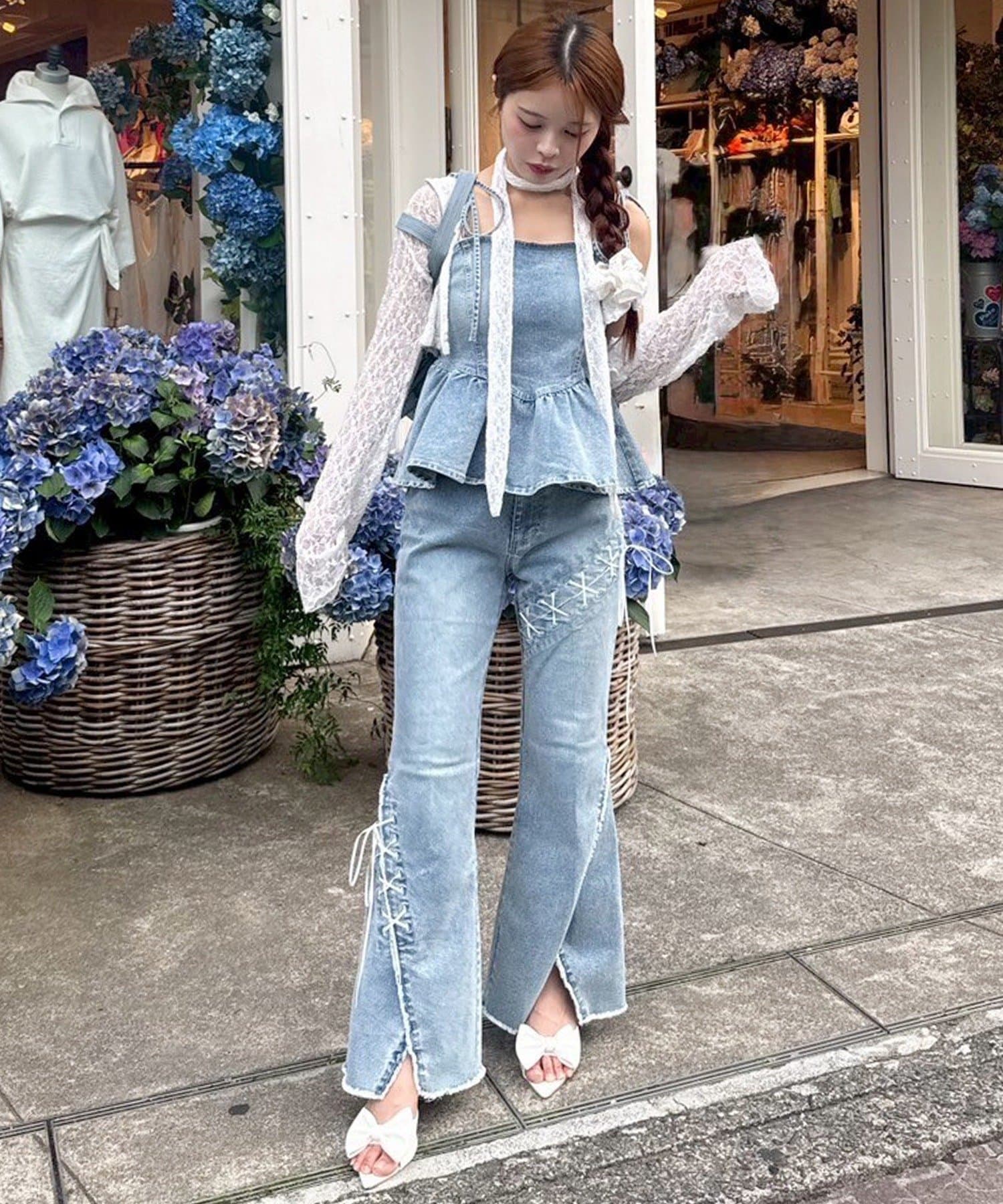 甘さの中にカジュアルなデニムを入れることによってフレンチカジュアルなコーデになります。